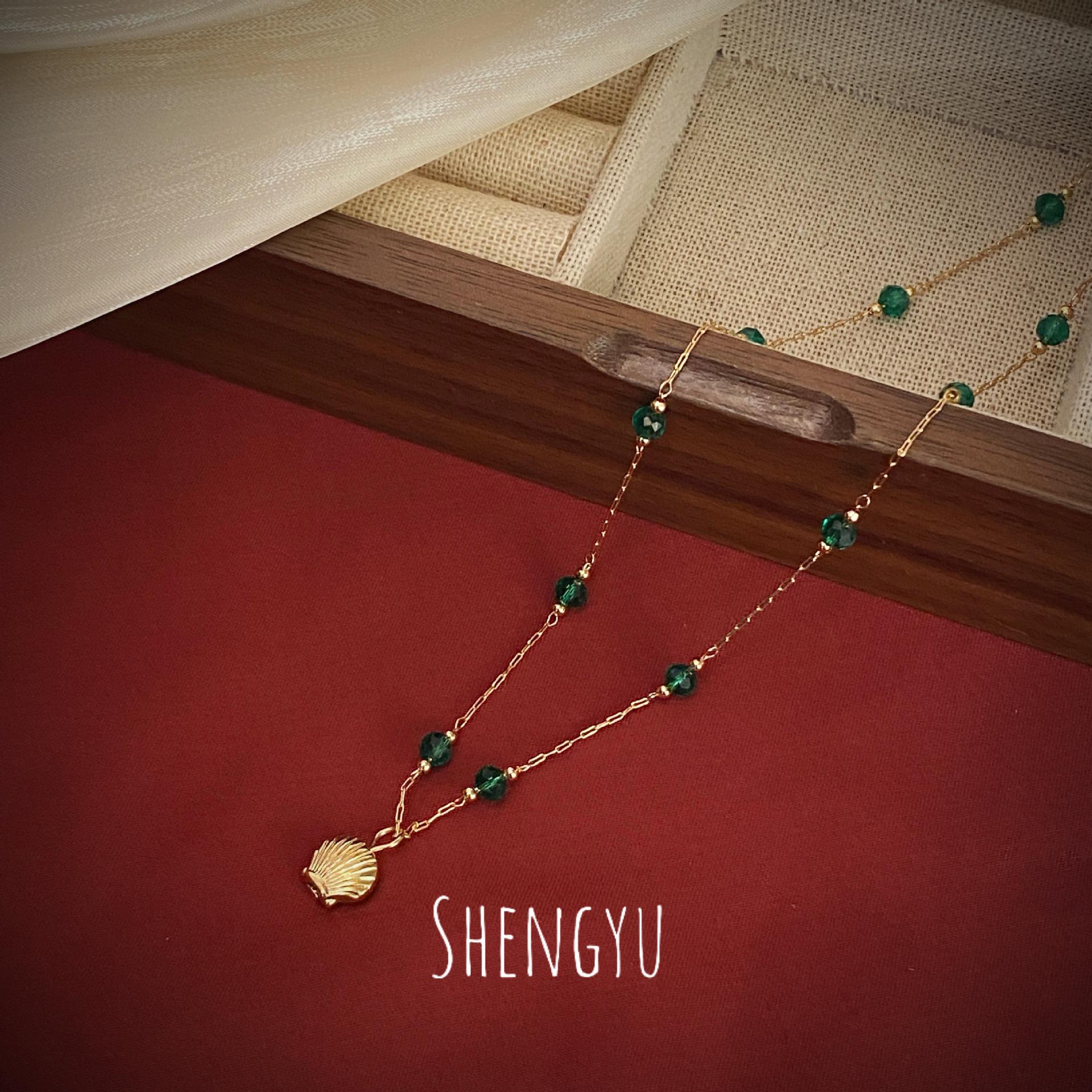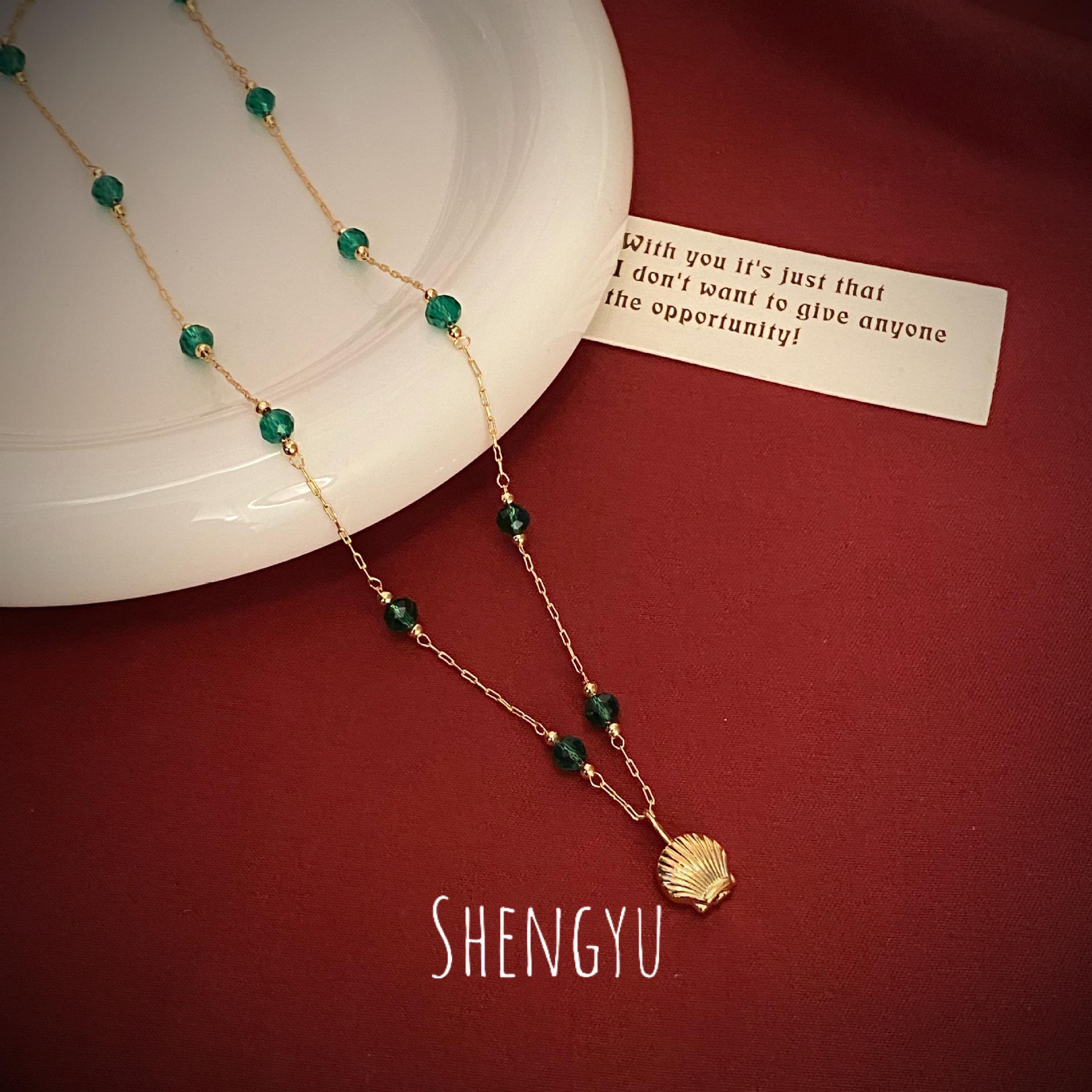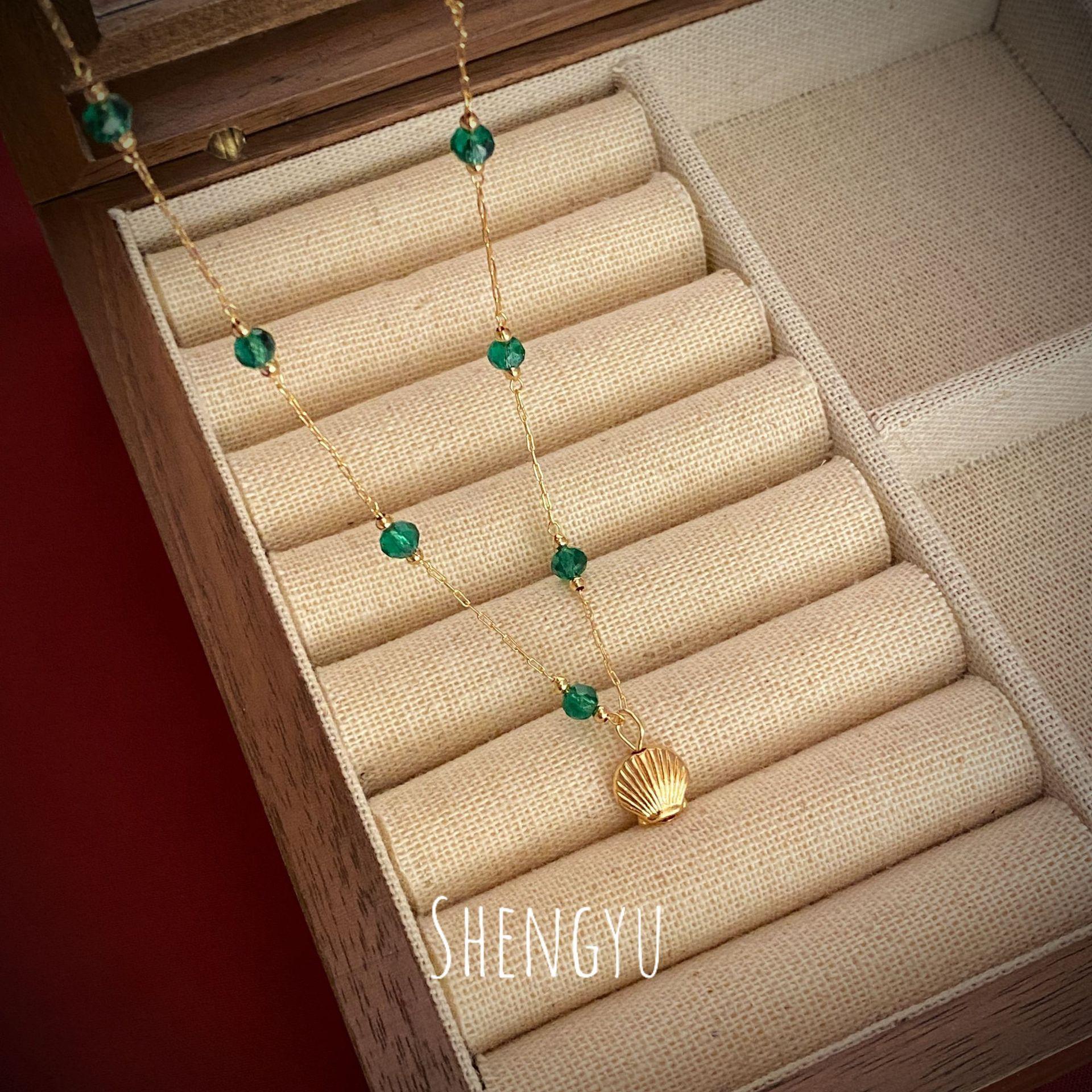 Cadena de clavícula con colgante de concha europea y americana, ligera, de lujo, con temperamento dulce, combinable con todo, cadena de clavícula única, estilo transfronterizo, viento frío.