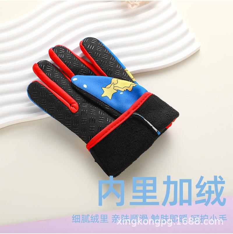 Guantes Cálidos para Niños Invierno Exterior Resistentes al Viento con Forro Polar para Montar Jugar Nieve Engrosados de Dibujos Animados Impermeables Antideslizantes a Prueba de Frío