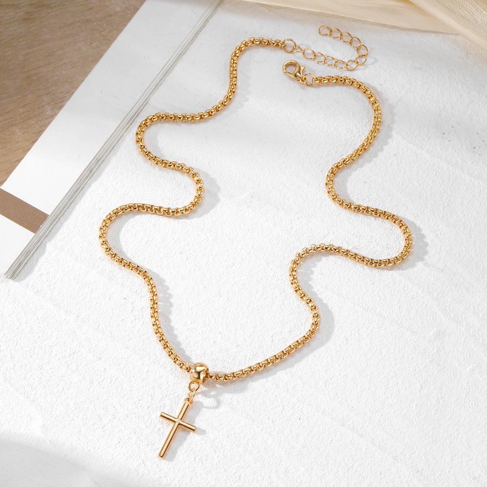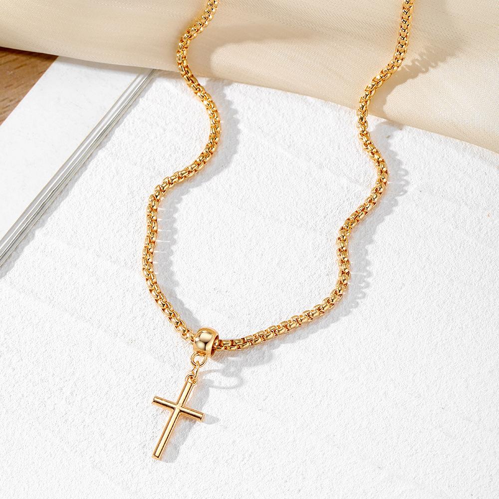 Collar con colgante de cruz europea y americana, cadena de clavícula, estilo retro, ligero, de lujo, elegante, de alta calidad.