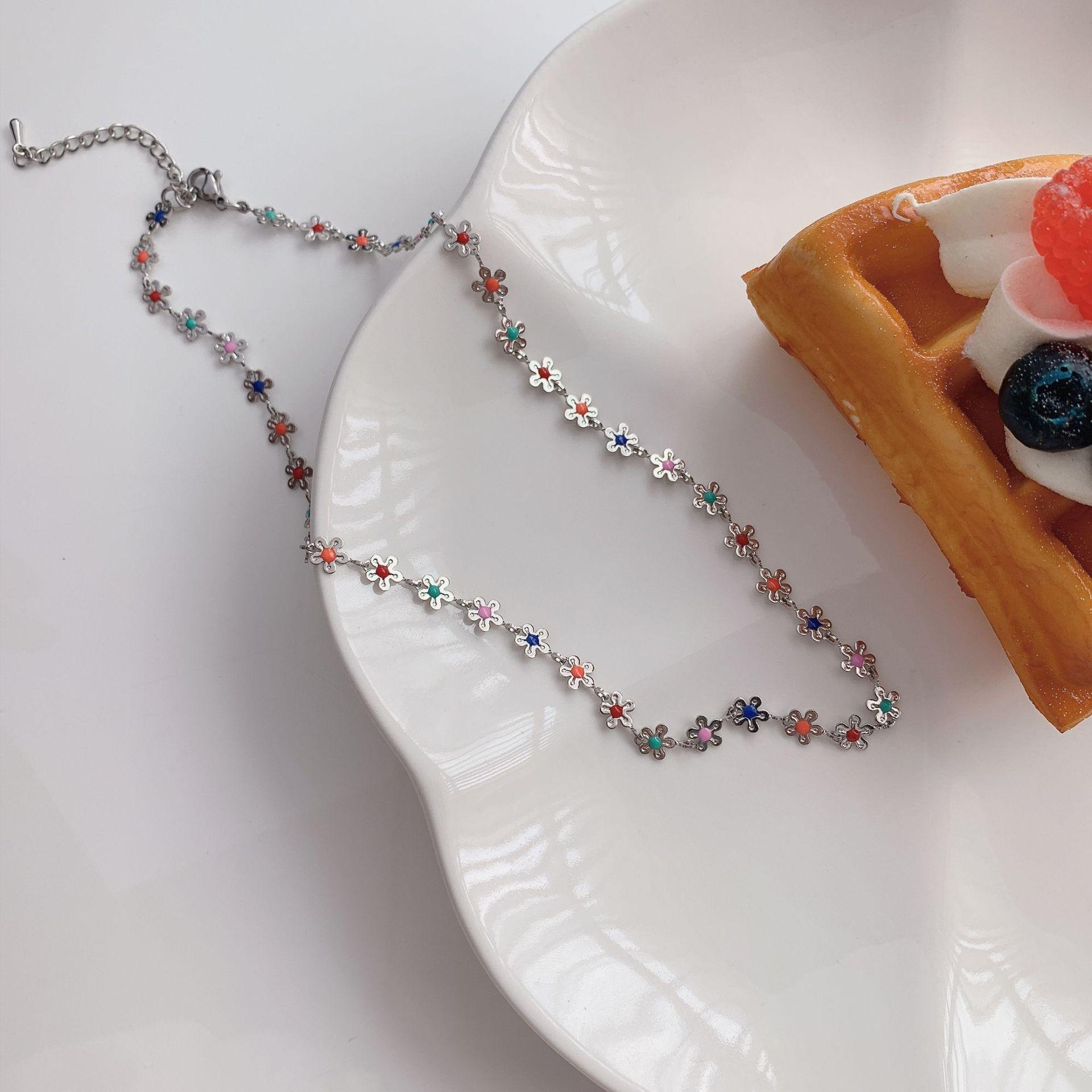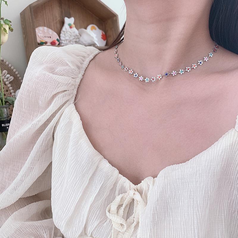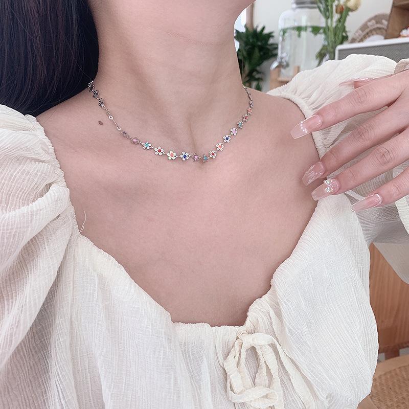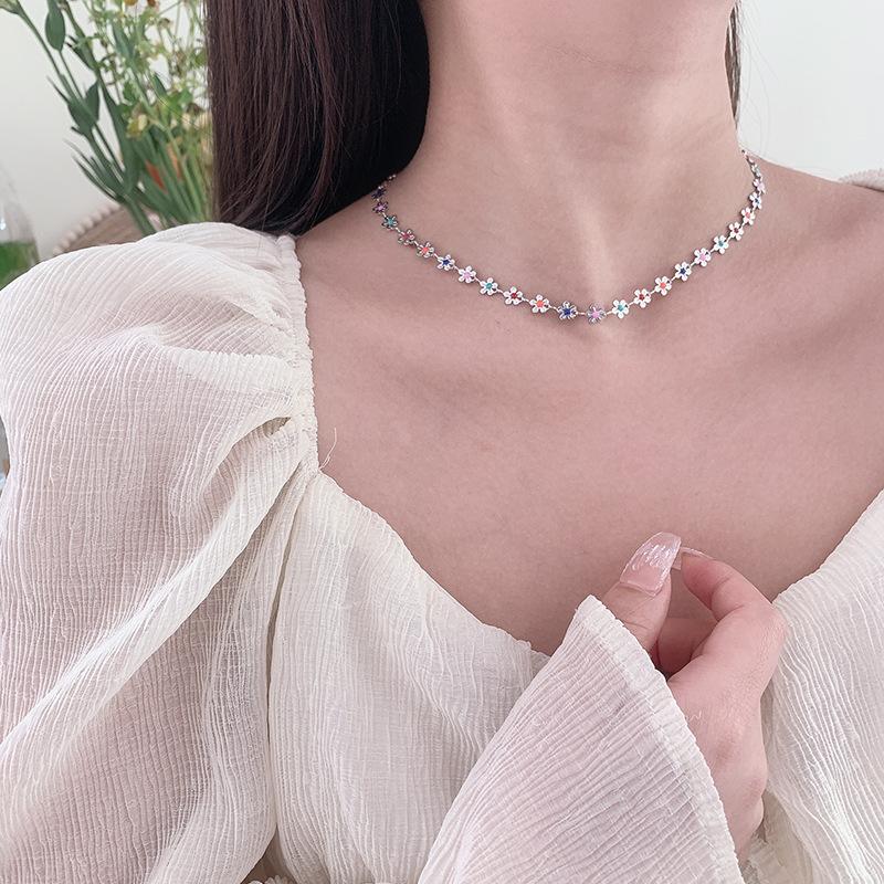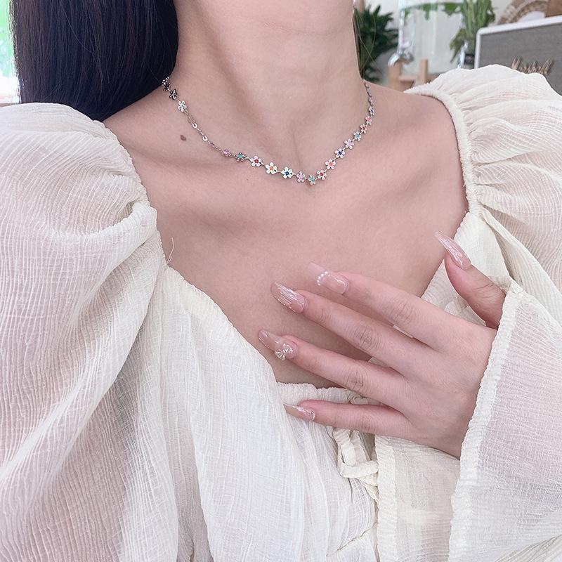 Collar de flores coloridas, diseño de nicho femenino, cadena de clavícula con sentido, nuevo verano 2023, pequeño y exquisito collar de celebridades de Internet.