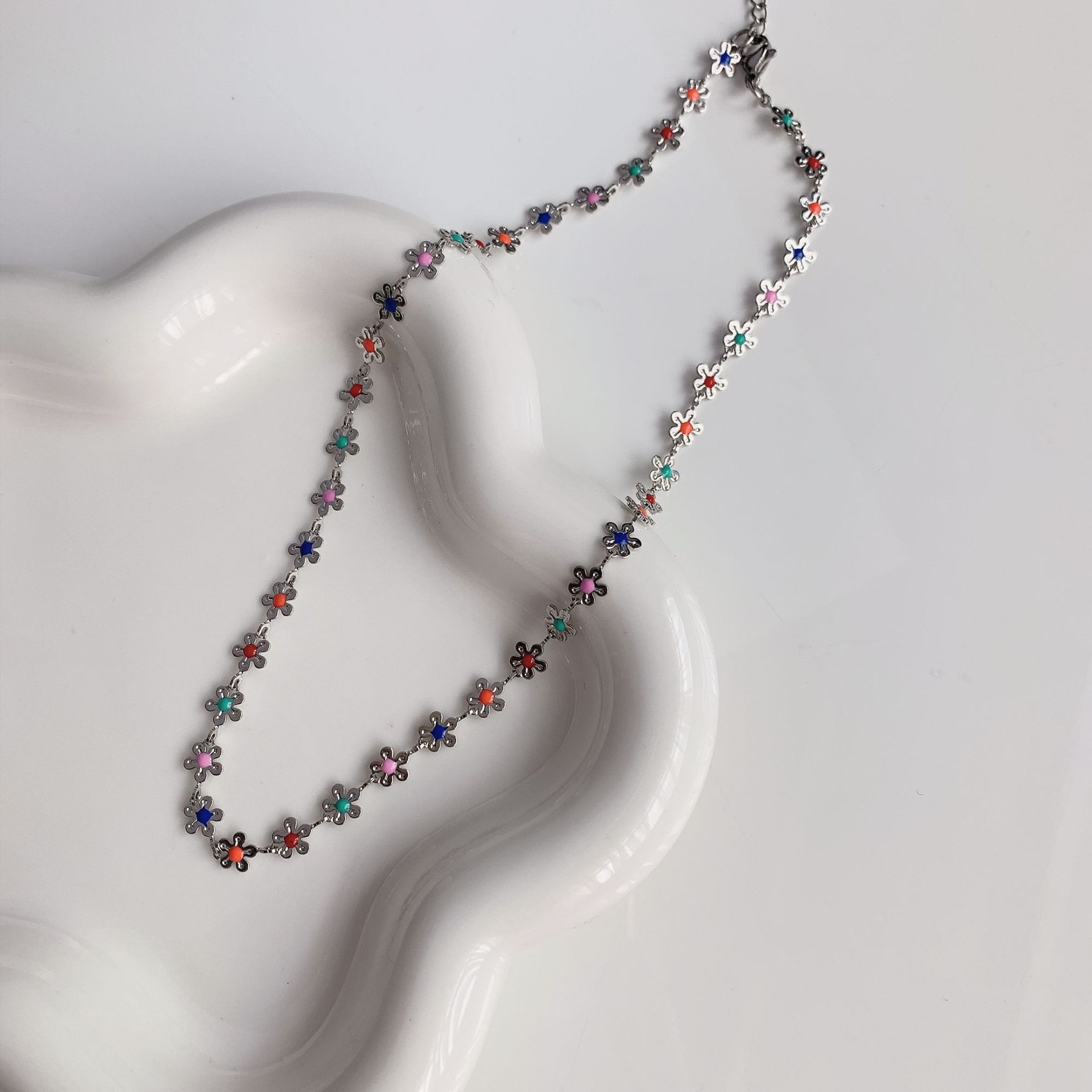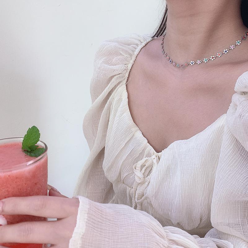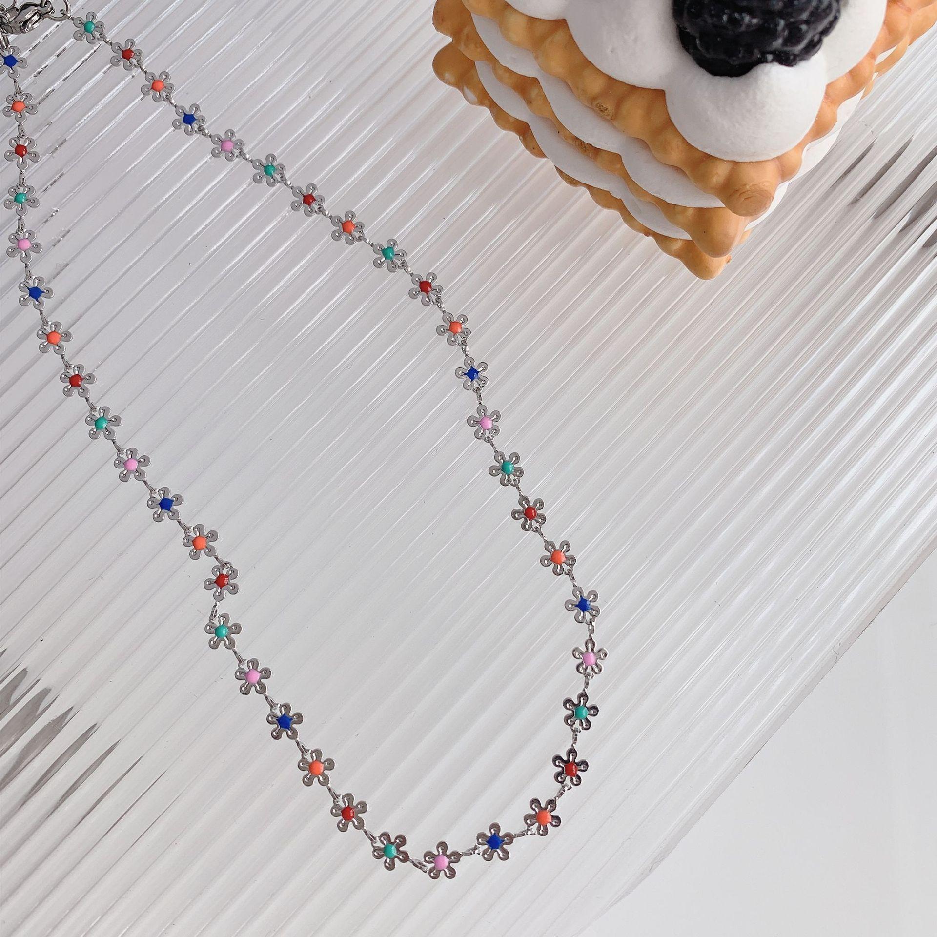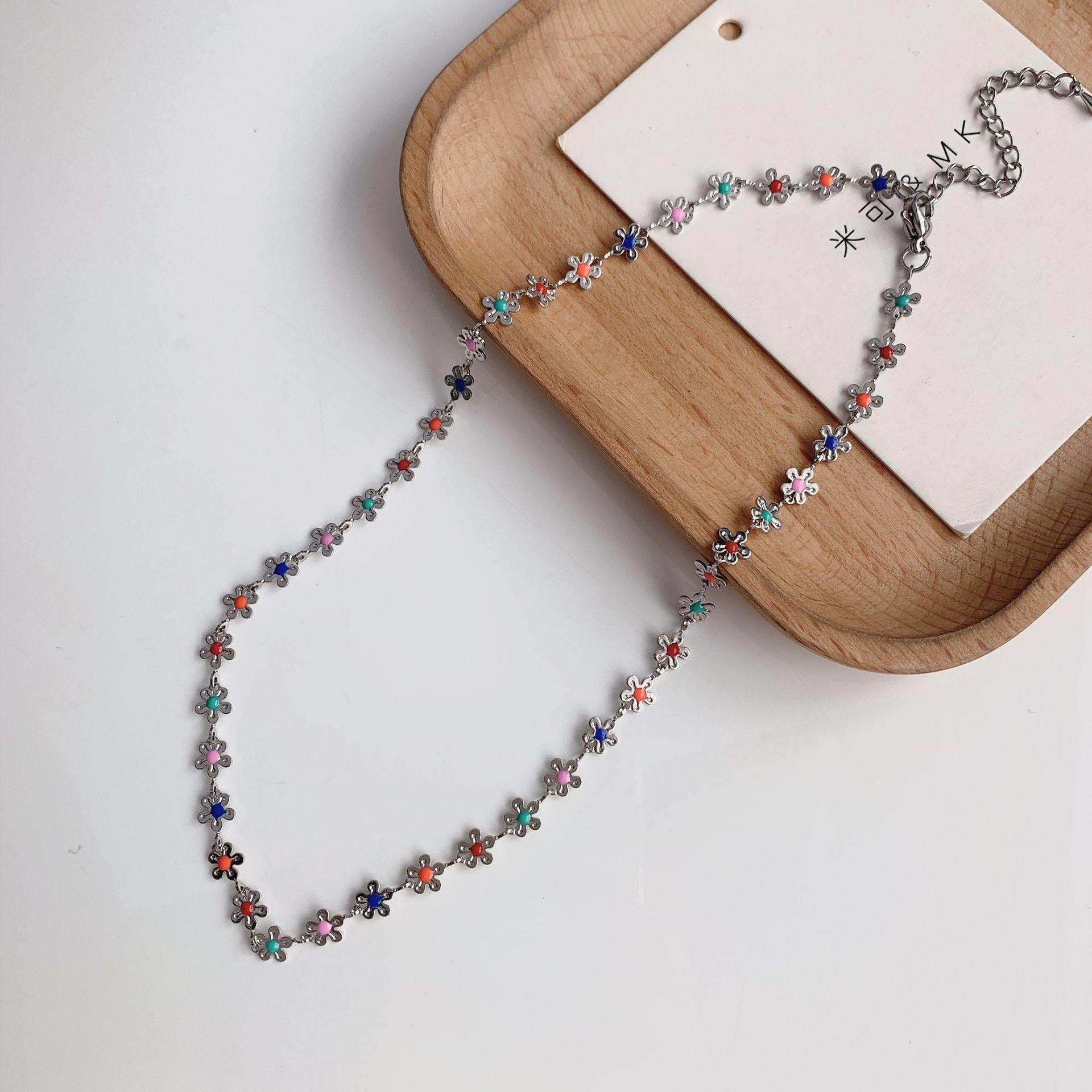Collar de flores coloridas, diseño de nicho femenino, cadena de clavícula con sentido, nuevo verano 2023, pequeño y exquisito collar de celebridades de Internet.
