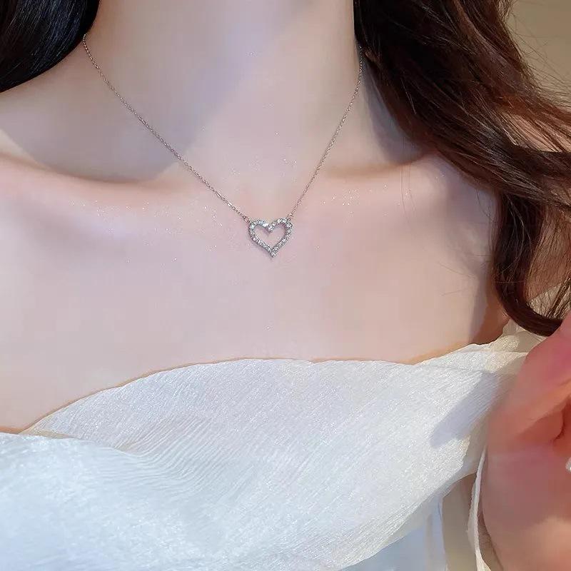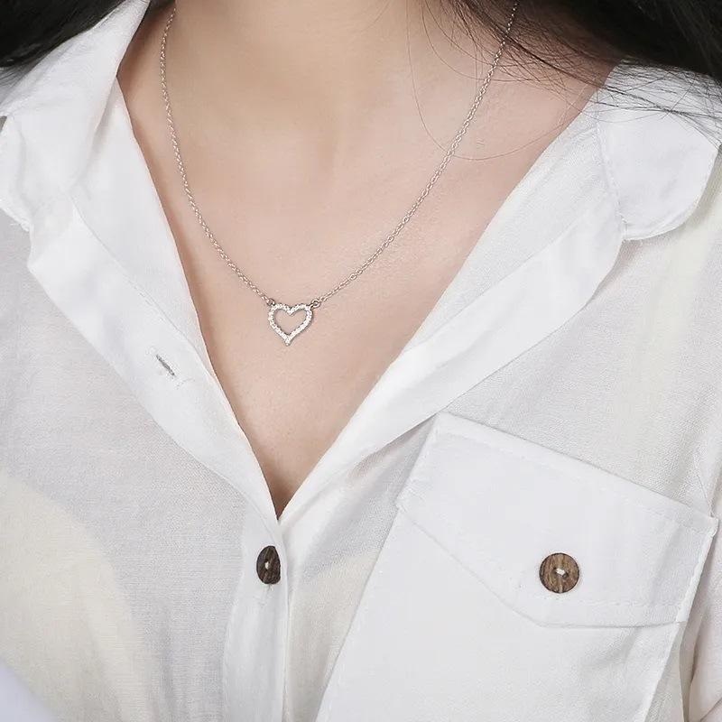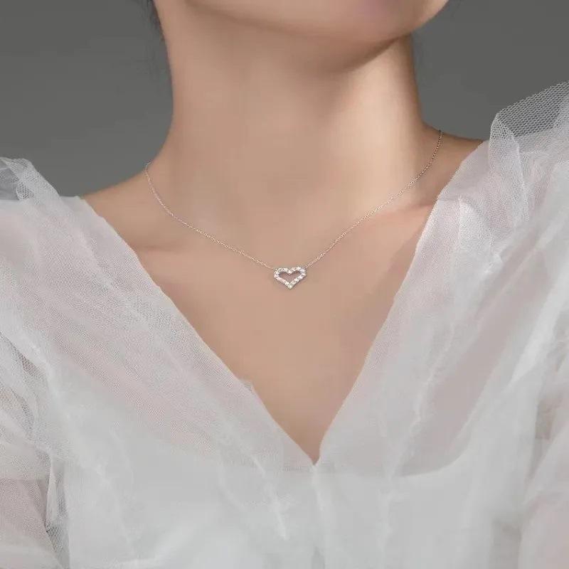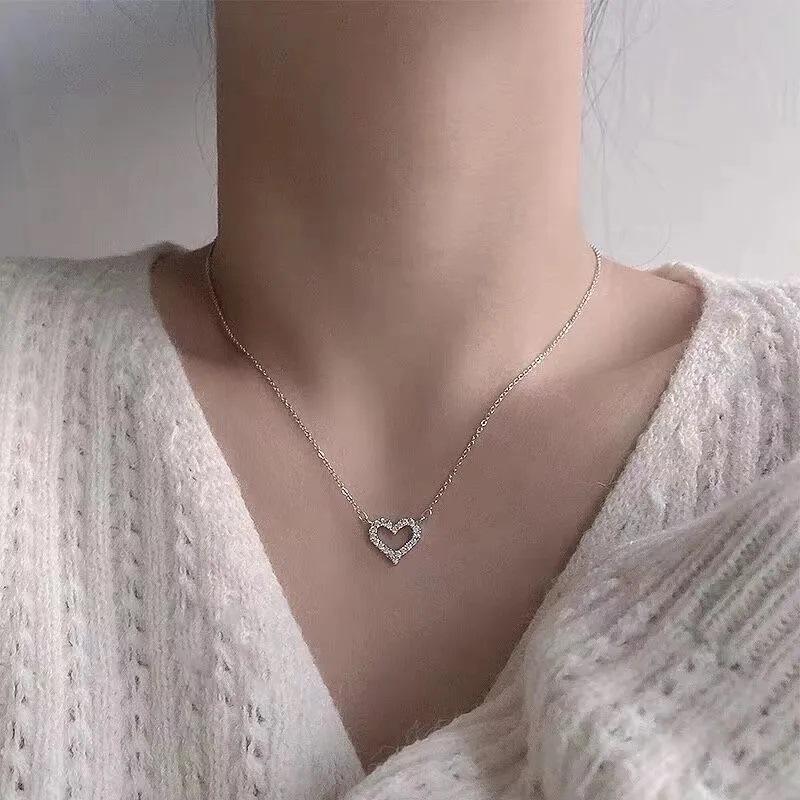 Collar Amor Hueco Diamante Completo para Mujer 2025 Otoño Lujo Ligero Exquisito Acero de Titanio de Alta Gama No Se Desvanece Cadena Clavícula Venta al Por Mayor