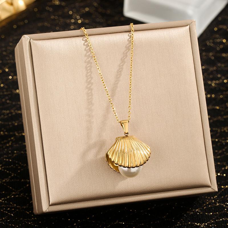 Collar con colgante de concha de perla de acero inoxidable de oro de 18 quilates y explosión popular en la red transfronteriza de Europa y Estados Unidos.
