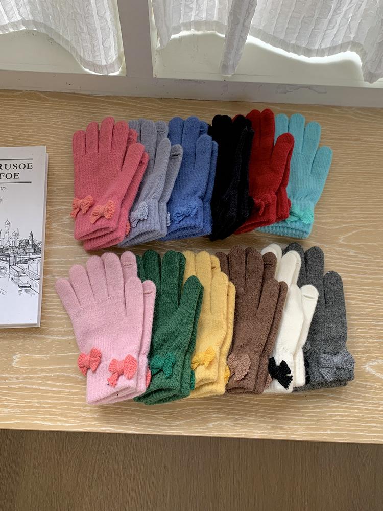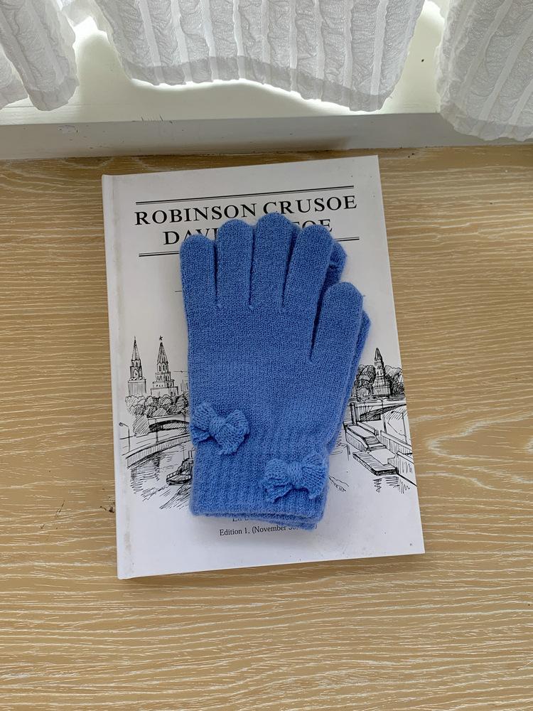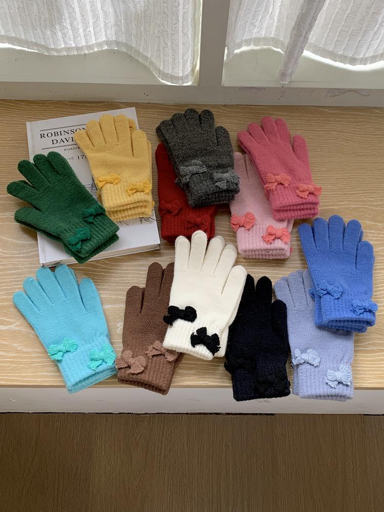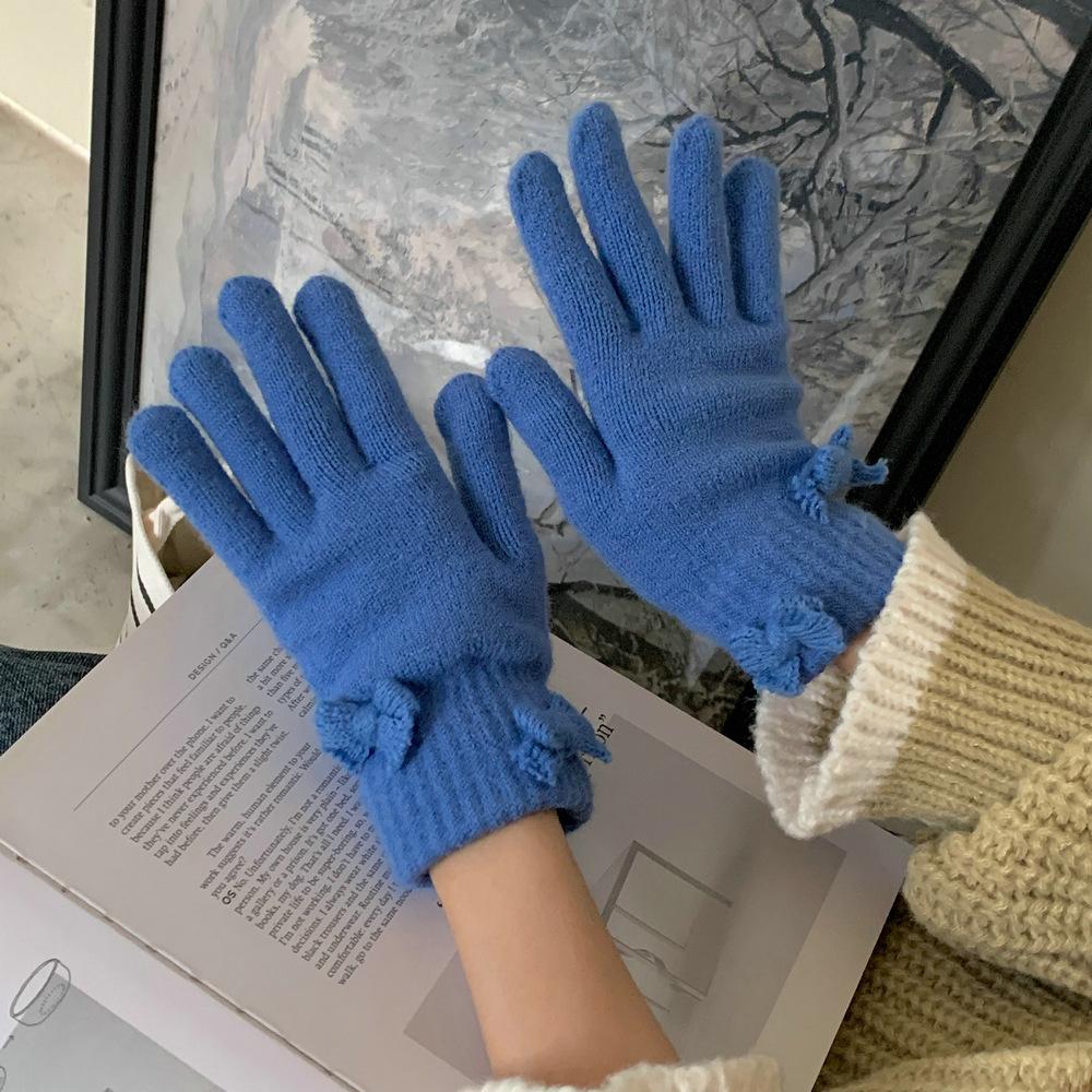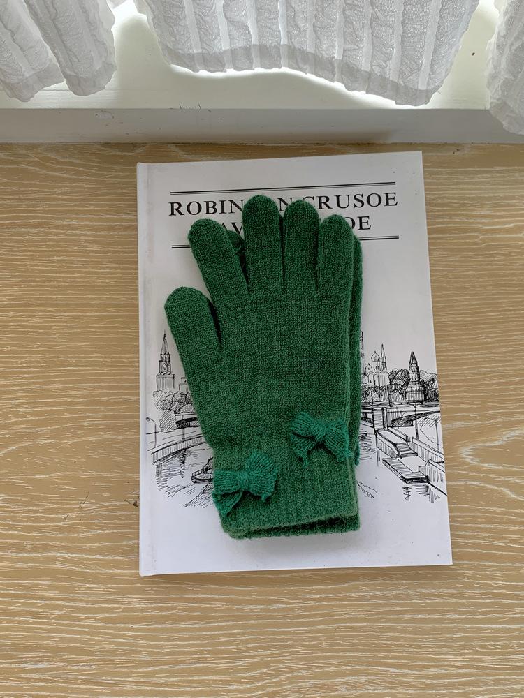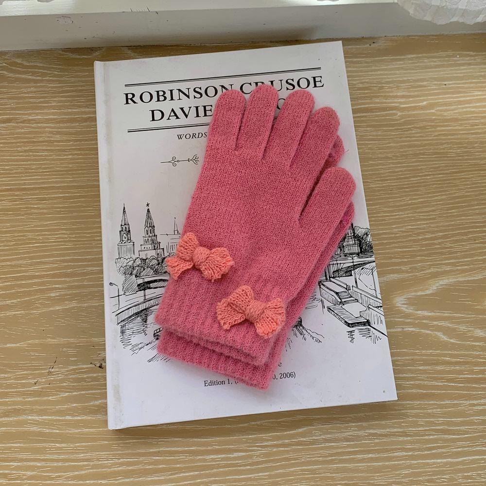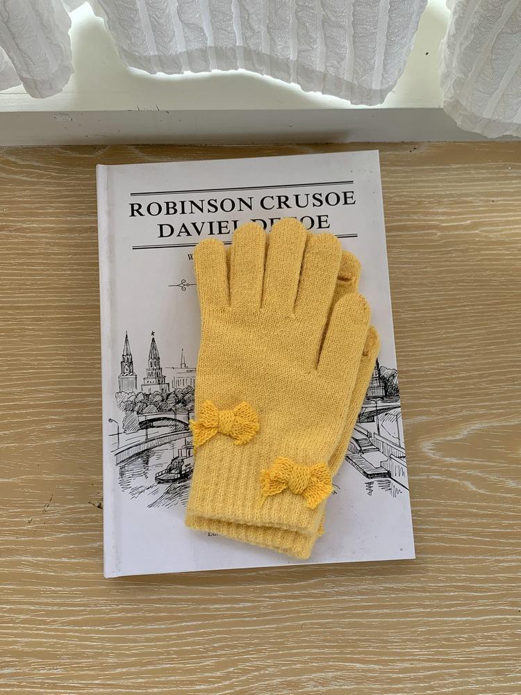 Guantes de Punto con Lazo Coreano Color Caramelo de Chica Dulce Invierno Cálido Dedos Expuestos para Montar Guantes a Prueba de Frío