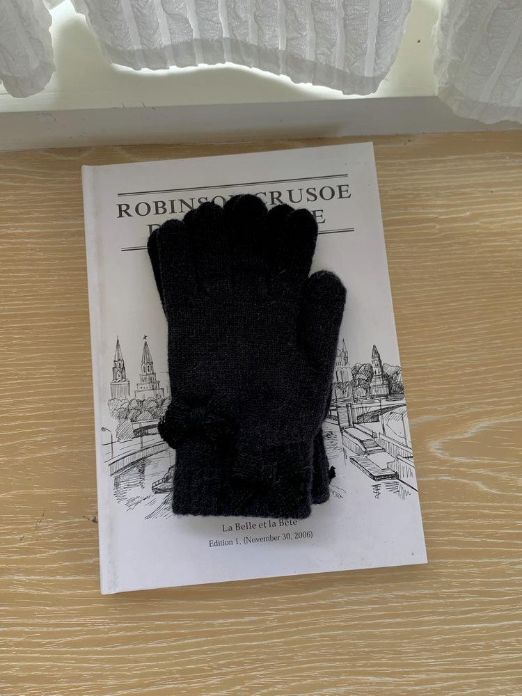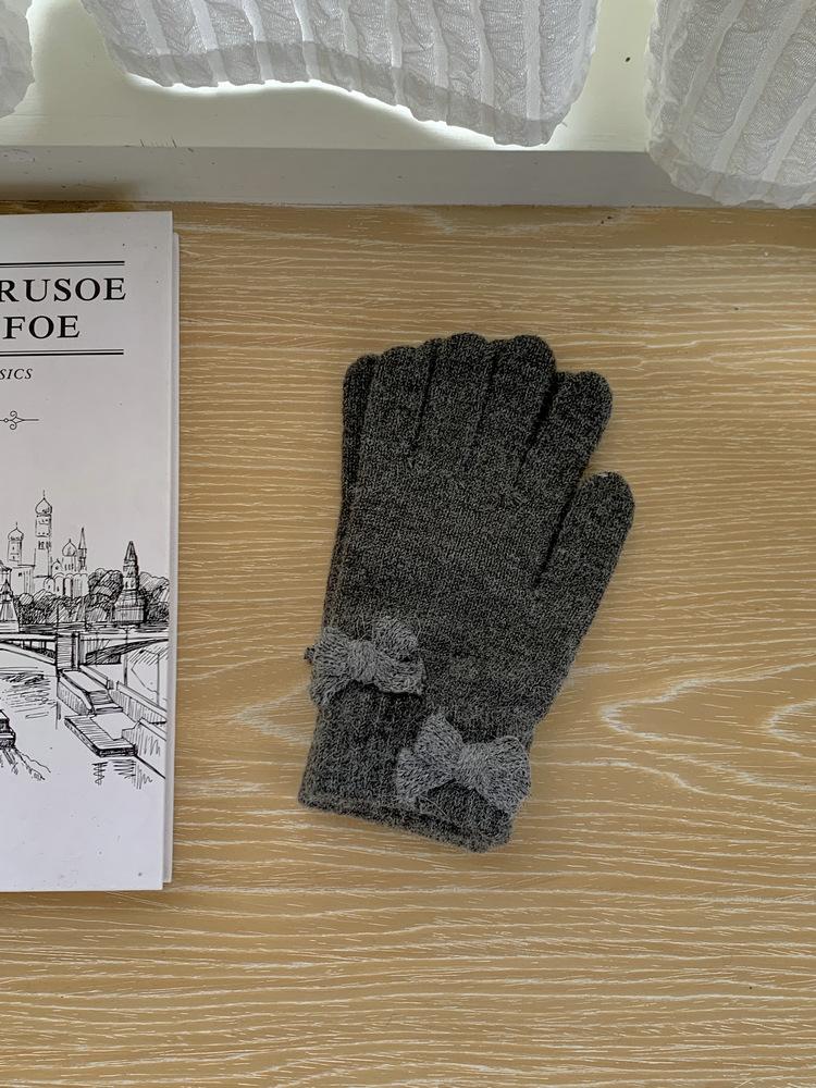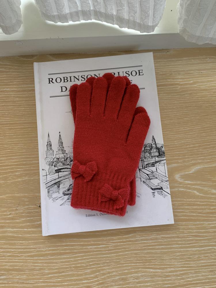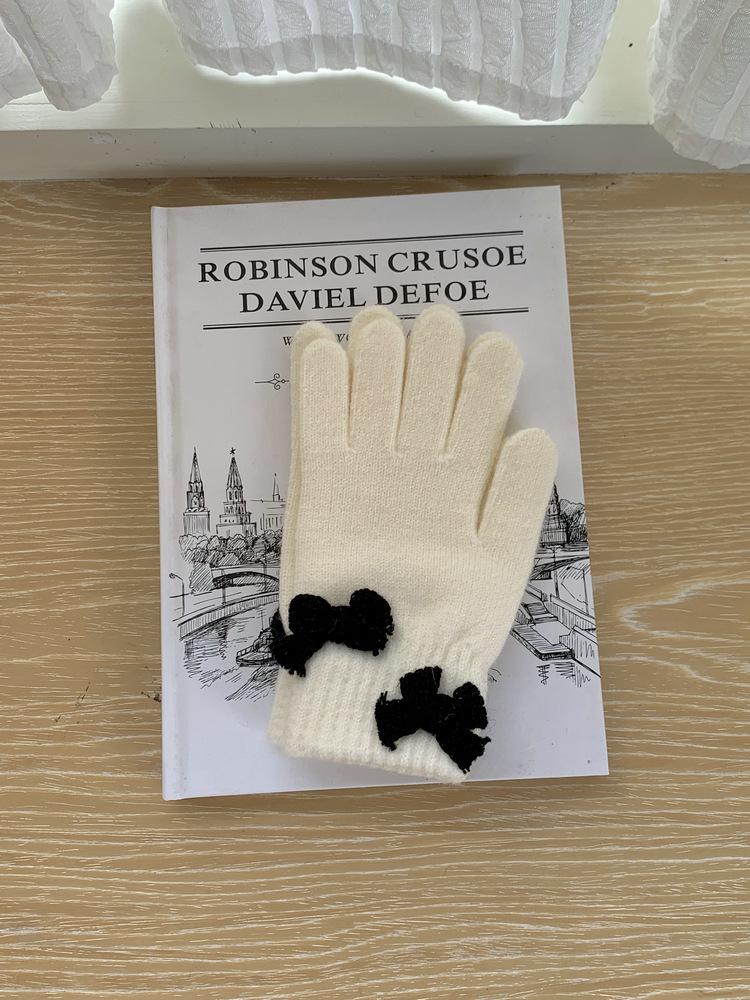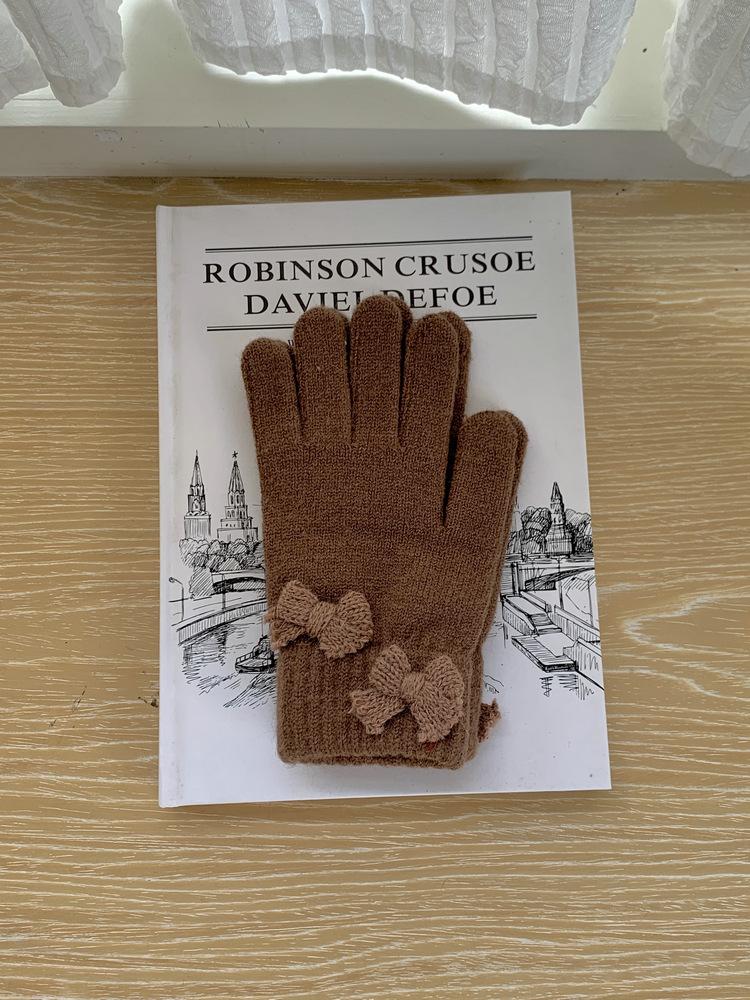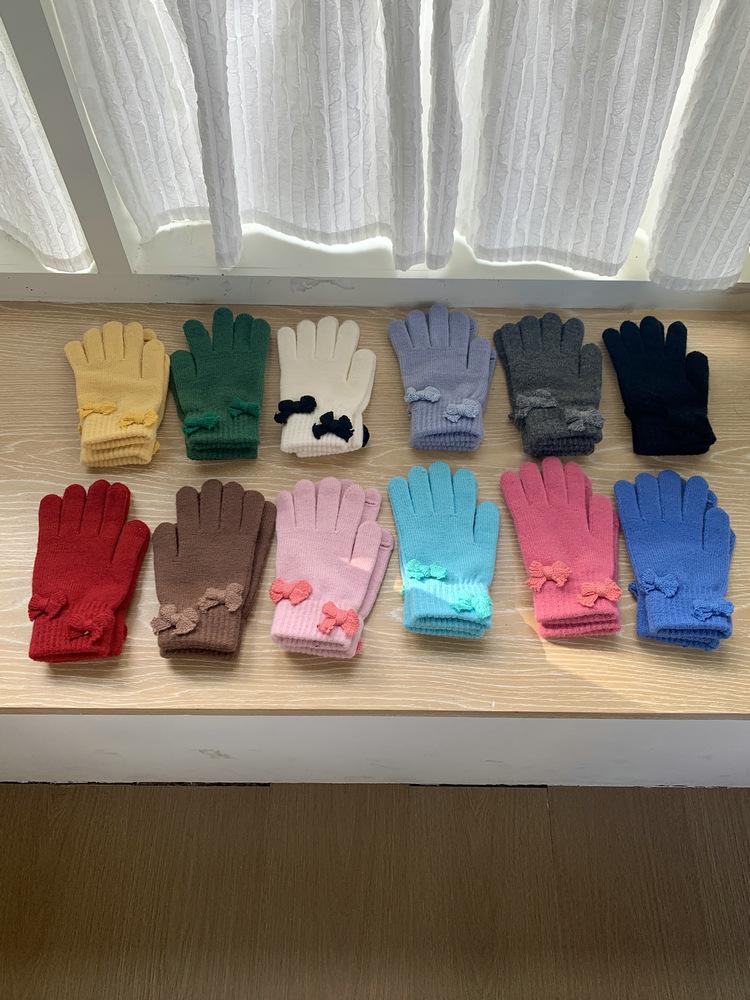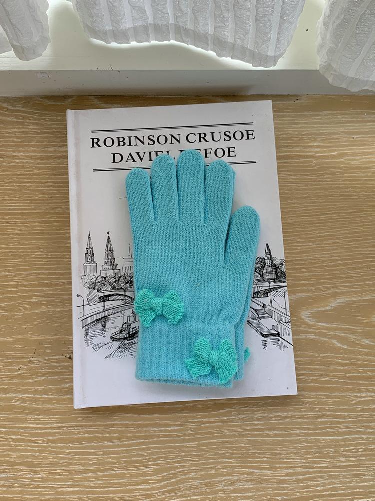 Guantes de Punto con Lazo Coreano Color Caramelo de Chica Dulce Invierno Cálido Dedos Expuestos para Montar Guantes a Prueba de Frío