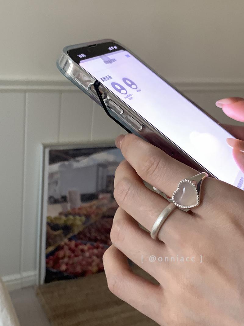 Anillo de Zircón Blanco Amor para Mujer Moda Versátil Simple Chapado Anillo para Usar Apilado Plata S925 Chapada Anillo Abierto para Dedo Anillo para Dedo de Comida
