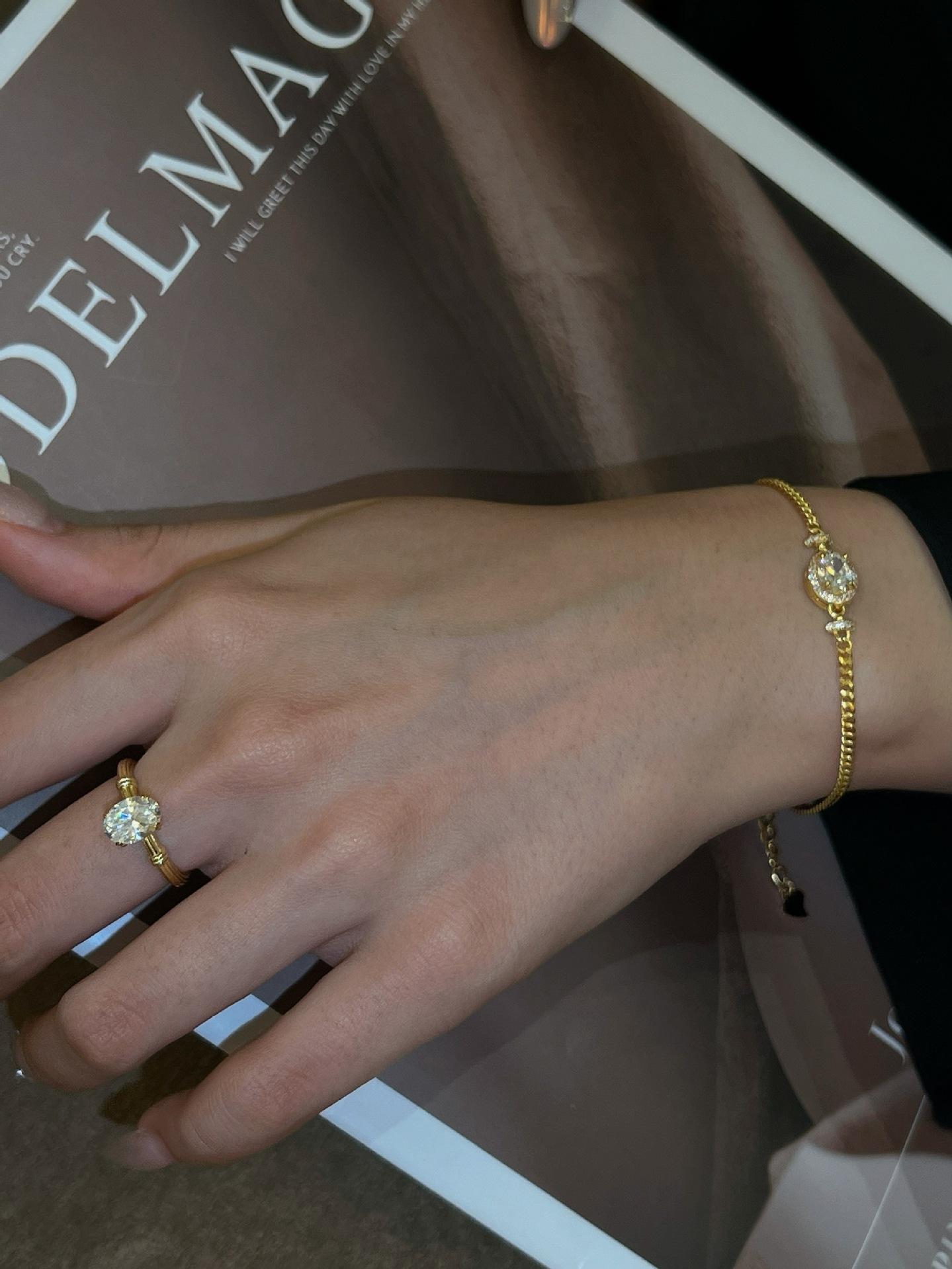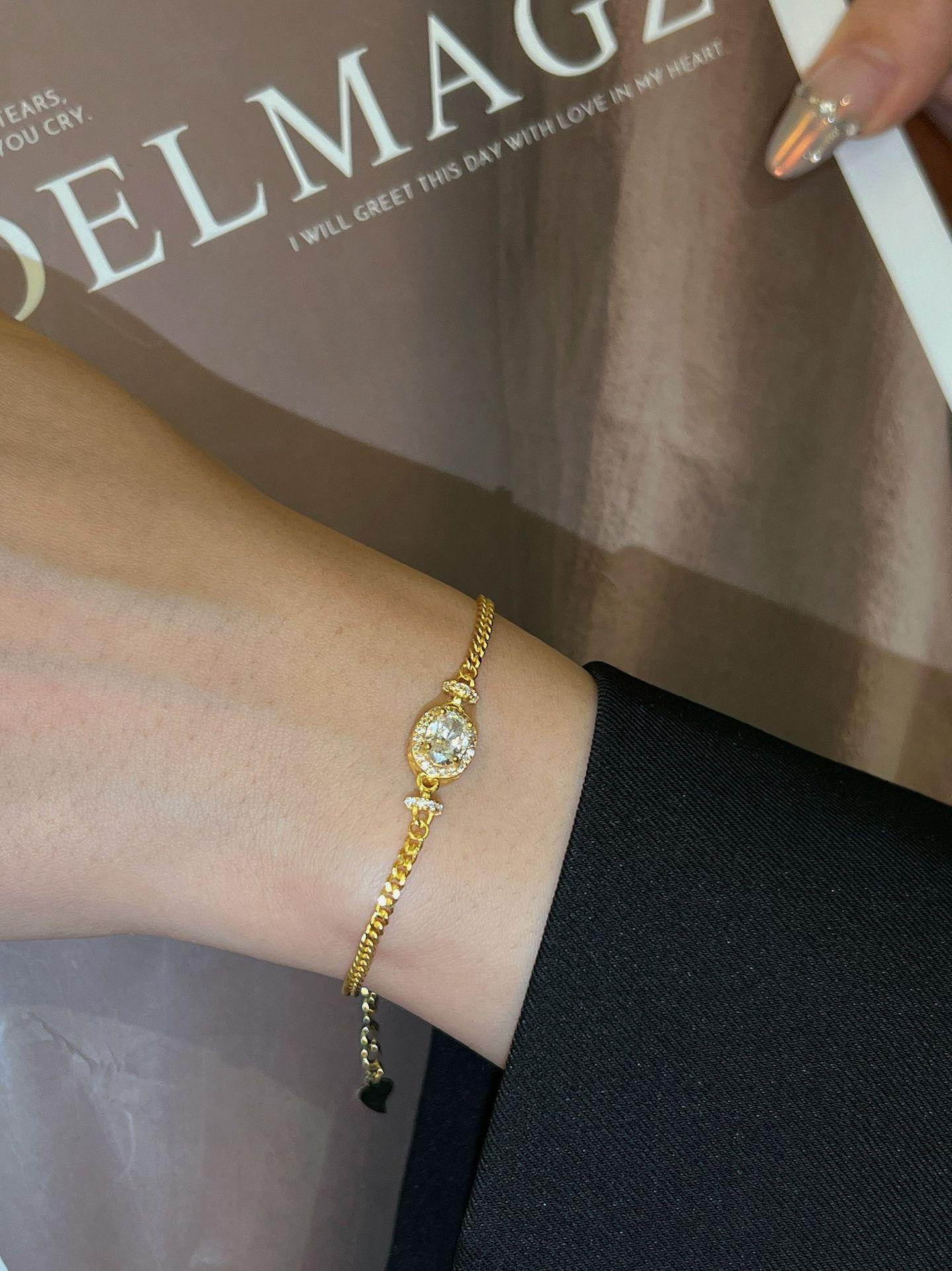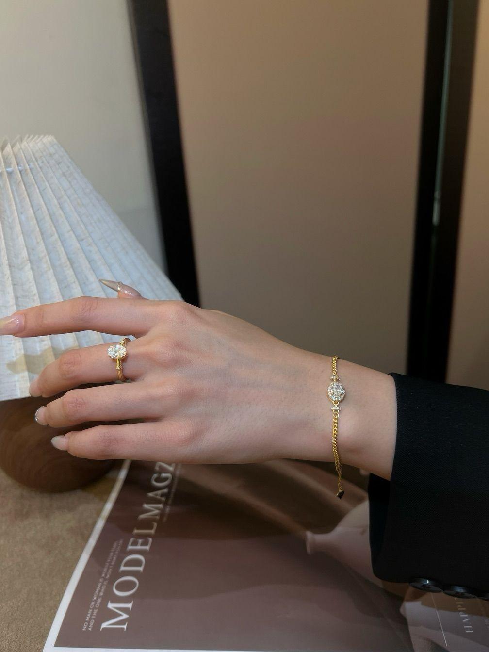 Pulsera Ovalada Blanca de Plata S925 de 1 Quilate Chapada en Oro K Sencilla de Moda de Alta Gama Elegante Elegante Joyería de Mano Fábrica Venta al por Mayor