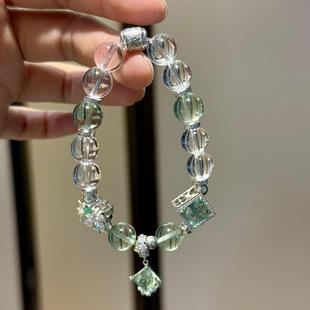 Pulsera de Cristal Blanco Natural al por Mayor de Fábrica Fluorita Verde Plata S925 Cuentas Barril Diseño Nicho Fresco Pulsera Color Caramelo