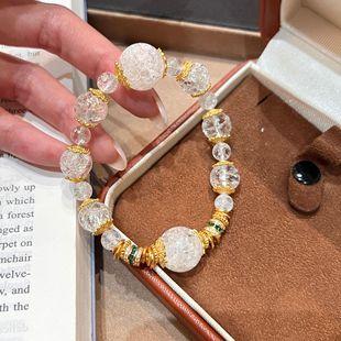 Venta Directa de Fábrica Cuentas Redondas de Flor Explosión Craquelada de Hielo Pulsera de Mano Enrollada Plata S925 Chapada en Oro Adorno de Mano Diseño Original Pulsera de Alto Sentido