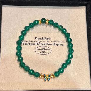 Pulsera Retro de Esmalte Mariposa Ágata Verde Mujer Plata S925 Nuevo Chino Versátil Diseño de Alta Gama Ventas Directas de Fábrica SM