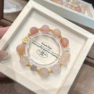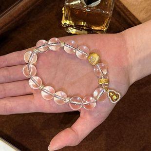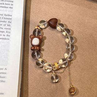 Venta Directa de Fábrica Pulsera de Cristal Blanco Natural Sándalo de Montaña Vieja Sueño Madera de Bebé Corazón de Melocotón Exquisita Moda Pulsera Original SM