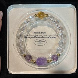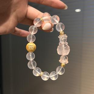 Pulsera de Cristal Blanco Natural Amatista Brasileña Pequeño Pixiu Atrae Riqueza Nueva Pulsera Original En Stock Venta al por Mayor SM