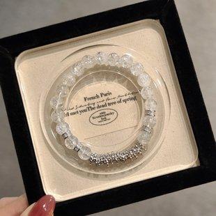 Pulsera Enrollada de Plata Esterlina S925 Cristal Blanco Agrietado Natural con Incrustación de Diamantes Tendencia de Verano Diseño de Moda para Mujer Pulsera SM