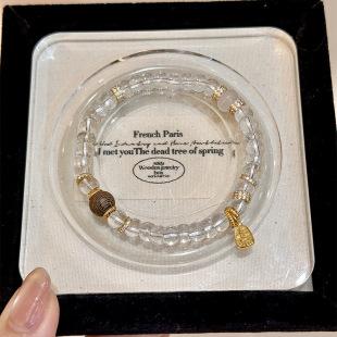 Pulsera de Cristal Blanco Natural Plata S925 Chapada en Oro Paz y Alegría Madera de Agar Estilo Nacional Pulsera Exquisita para Mujer En Stock Venta al por Mayor SM