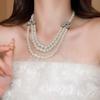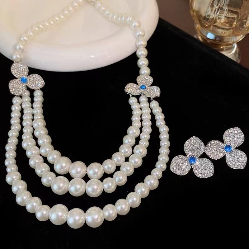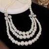 Collar de perlas multicapa con flores, cadena de suéter de lujo de nicho ligero de alta gama, elegante cadena de clavícula de alta gama, collar femenino de alta calidad