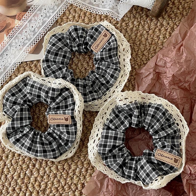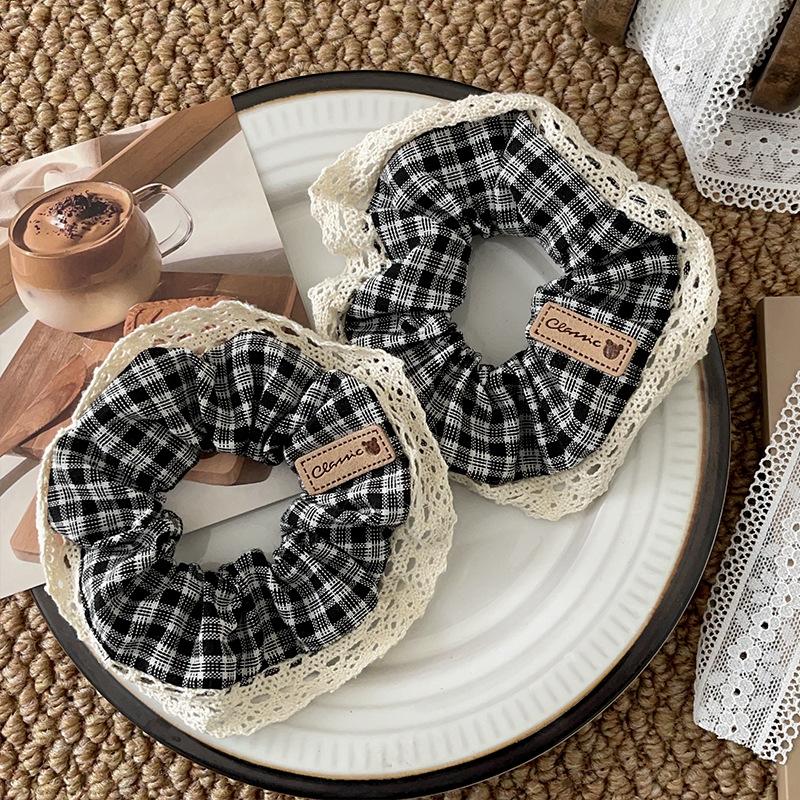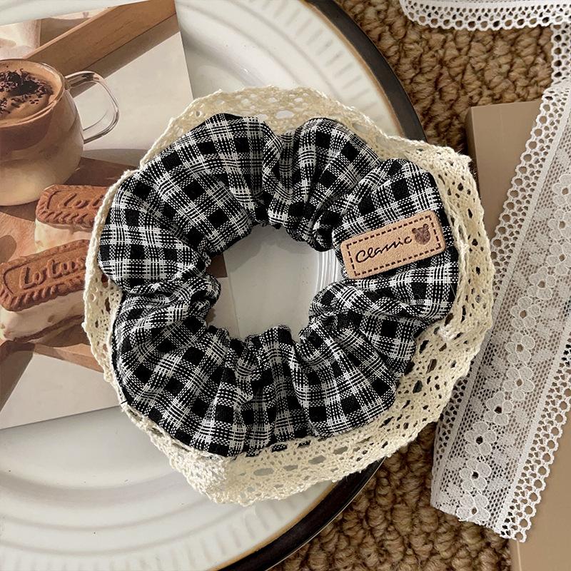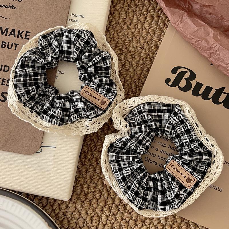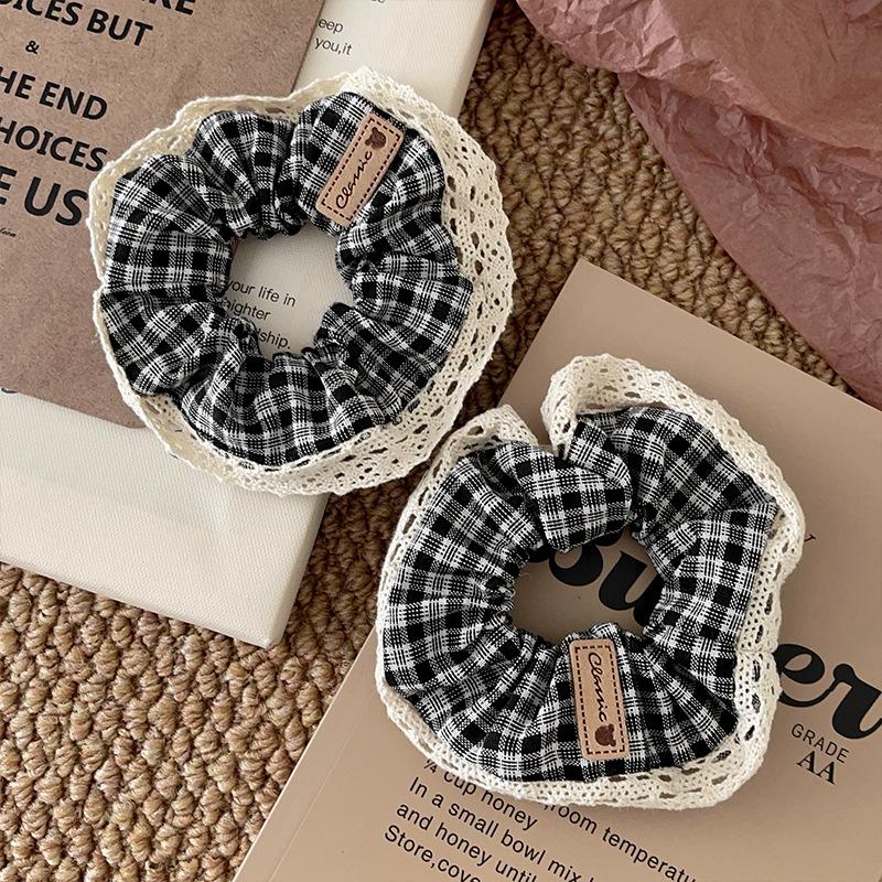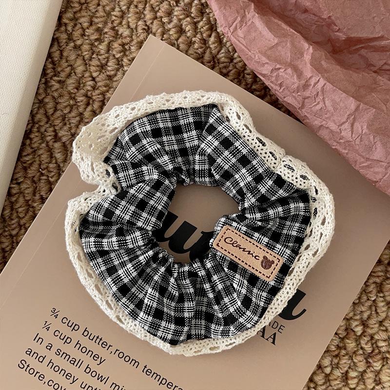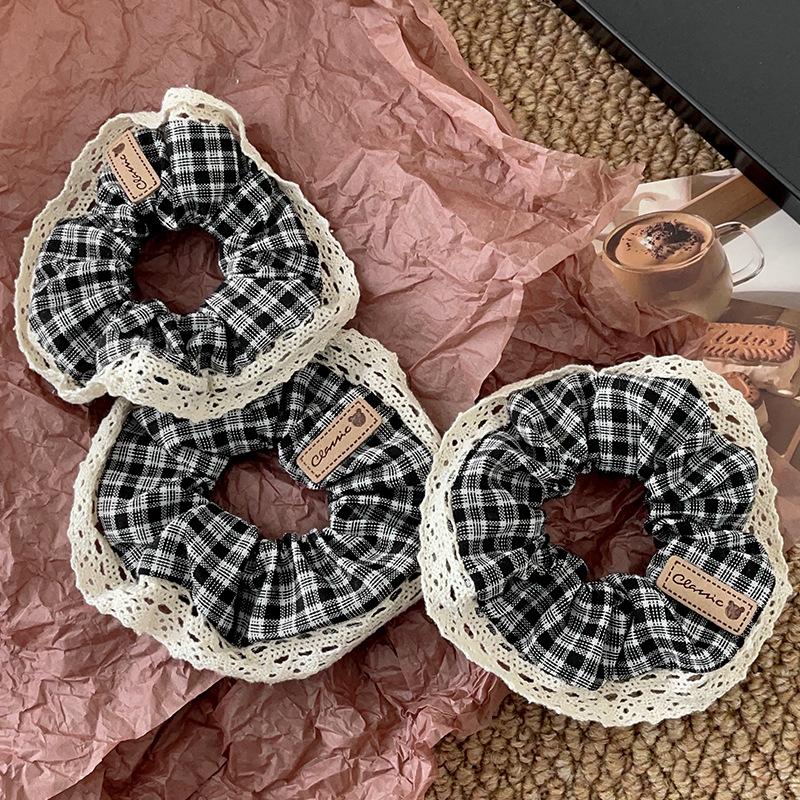 Compra Nueva banda para el cabello de intestino grueso con borde de encaje coreano a cuadros, banda de goma para cola de caballo con cabeza de oso de alta calidad, accesorios para el cabello al por mayor al por mayor en Joom.pro