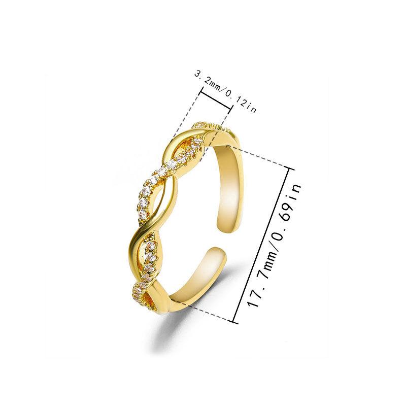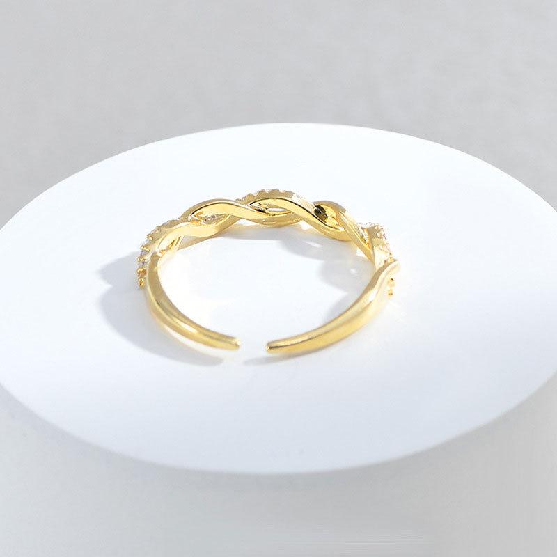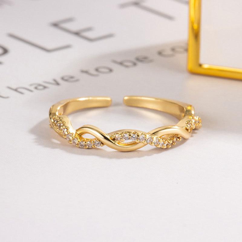 Anillo de Apertura Torcida Tejido de Diamantes Transfronterizo para Mujer, Moderno, Lujoso Ligero, Ajustable para Nudillo, Anillo para Dedo Índice, Joyería de Comercio Exterior para Mujer