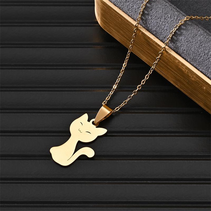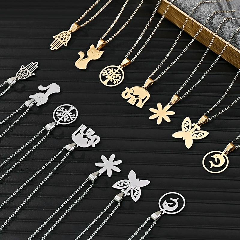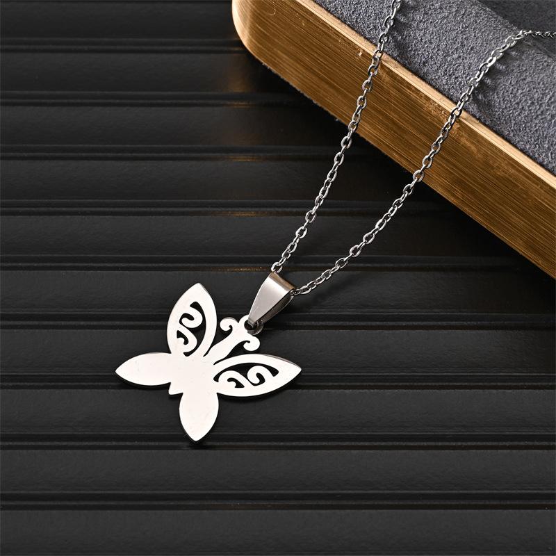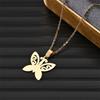 Collar de acero inoxidable que combina con todo, colgante de acero de titanio con personalidad de alta calidad, collar de gato y mariposa, joyería de moda.