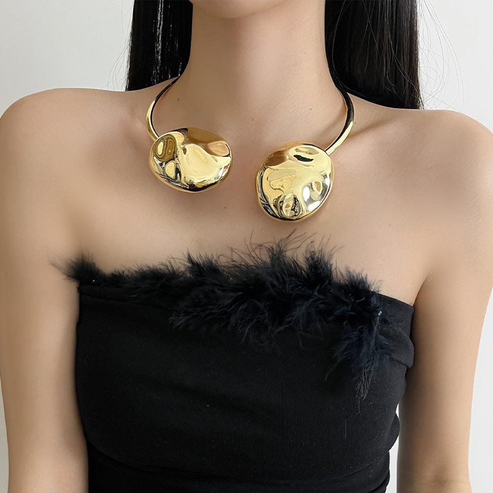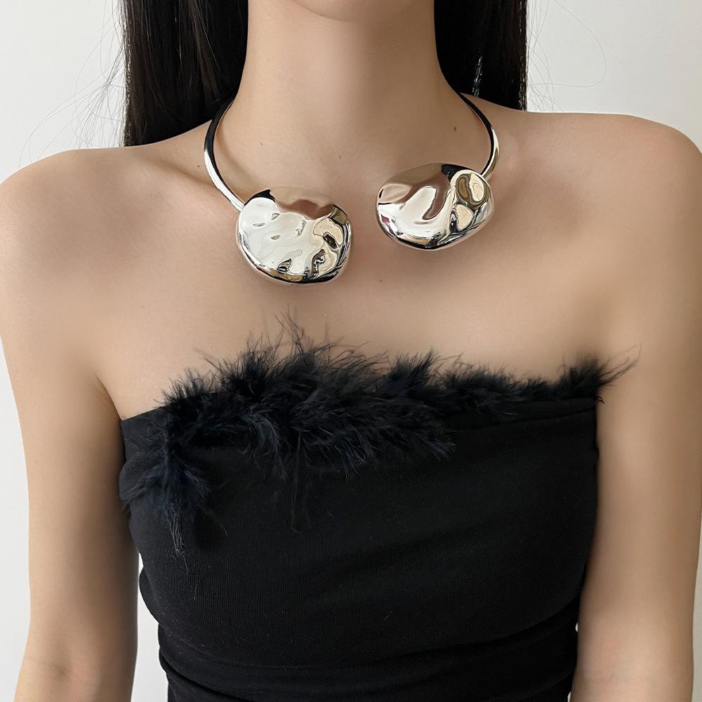Collar abierto de metal con personalidad exagerada de estilo retro de alta gama para mujer, estilo moderno, estilo europeo y americano, cadena de clavícula única.