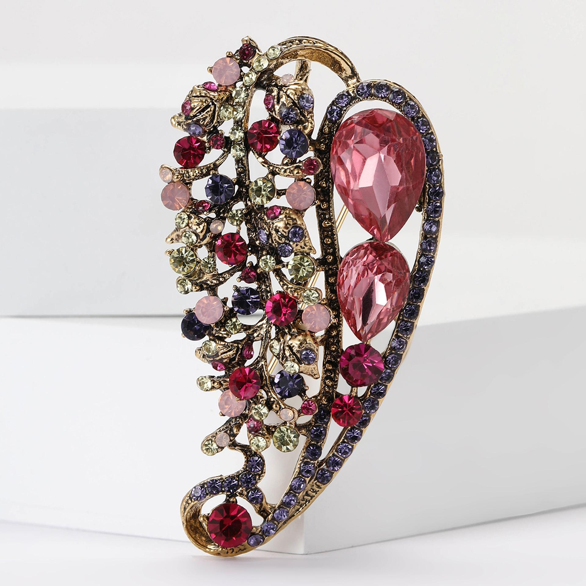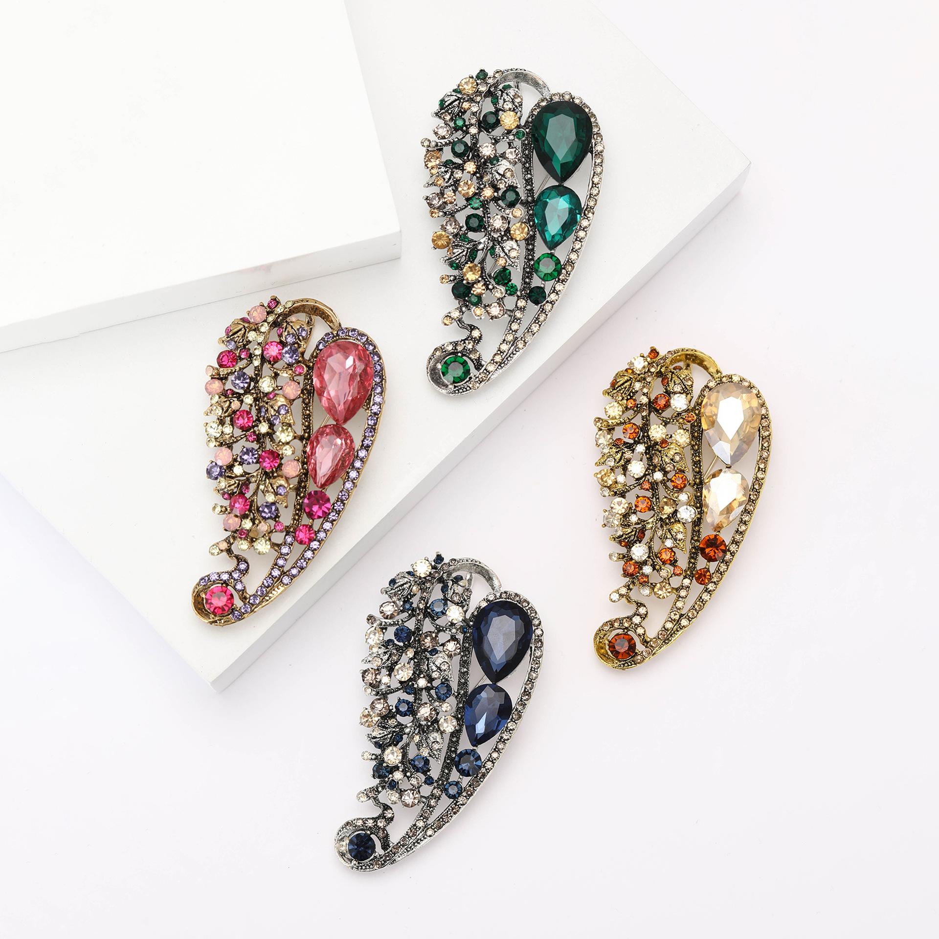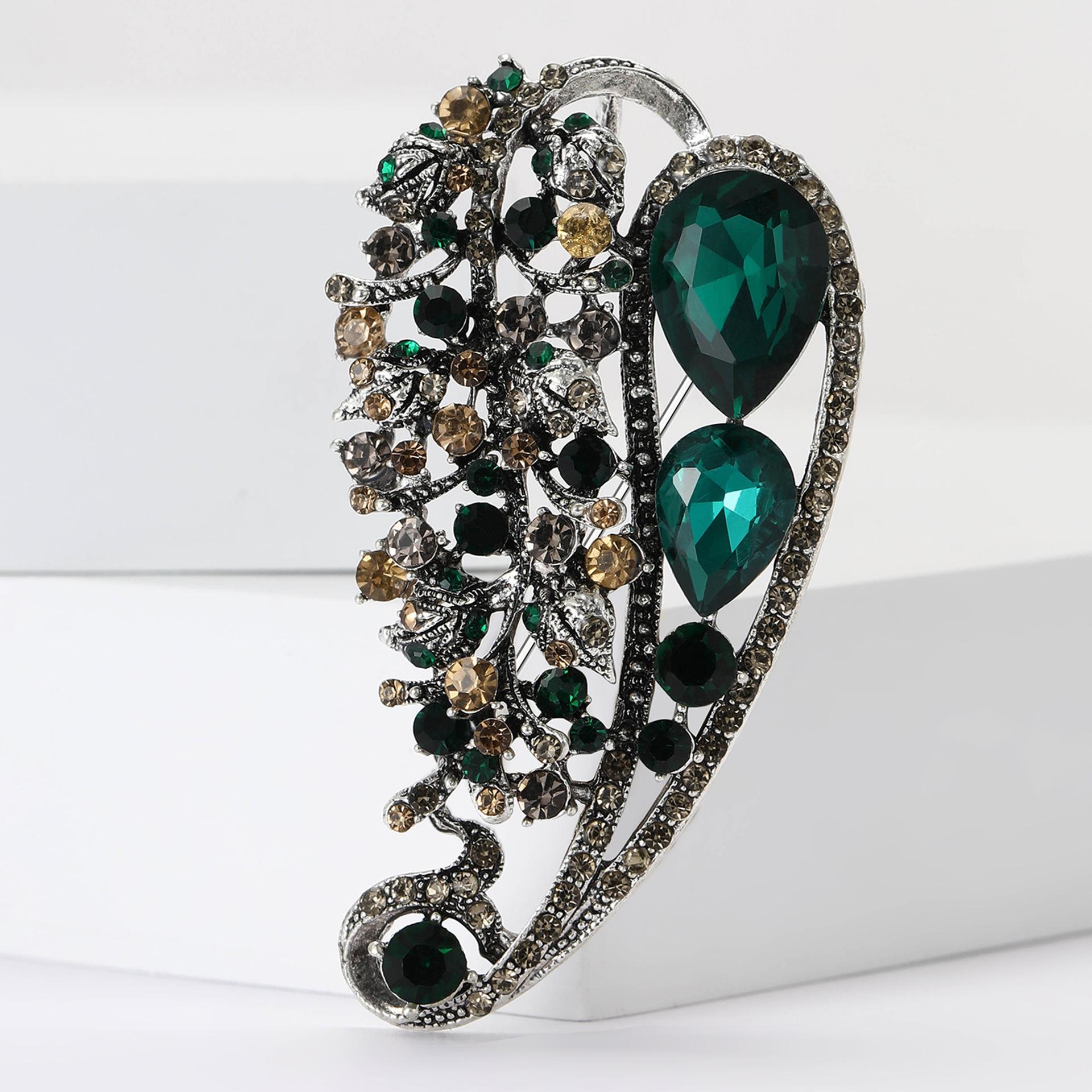Broche de aleación retro europea y americana con hojas de diamantes de imitación huecos, broche de moda de alta gama para mujer, cárdigan, ramillete, alfiler de joyería