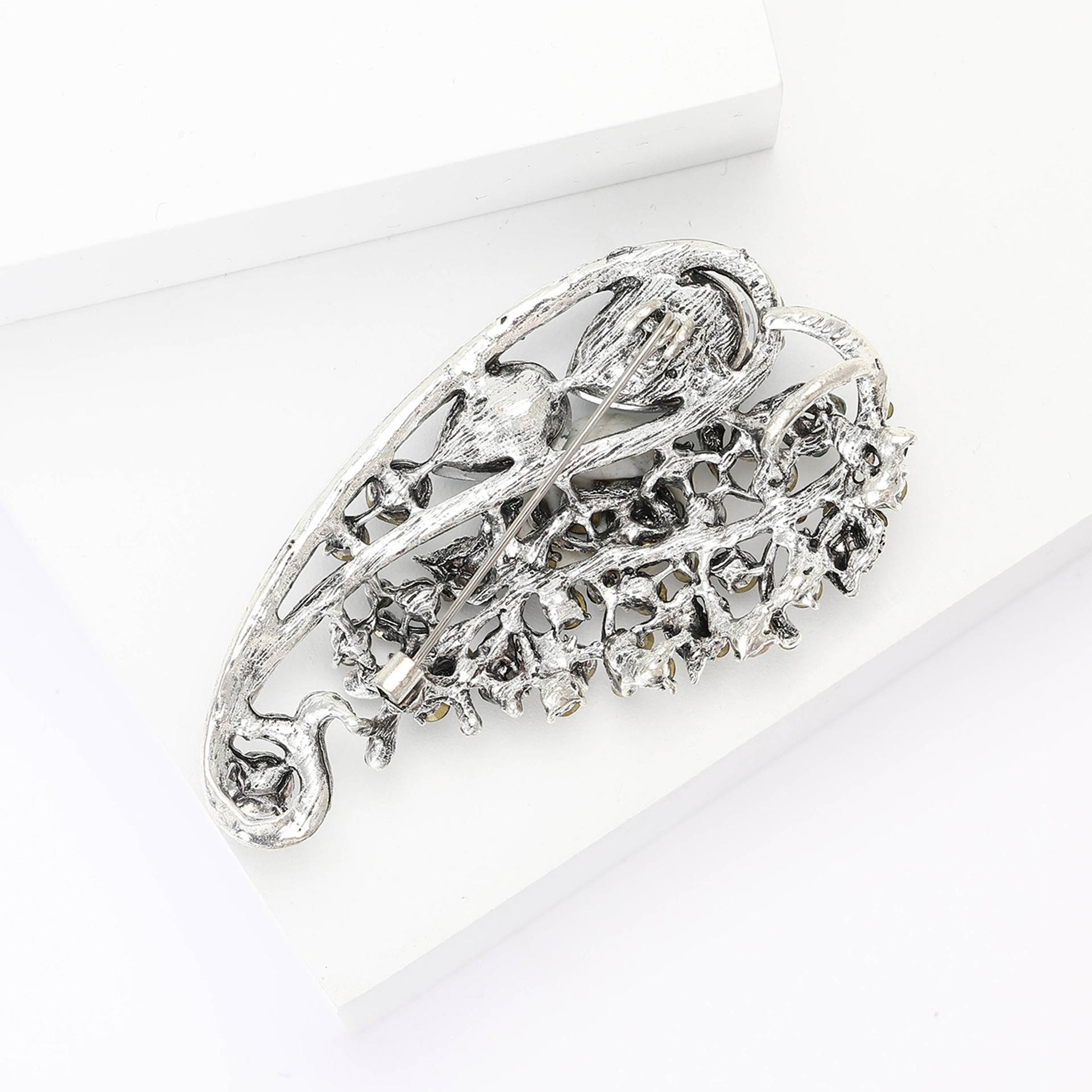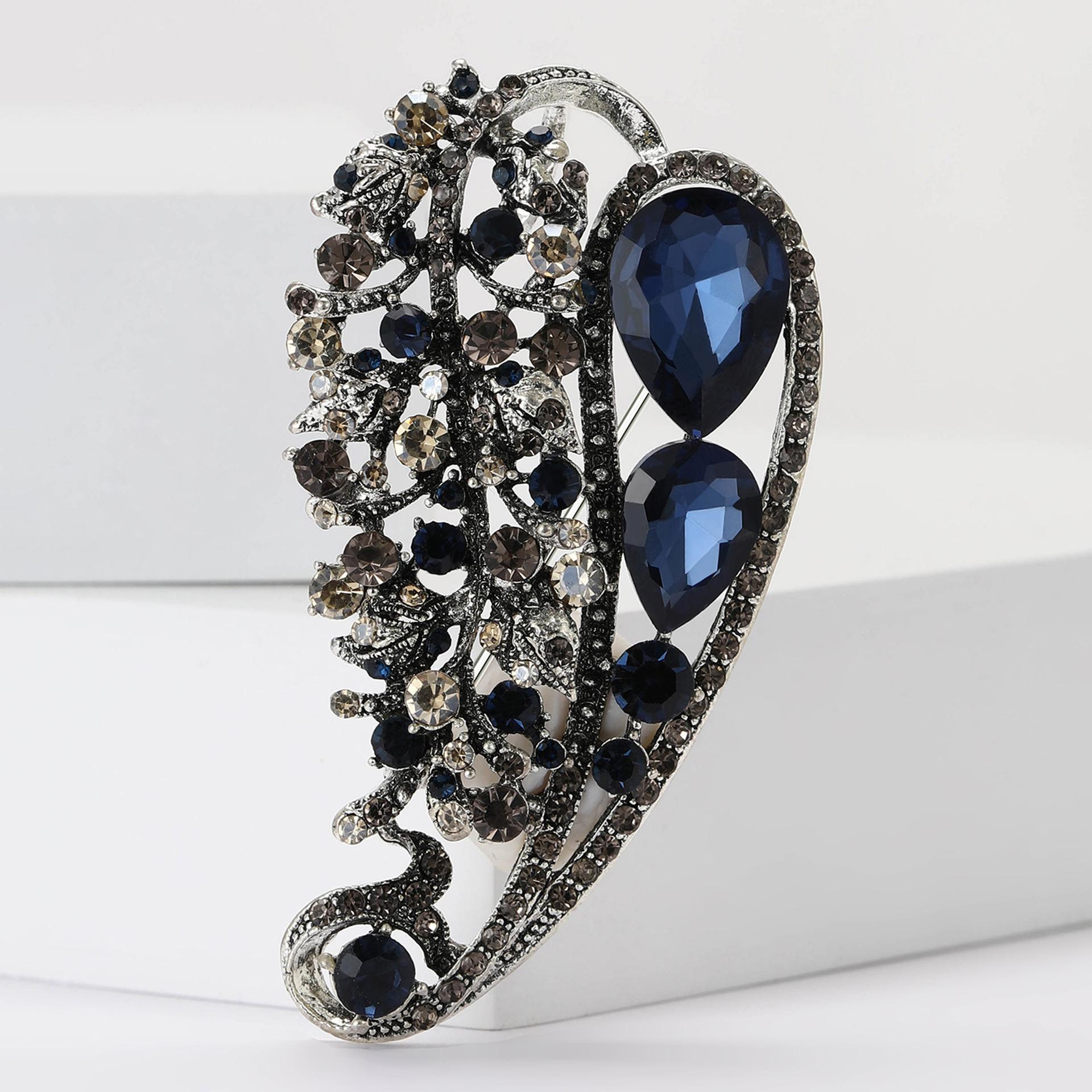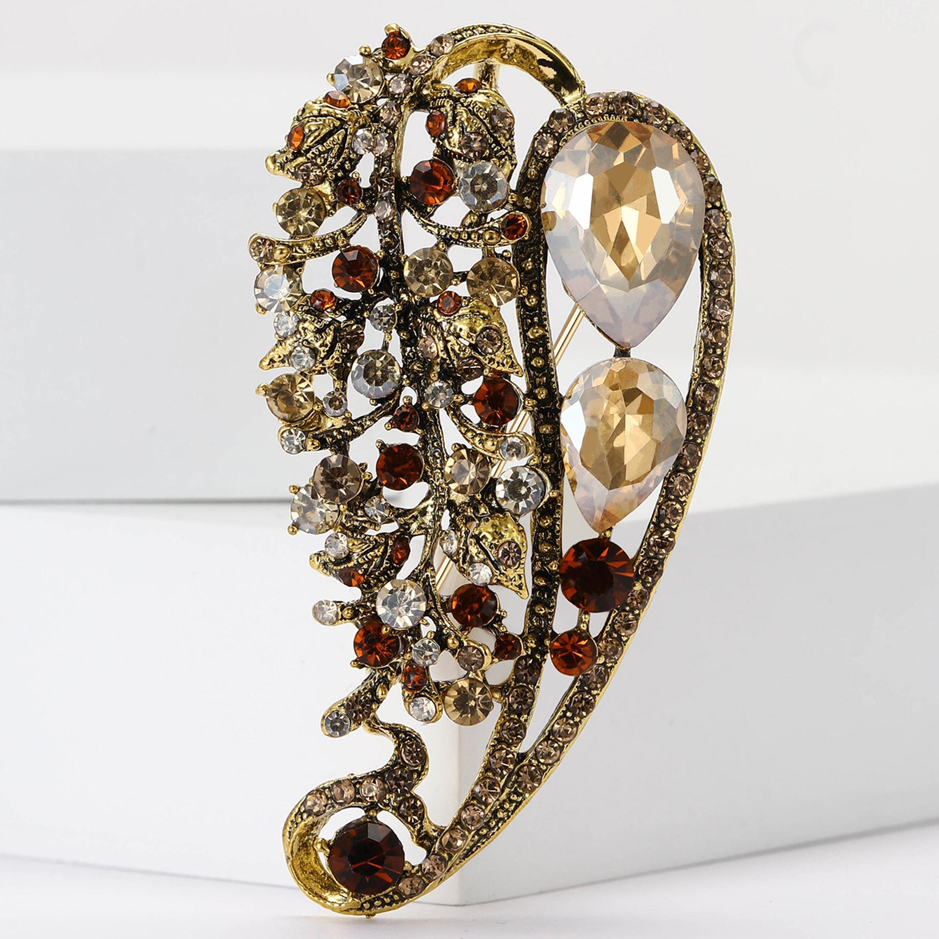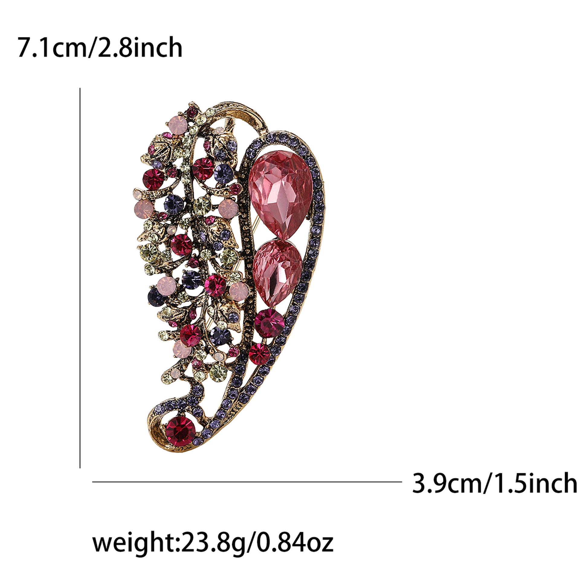 Broche de aleación retro europea y americana con hojas de diamantes de imitación huecos, broche de moda de alta gama para mujer, cárdigan, ramillete, alfiler de joyería