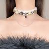 Collar de clavícula de acero inoxidable con forma de O gruesa y cadena corta con lazo de perlas y personalidad europea y americana, joyería que conserva el color, nuevo