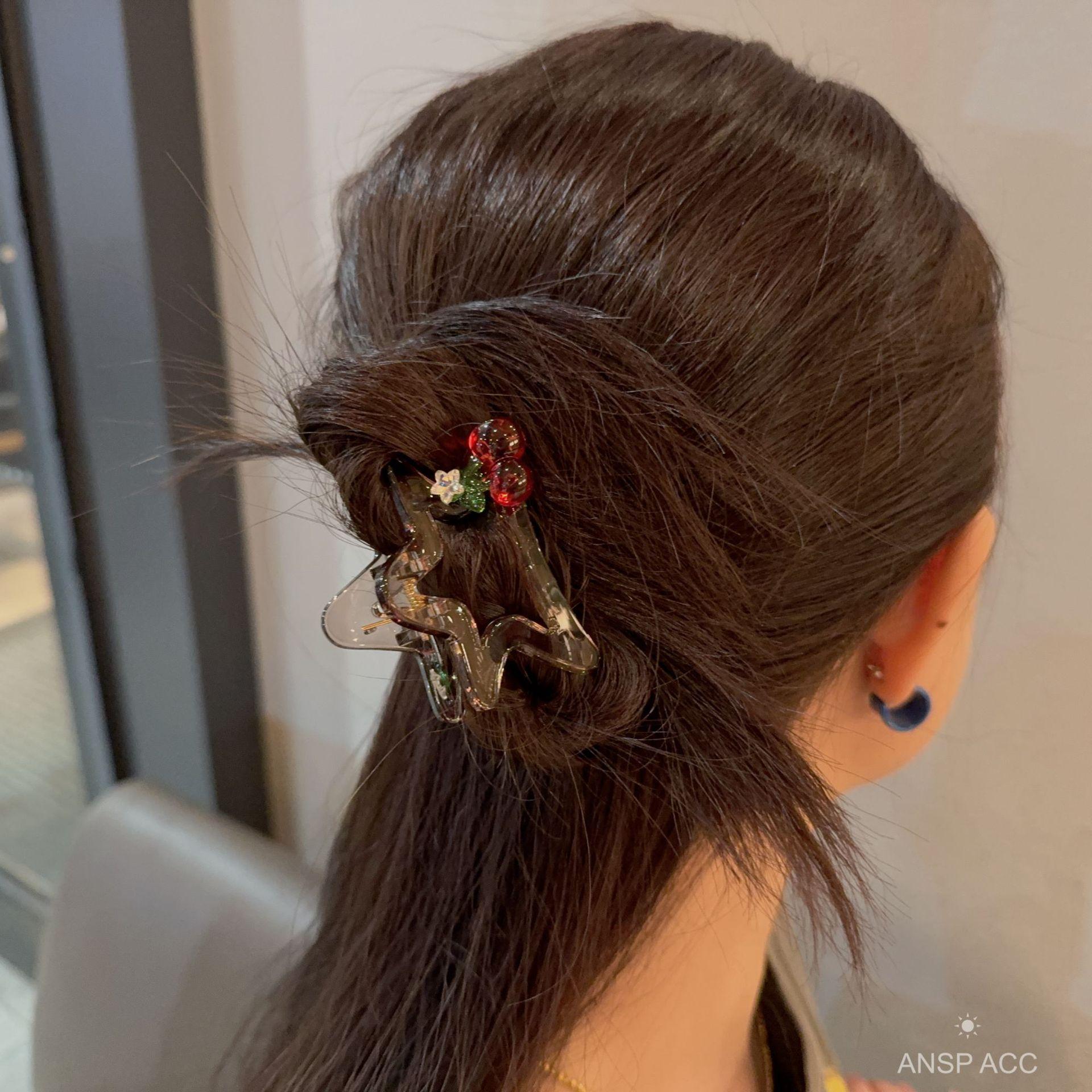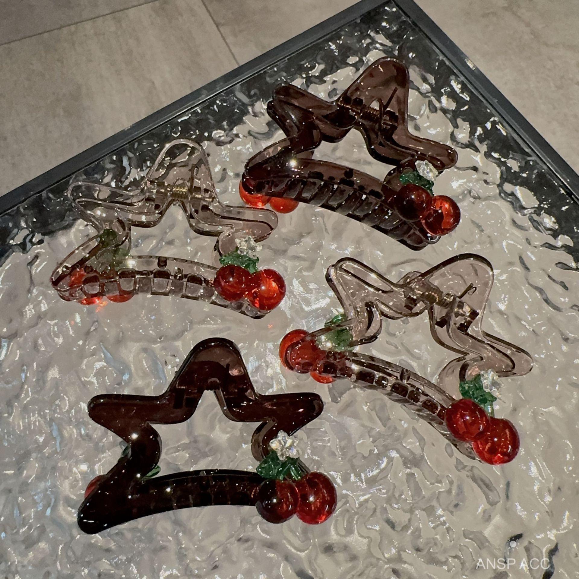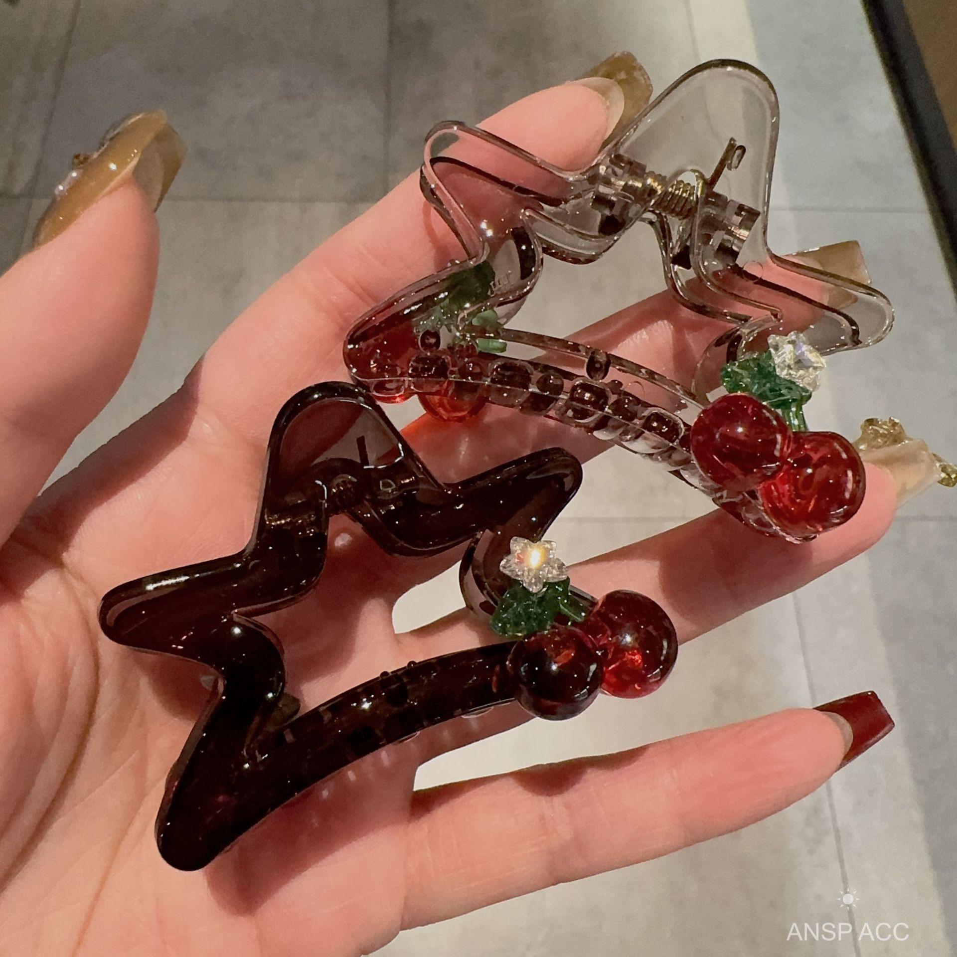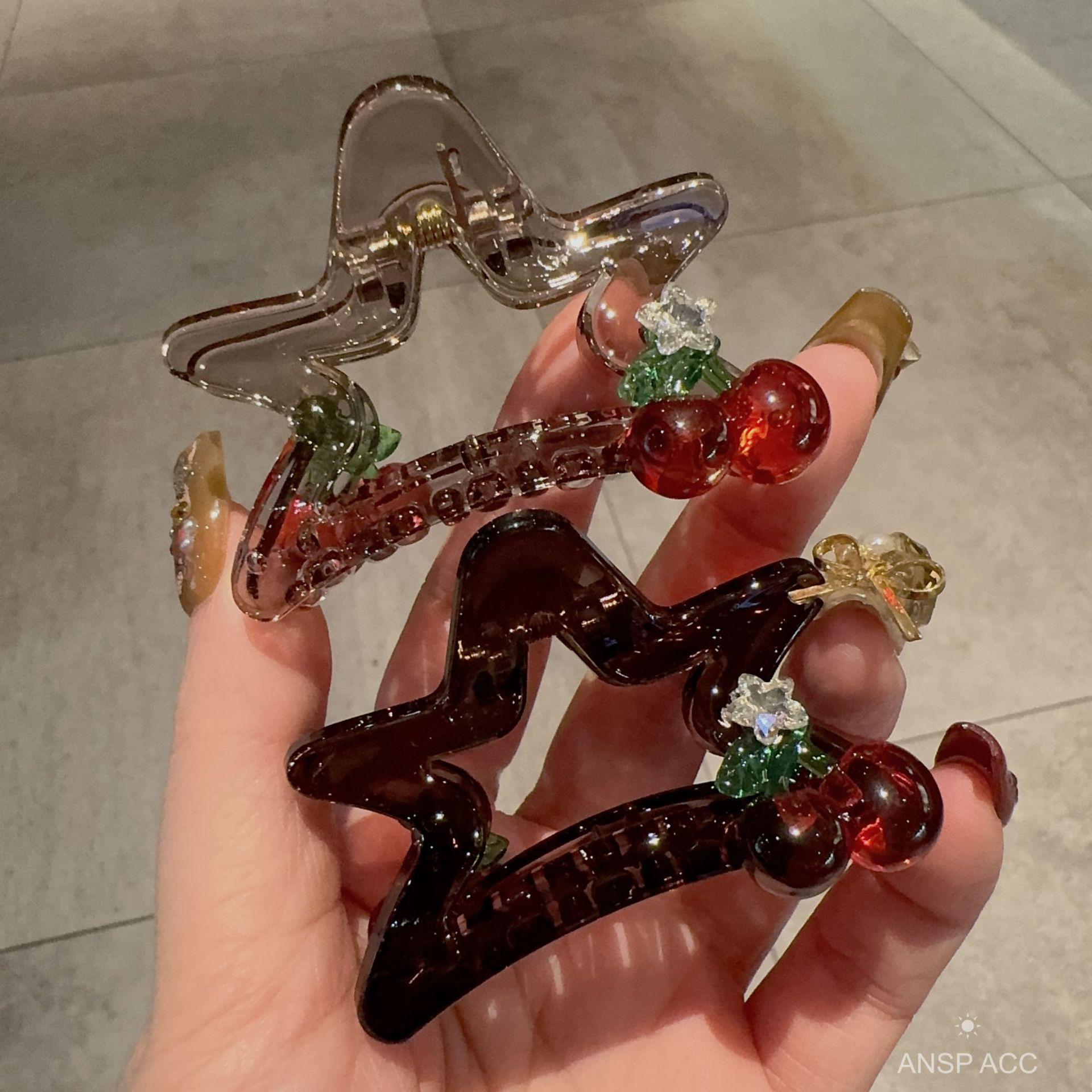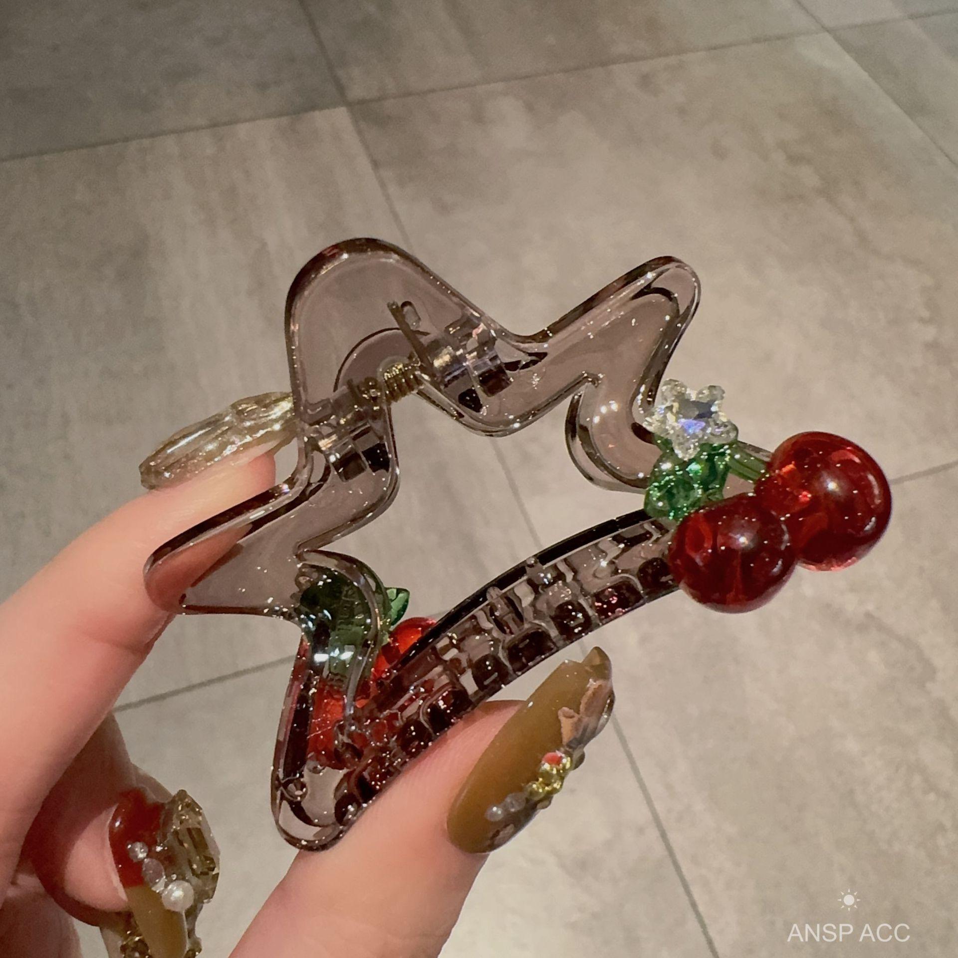 Nuevo Dulce y Lindo Niña Cereza Flash Diamante Estrella de Cinco Puntas Hueco Pinza de Agarre Parte Posterior de la Cabeza Pinza de Tiburón para el Cabello Accesorios para el Cabello para Mujeres