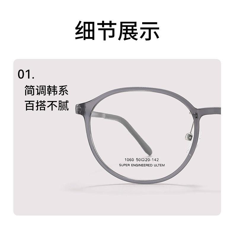 Versión coreana de gafas para miopía de acero plástico para mujer, sentido avanzado, gafas sencillas al por mayor, montura de gafas ultraligera para mujer, 1060 Danyang