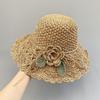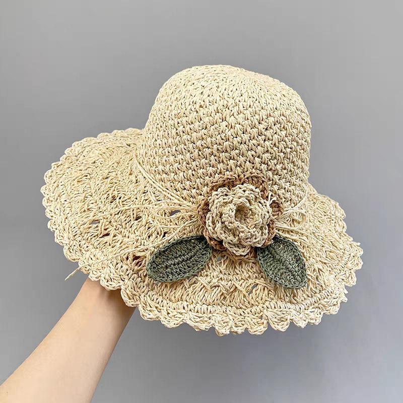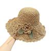 Sombrero de playa para mujer, primavera y verano, tejido a mano, sombrero de paja, sombrero de mujer a prueba de sol, sombrero plegable con flores a prueba de sol.