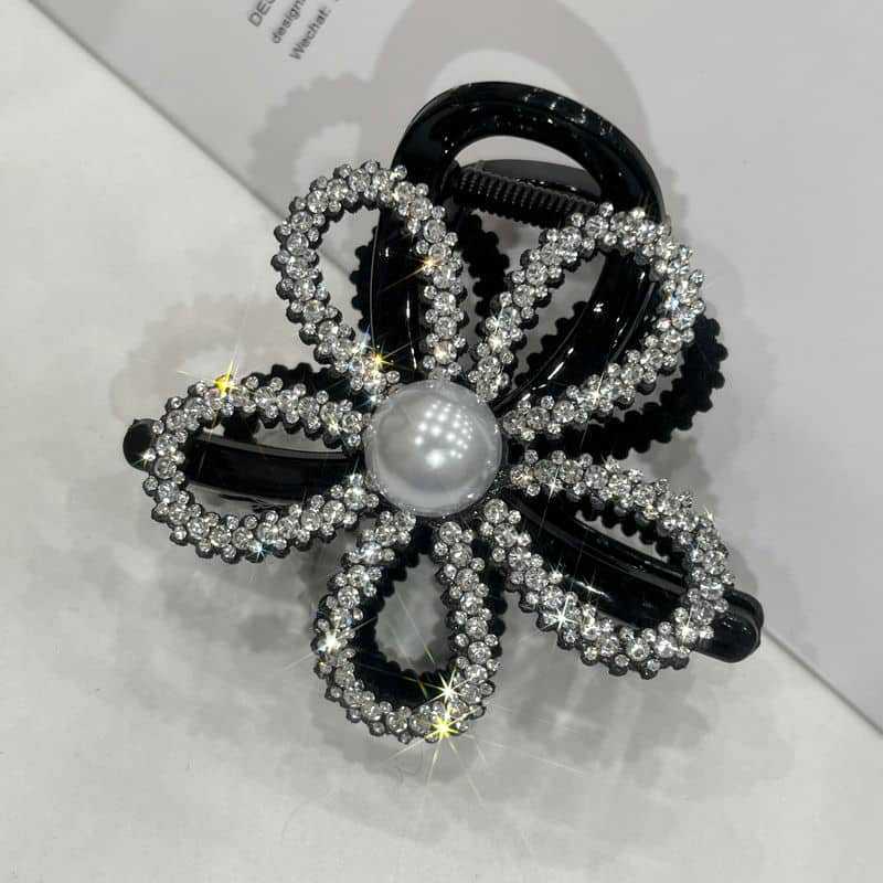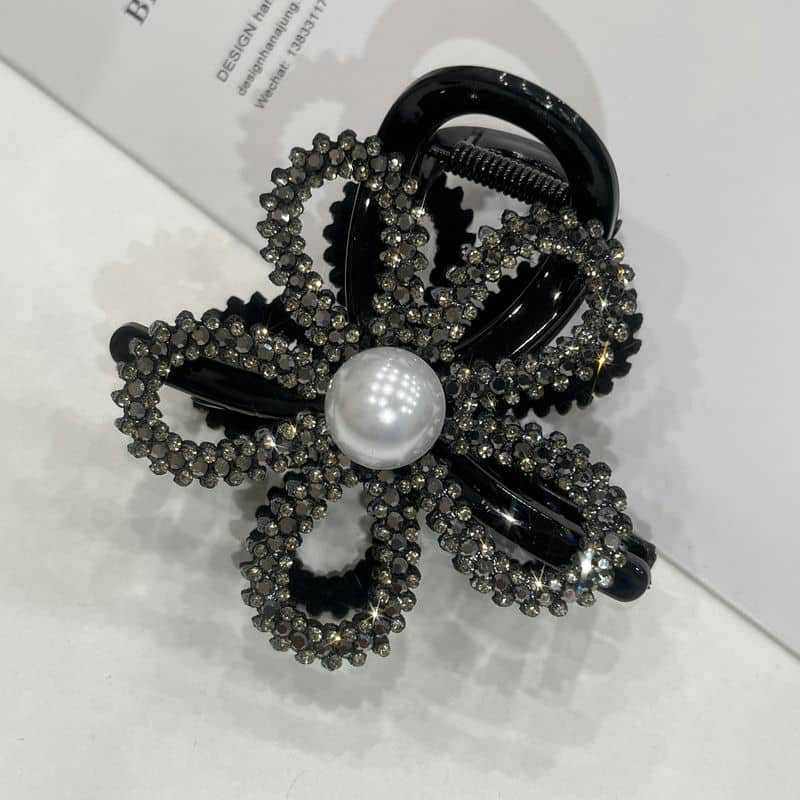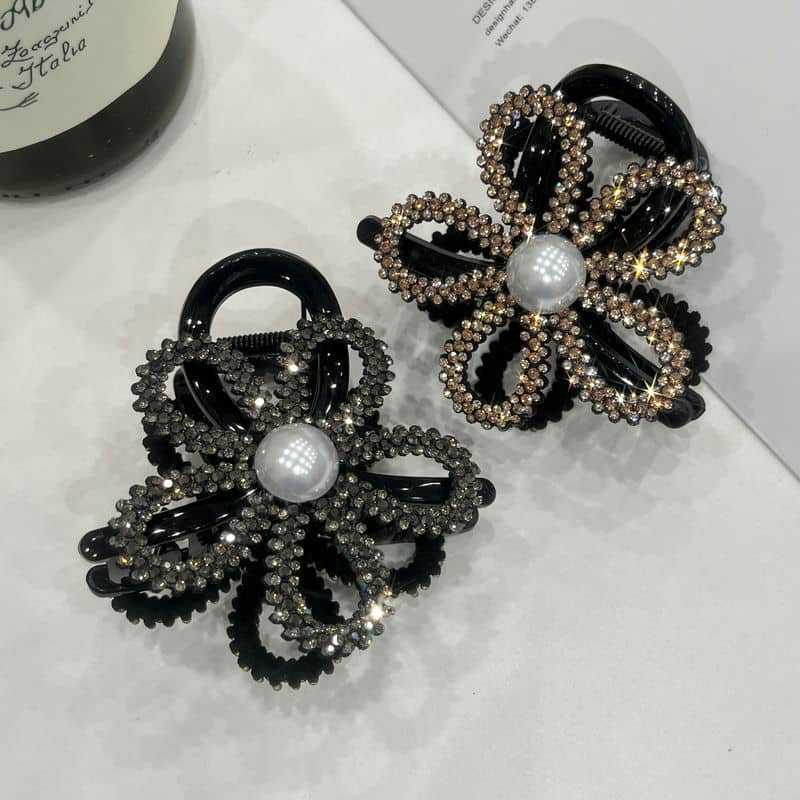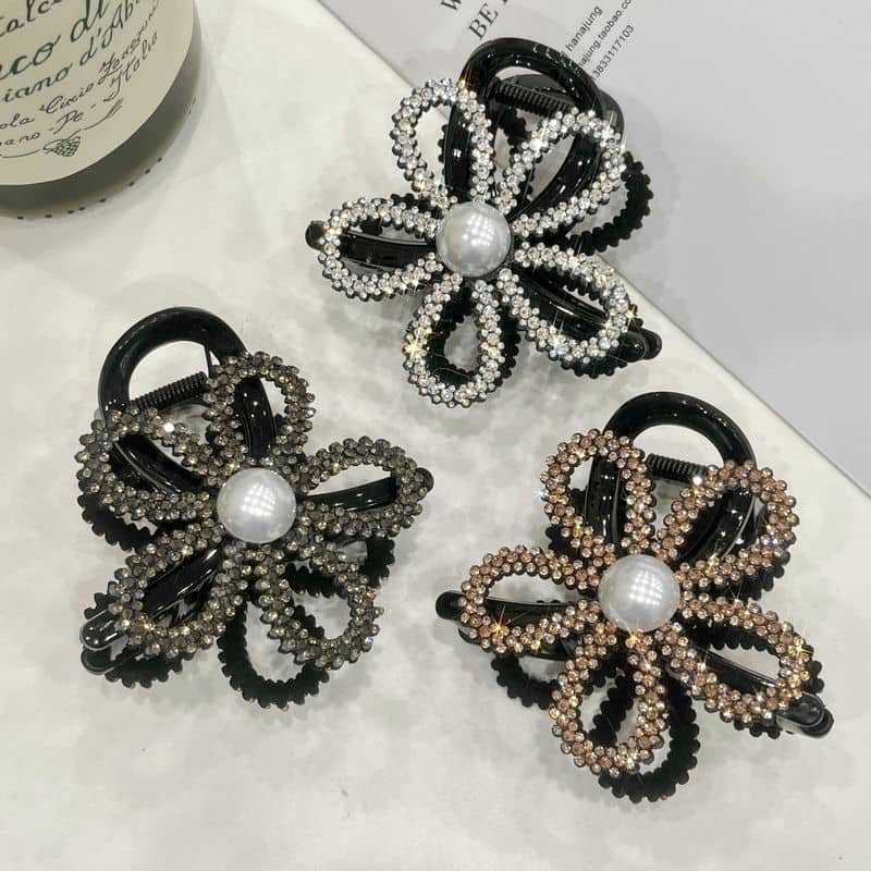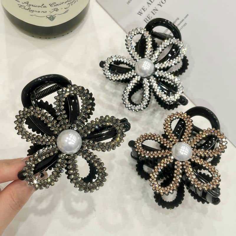 Clip de Flor Hueca con Diamantes Brillantes de Lujo Ligero de Verano de Estilo Coreano para la Parte Posterior de la Cabeza Clip de Tiburón Accesorio para el Cabello de Cola de Caballo Alta