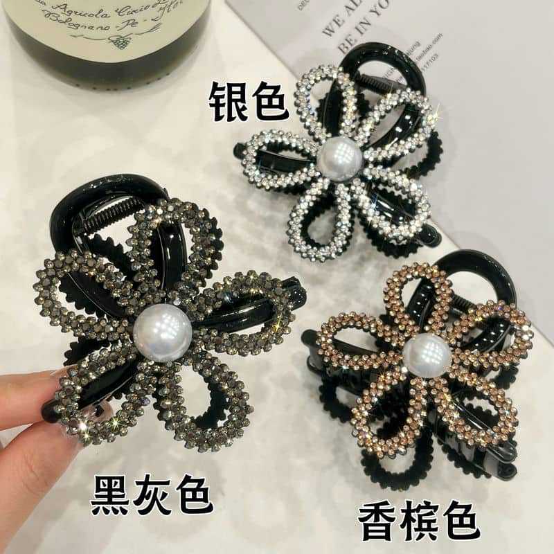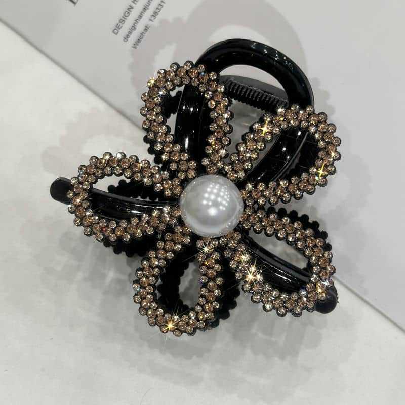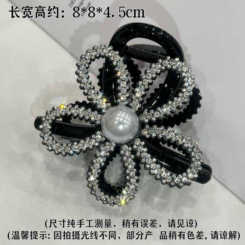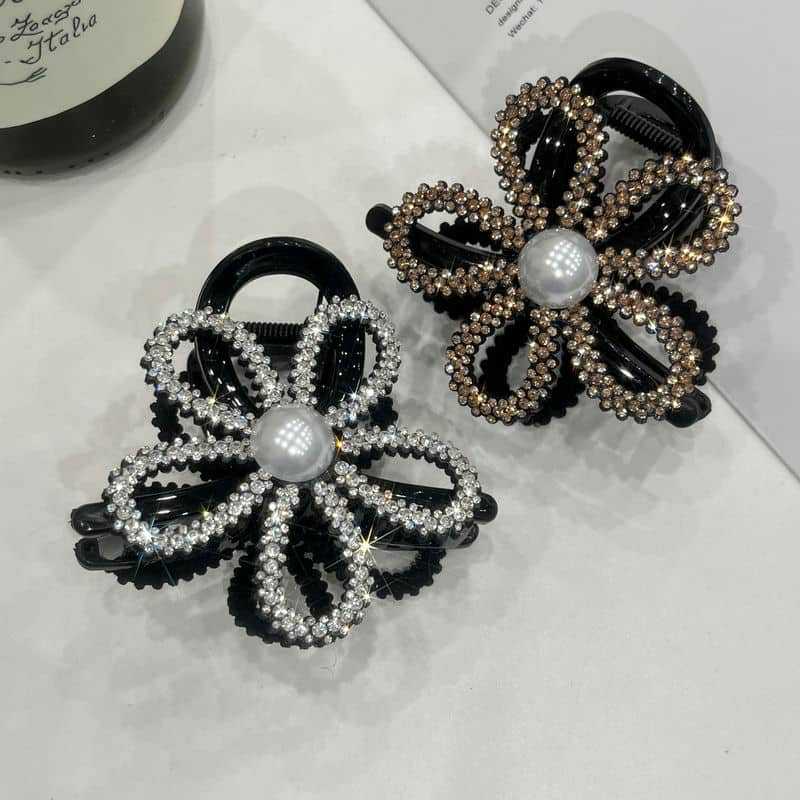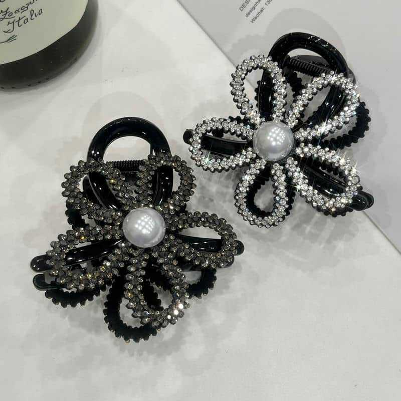 Clip de Flor Hueca con Diamantes Brillantes de Lujo Ligero de Verano de Estilo Coreano para la Parte Posterior de la Cabeza Clip de Tiburón Accesorio para el Cabello de Cola de Caballo Alta