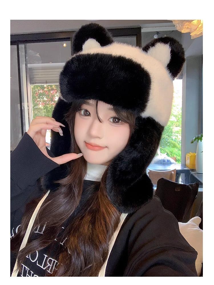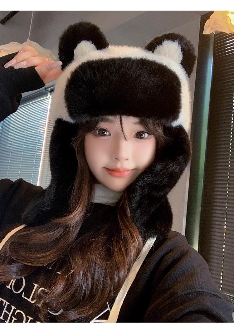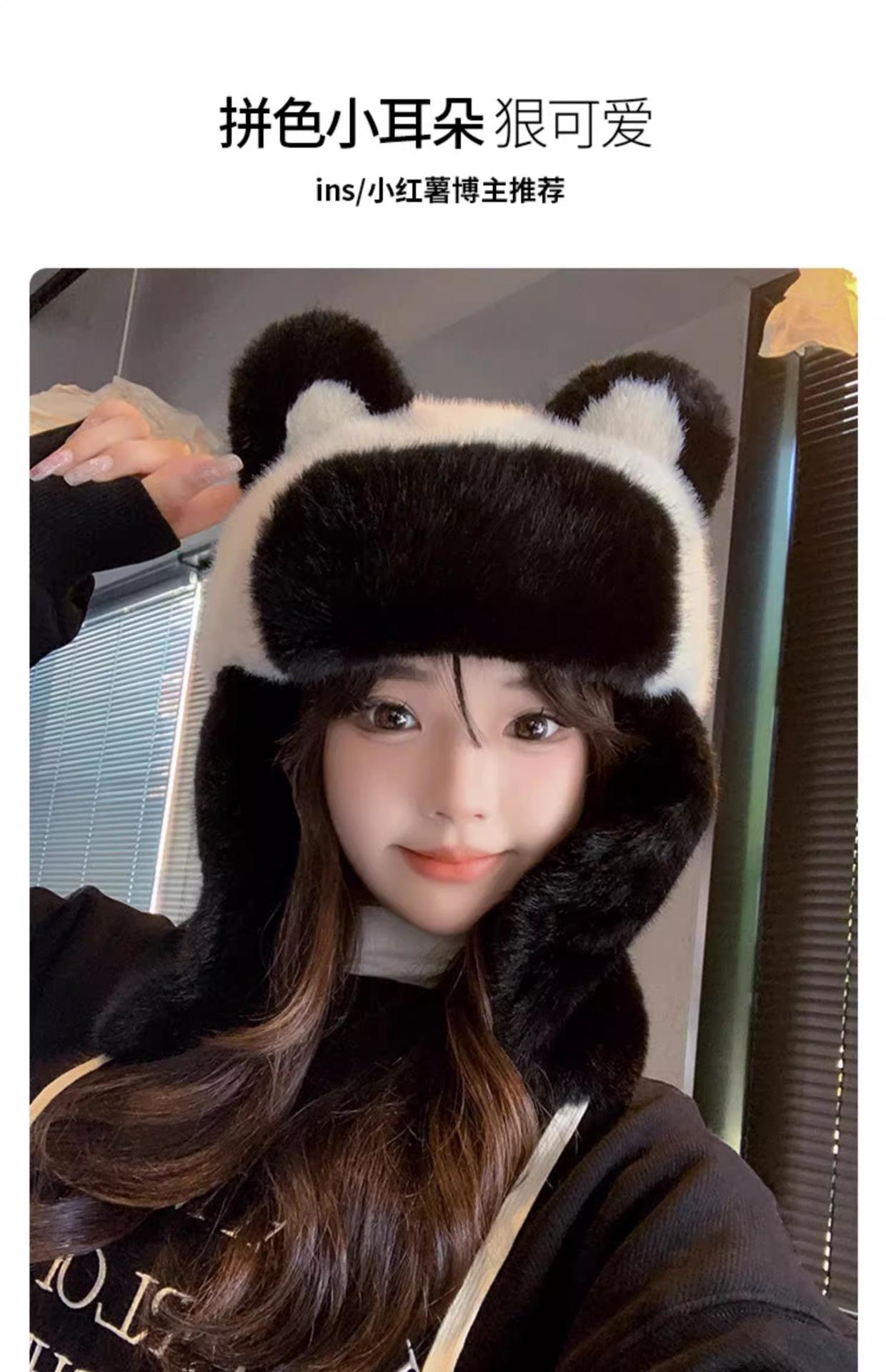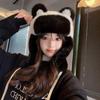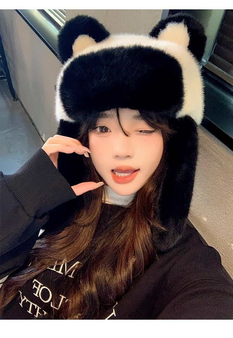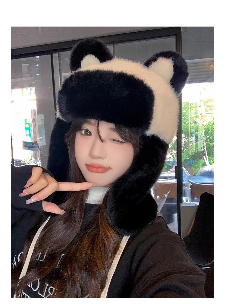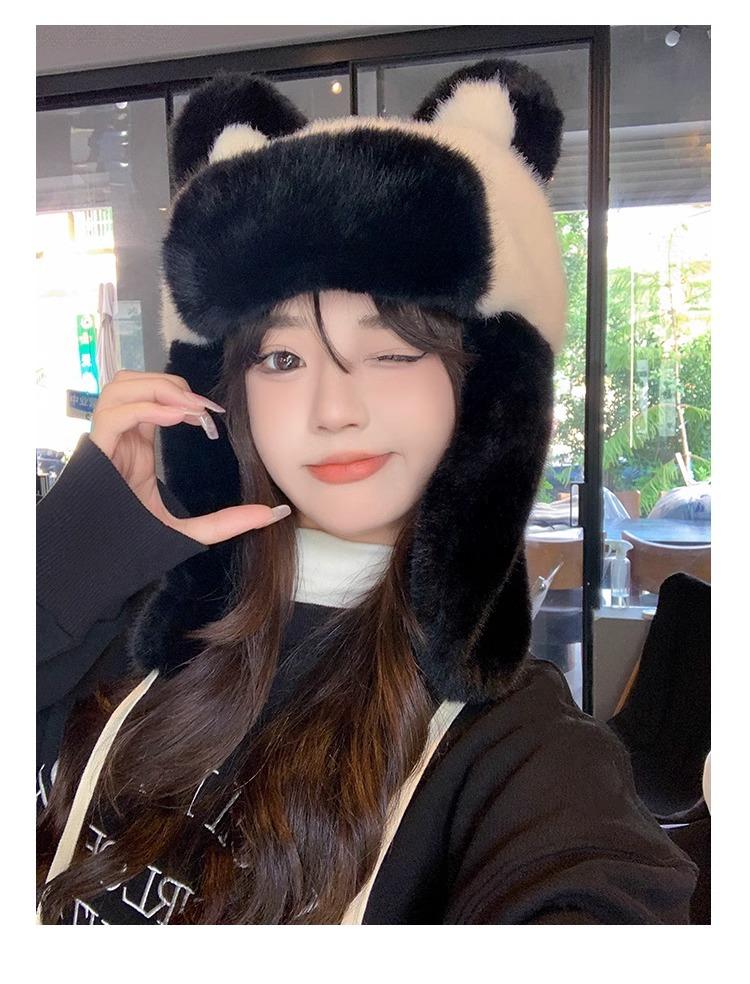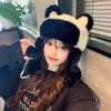 Sombrero lindo de Lei Feng de celebridad de Internet para mujer con terciopelo y engrosamiento, sombrero para protección de oídos a prueba de viento y frío para exteriores, sombrero de dibujos animados para ciclismo estilo K