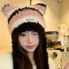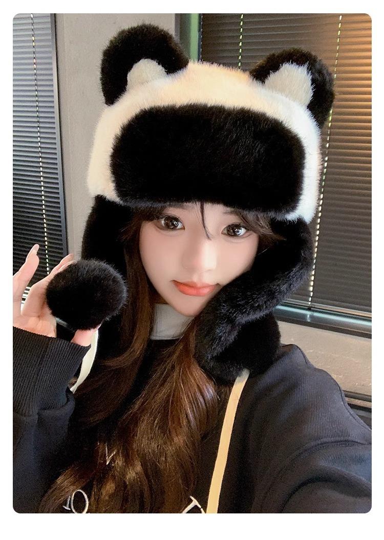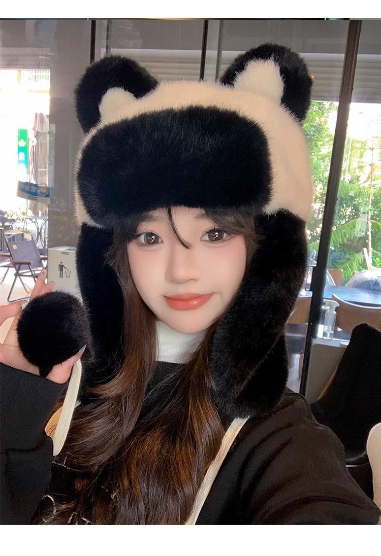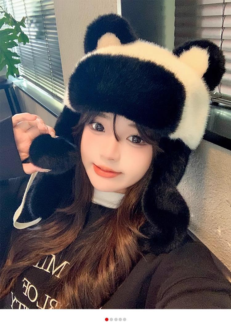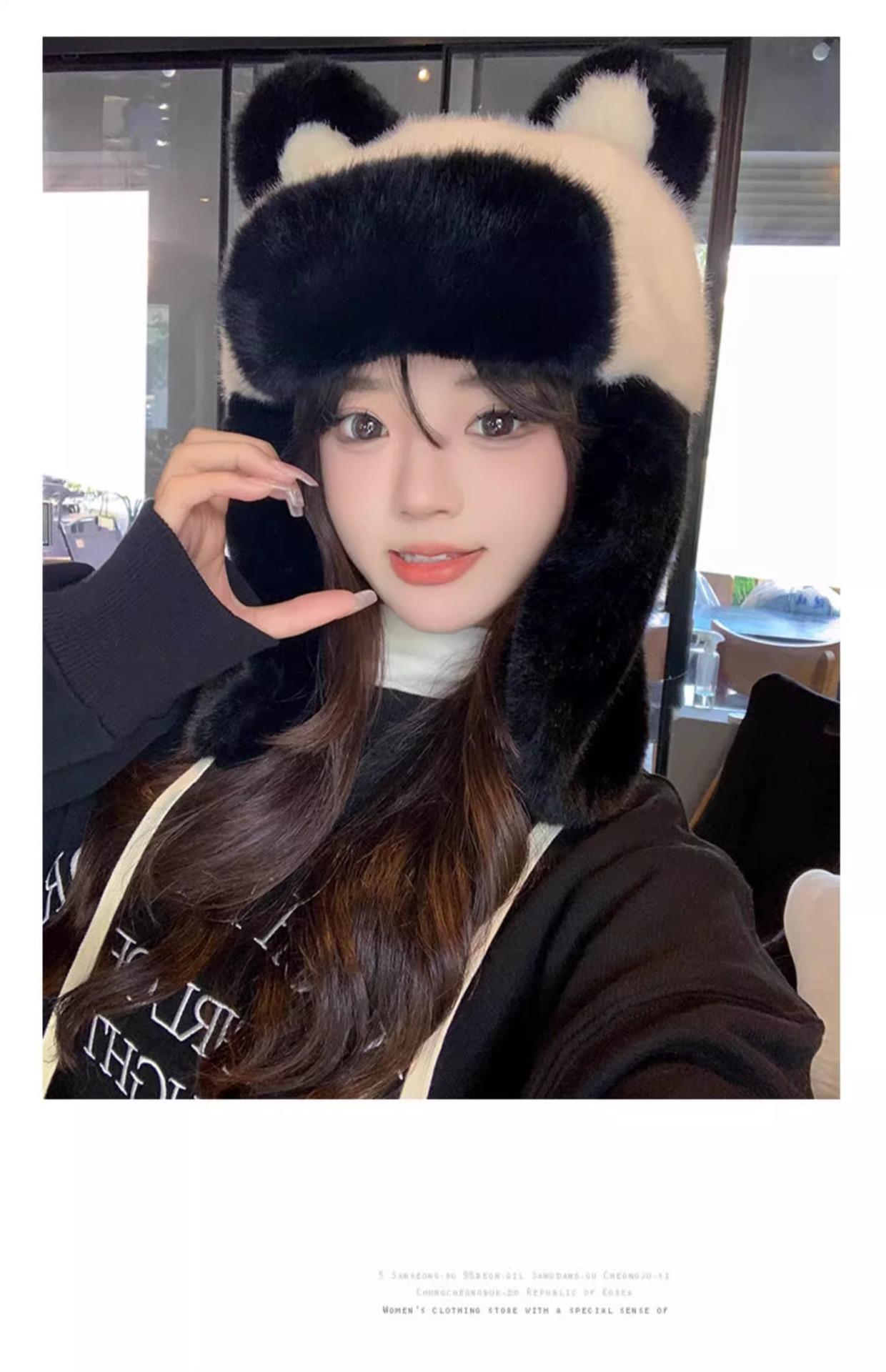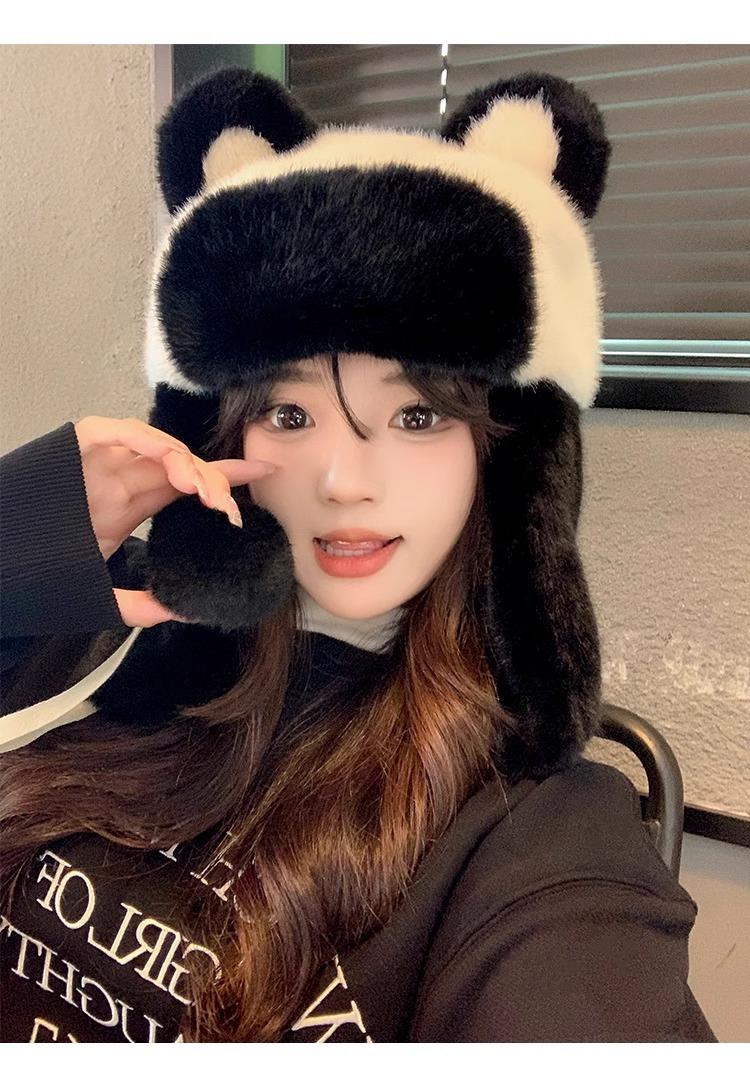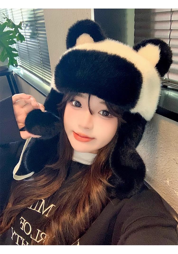 Sombrero lindo de Lei Feng de celebridad de Internet para mujer con terciopelo y engrosamiento, sombrero para protección de oídos a prueba de viento y frío para exteriores, sombrero de dibujos animados para ciclismo estilo K