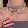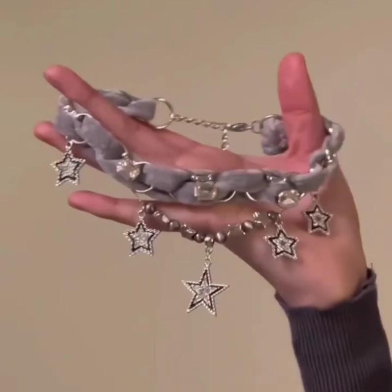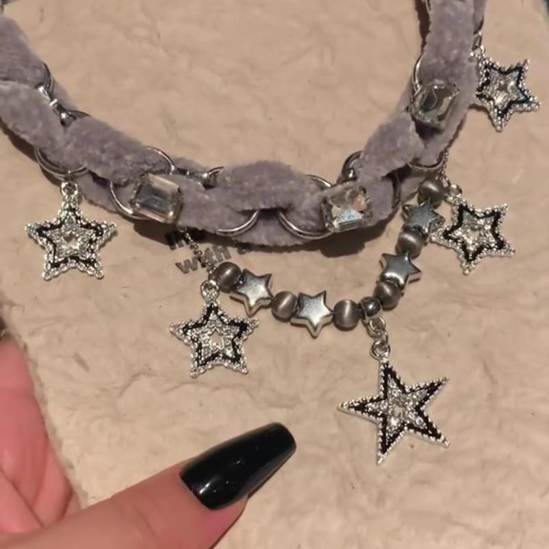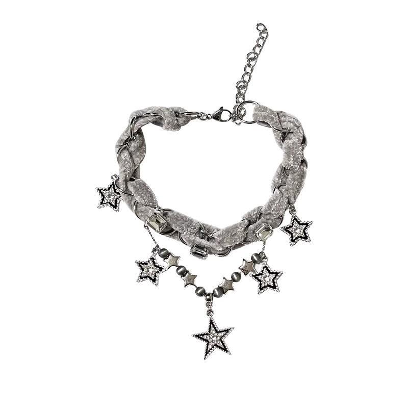 Nuevo collar gargantilla de felpa gris con colgante de estrella de nicho para mujer, accesorios para el cuello, collar de clavícula