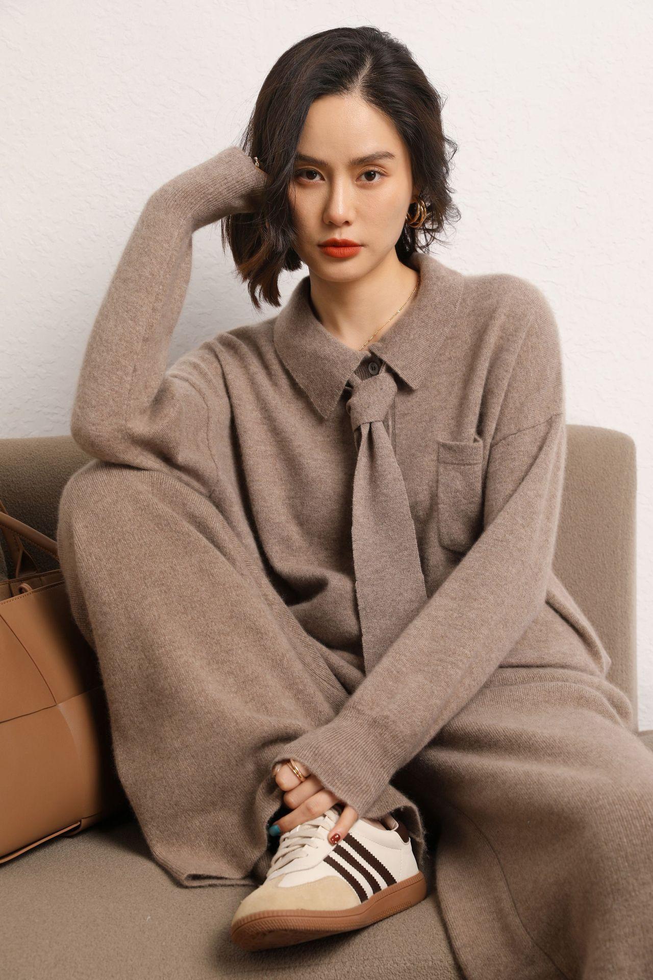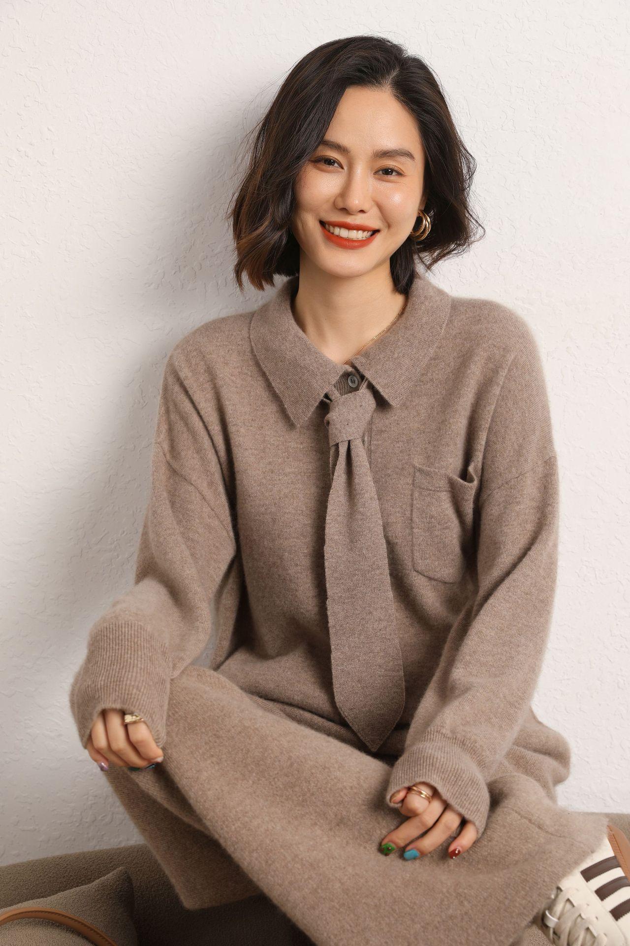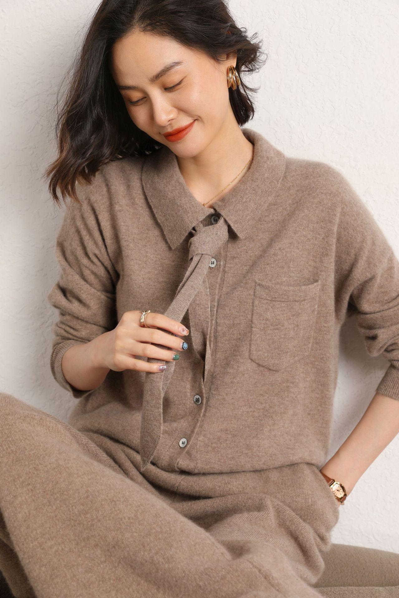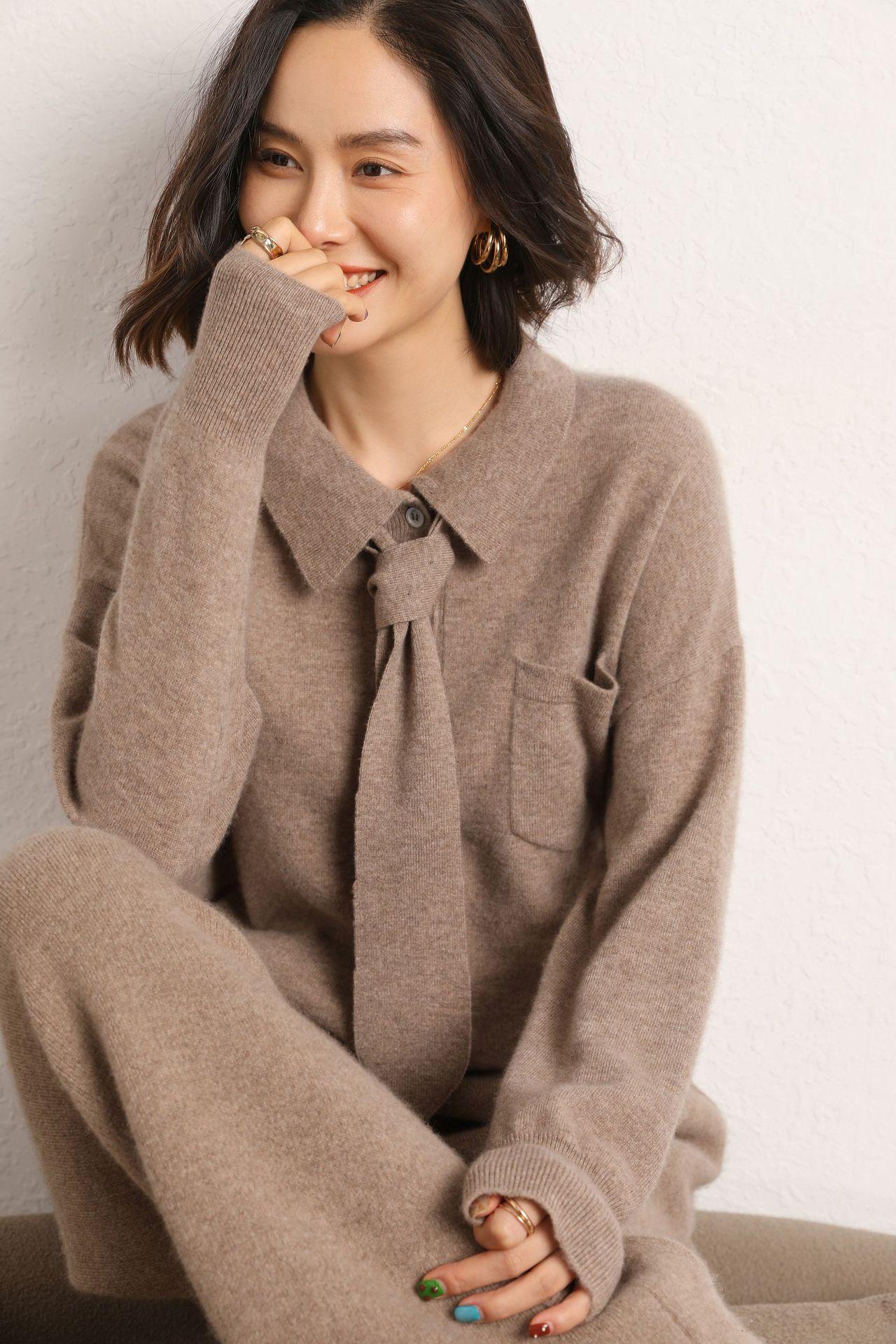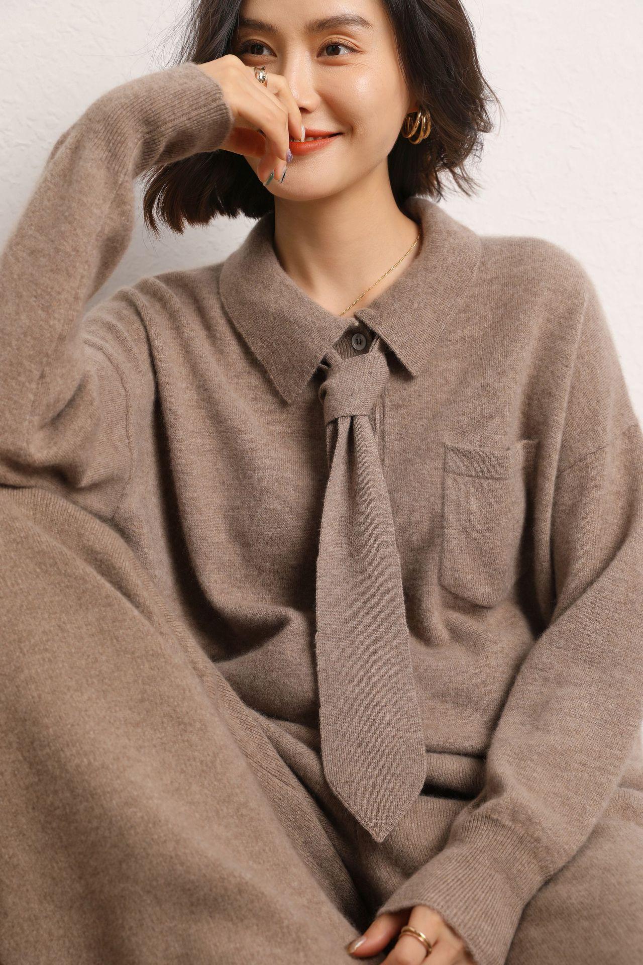 Cachemira 2025 Otoño e Invierno Nuevo Polo de Mujer Ropa Accesorios Corbata Decorativa Lazo Suéter para Fondo