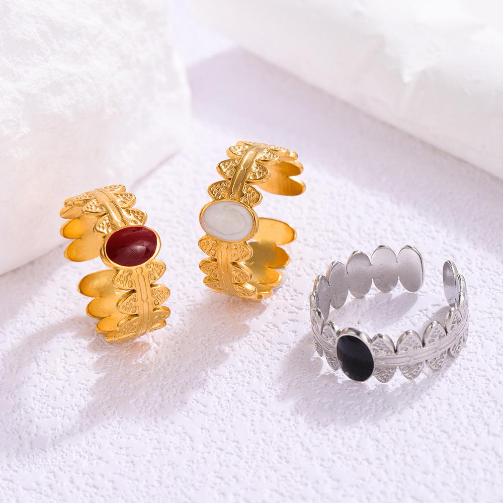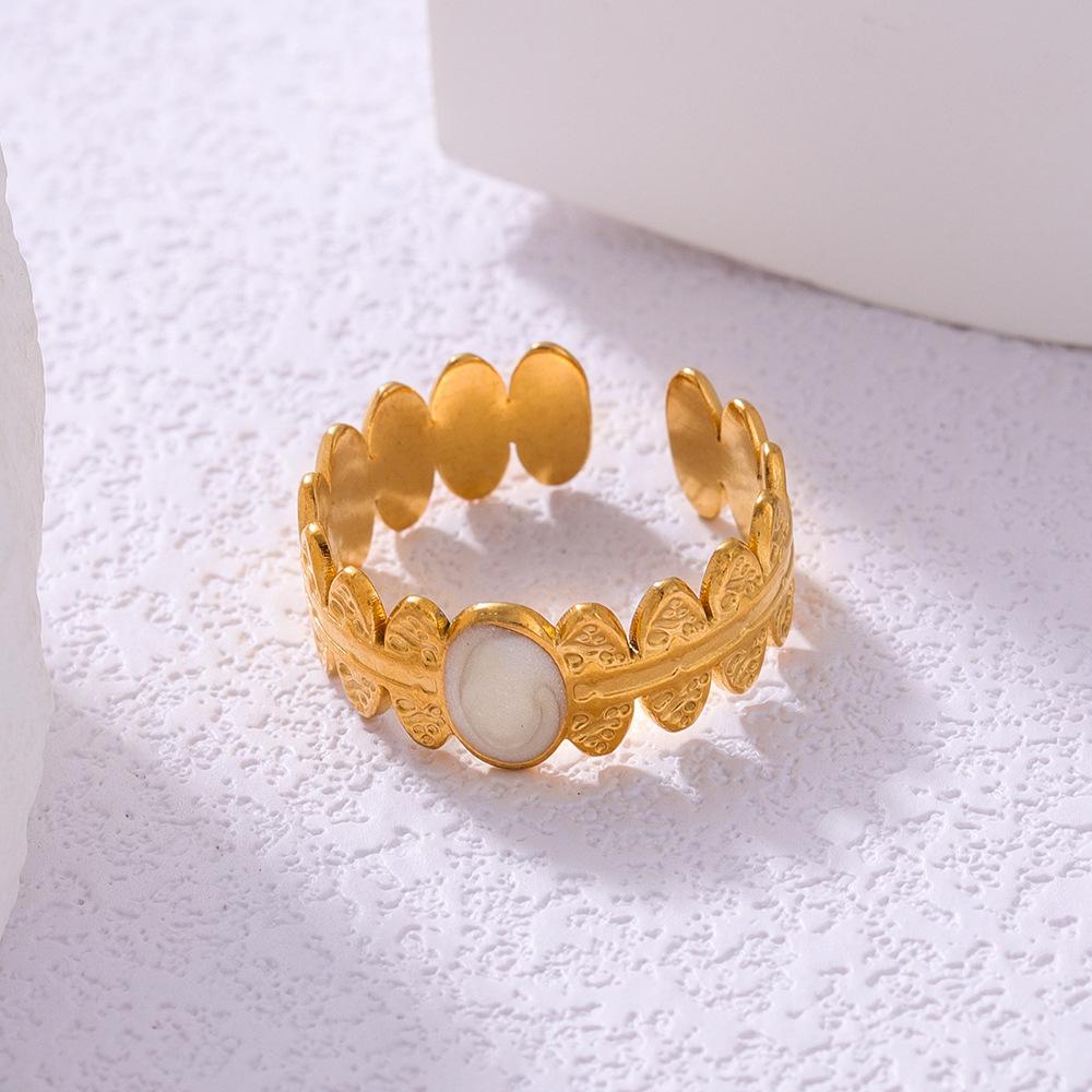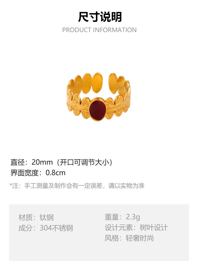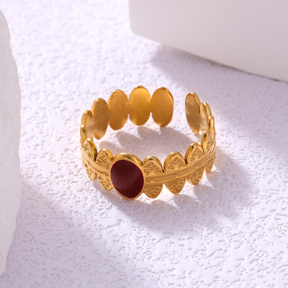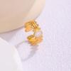 Anillo abierto de acero de titanio con diseño de hoja retro de lujo francés ligero para mujer, chapado en oro de 18 quilates, temperamento Joker, anillo de acero inoxidable al por mayor