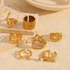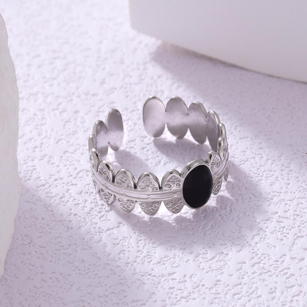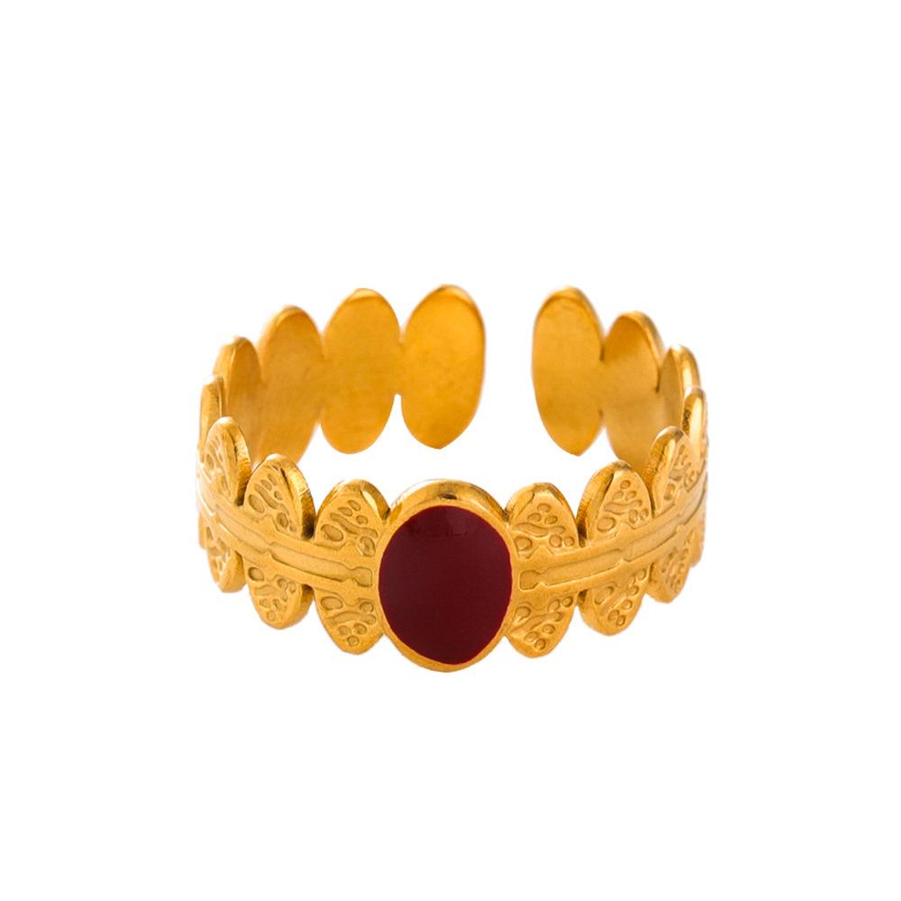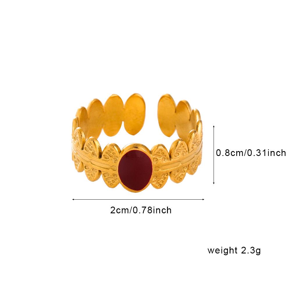 Anillo abierto de acero de titanio con diseño de hoja retro de lujo francés ligero para mujer, chapado en oro de 18 quilates, temperamento Joker, anillo de acero inoxidable al por mayor
