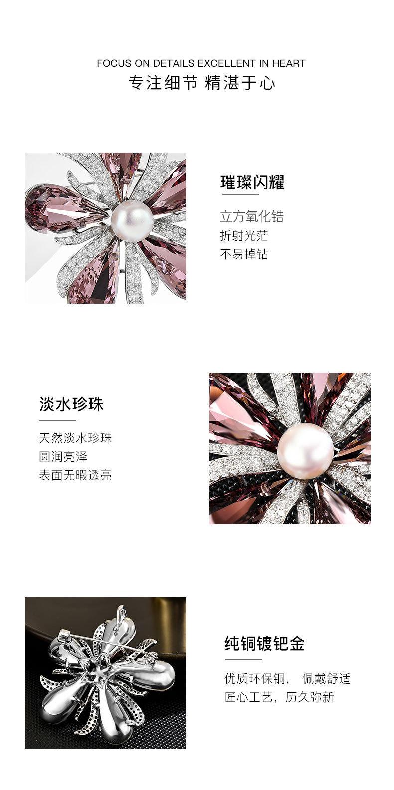 Broche de Flor de Moda de Lujo Ligero Exquisito de Alta Gama Perla de Agua Dulce Planta Flor Corsage Pin Antideslizante Accesorios