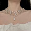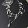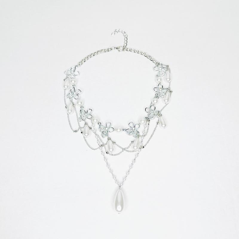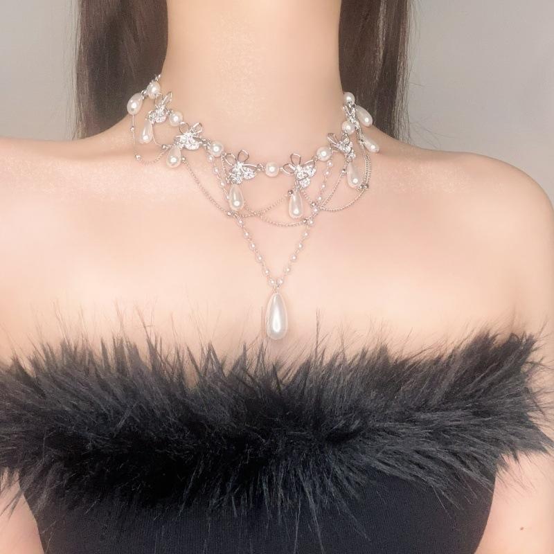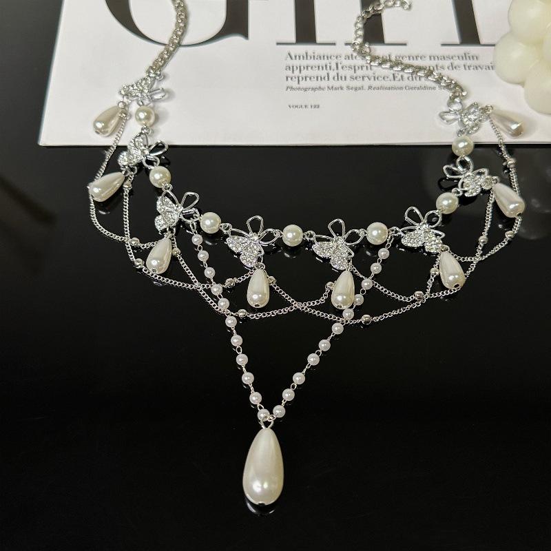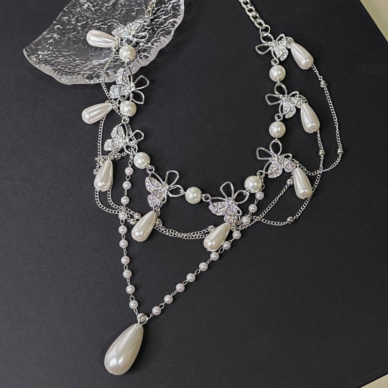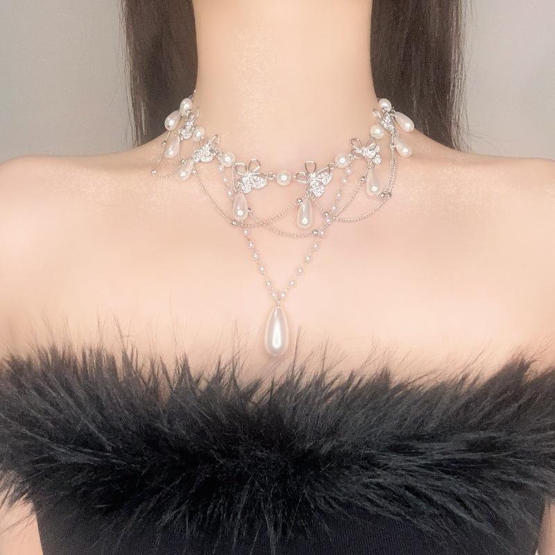 Collar elegante de alta calidad con borlas de perlas y mariposas con diamantes de imitación para damas de la alta sociedad, de lujo y ligero.