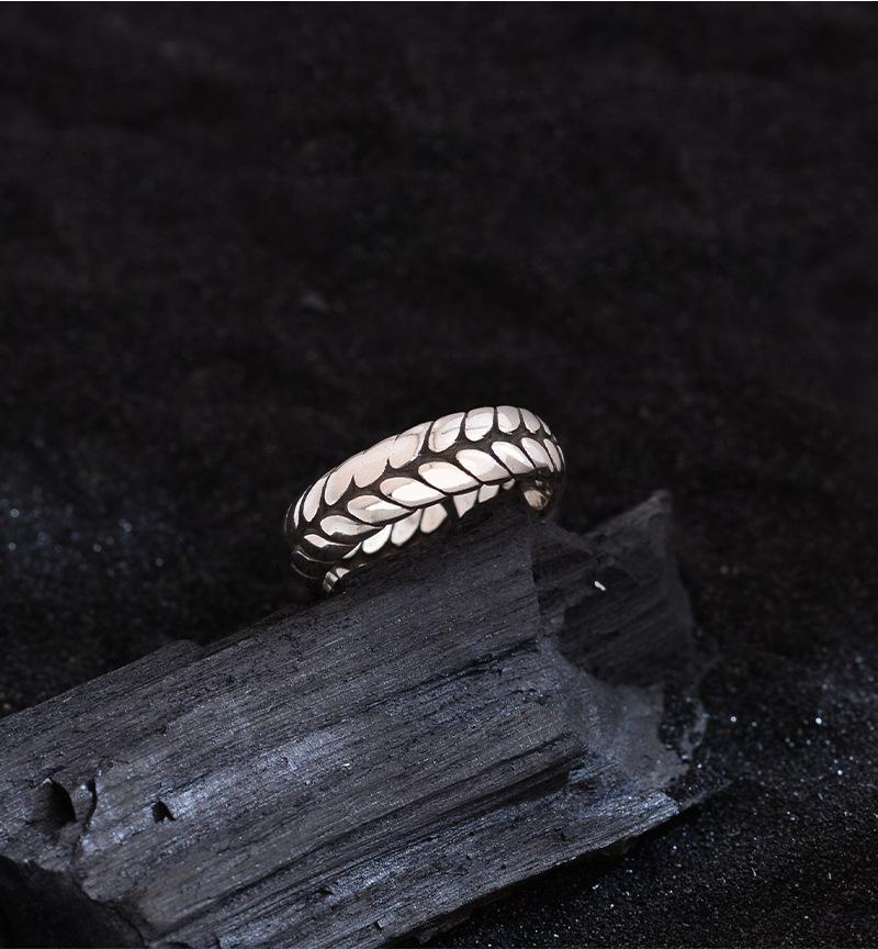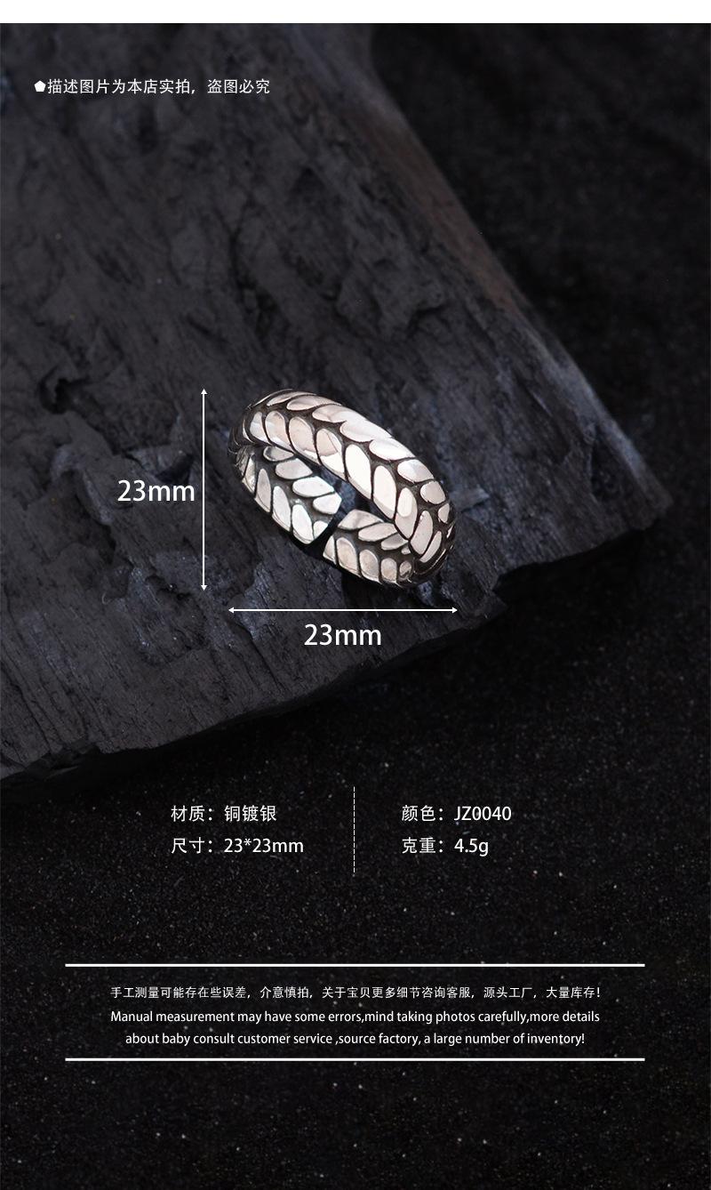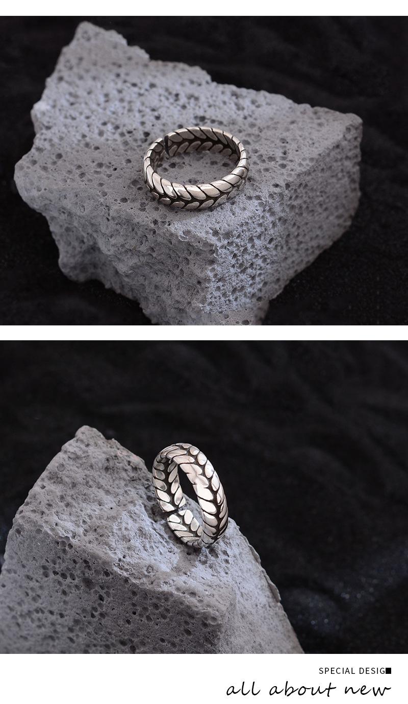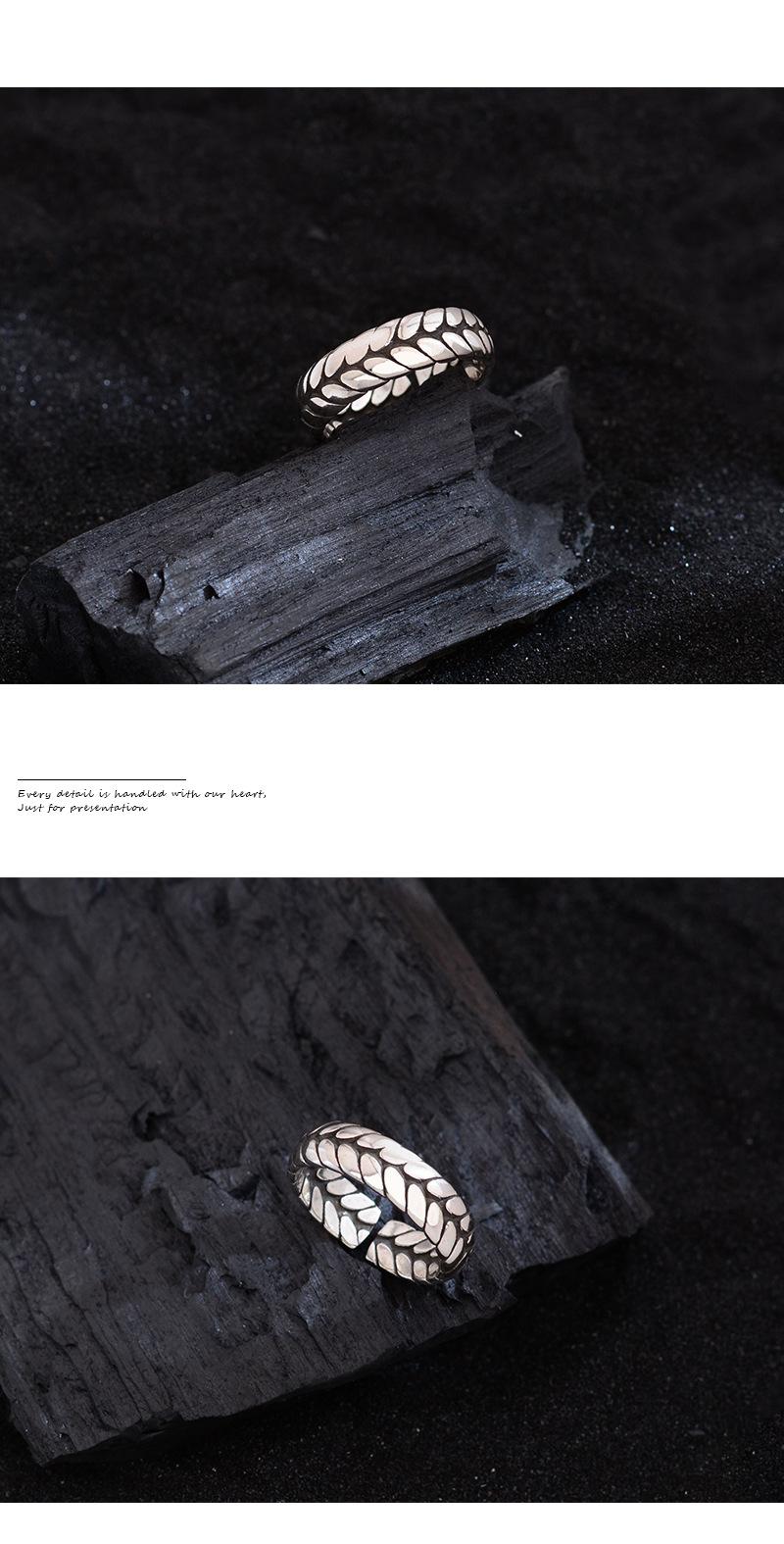 Anillo de apertura con giro de viento frío para mujer, estilo retro europeo y americano, de alta gama, con orejas de trigo simples y cadena que combina con todo.