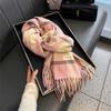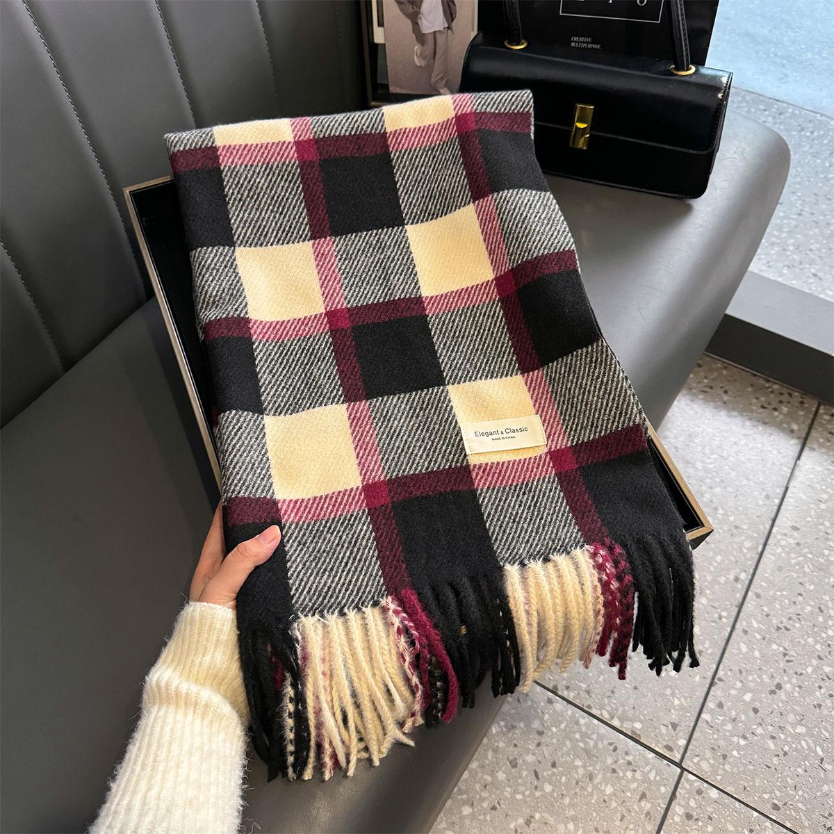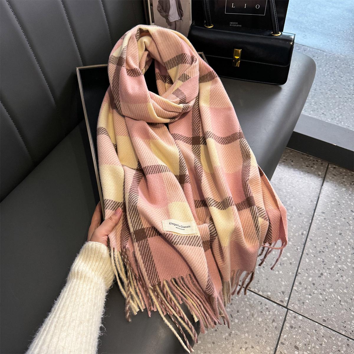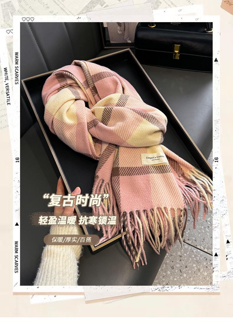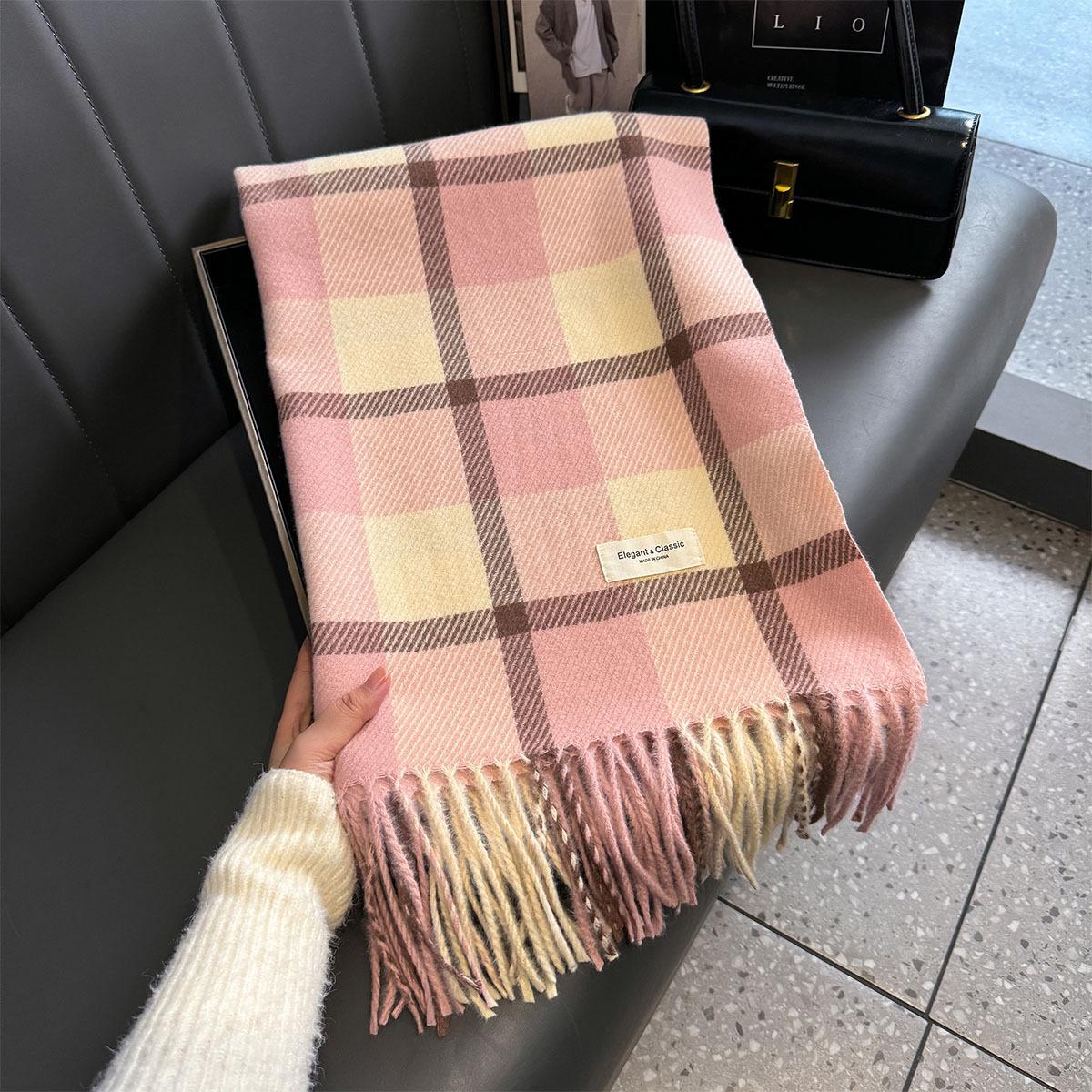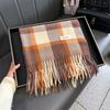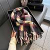 Bufanda de cuadros a juego de colores nuevos 2024 para mujer, otoño e invierno, estilo coreano, moda versátil, larga con flecos, cálida, bufanda de estudiante