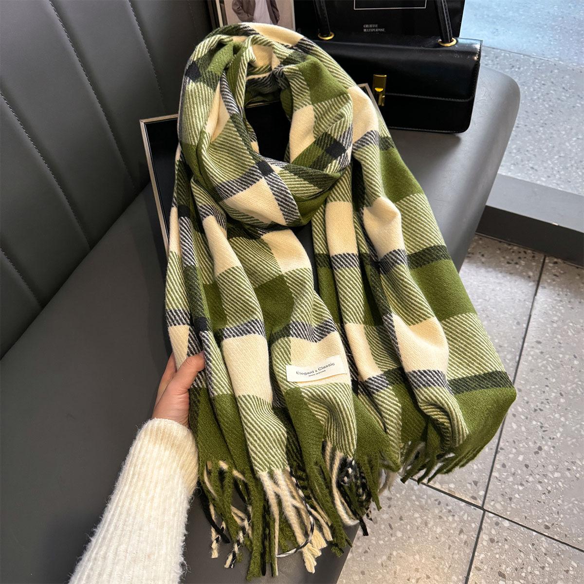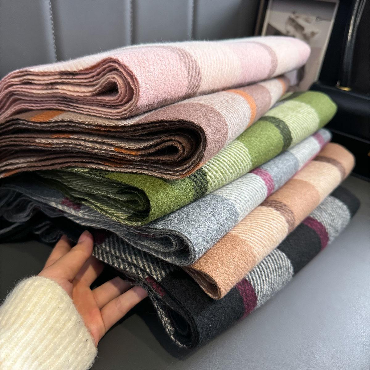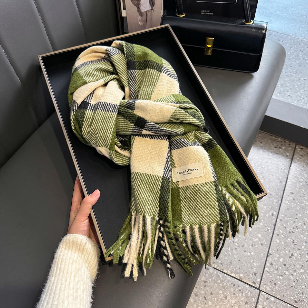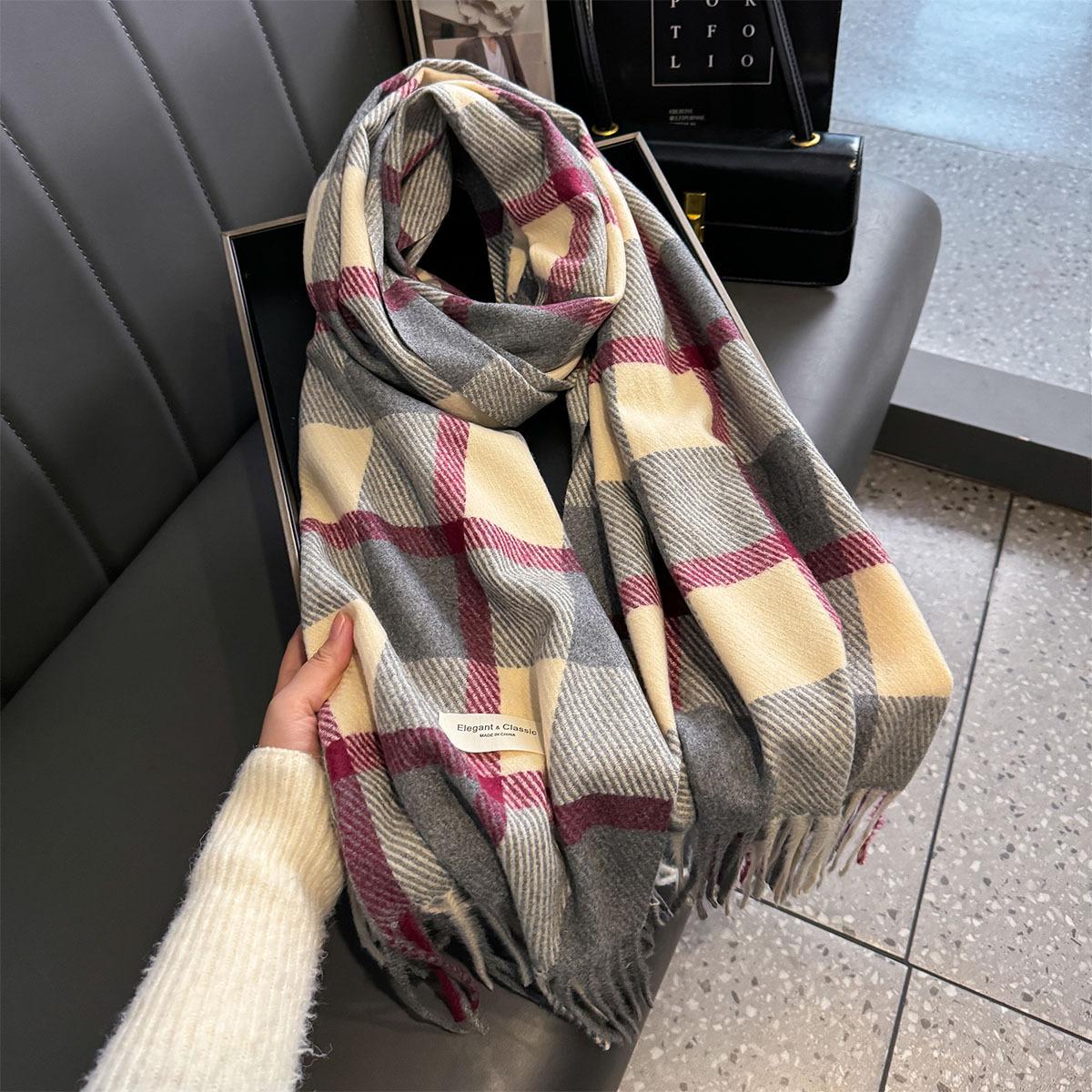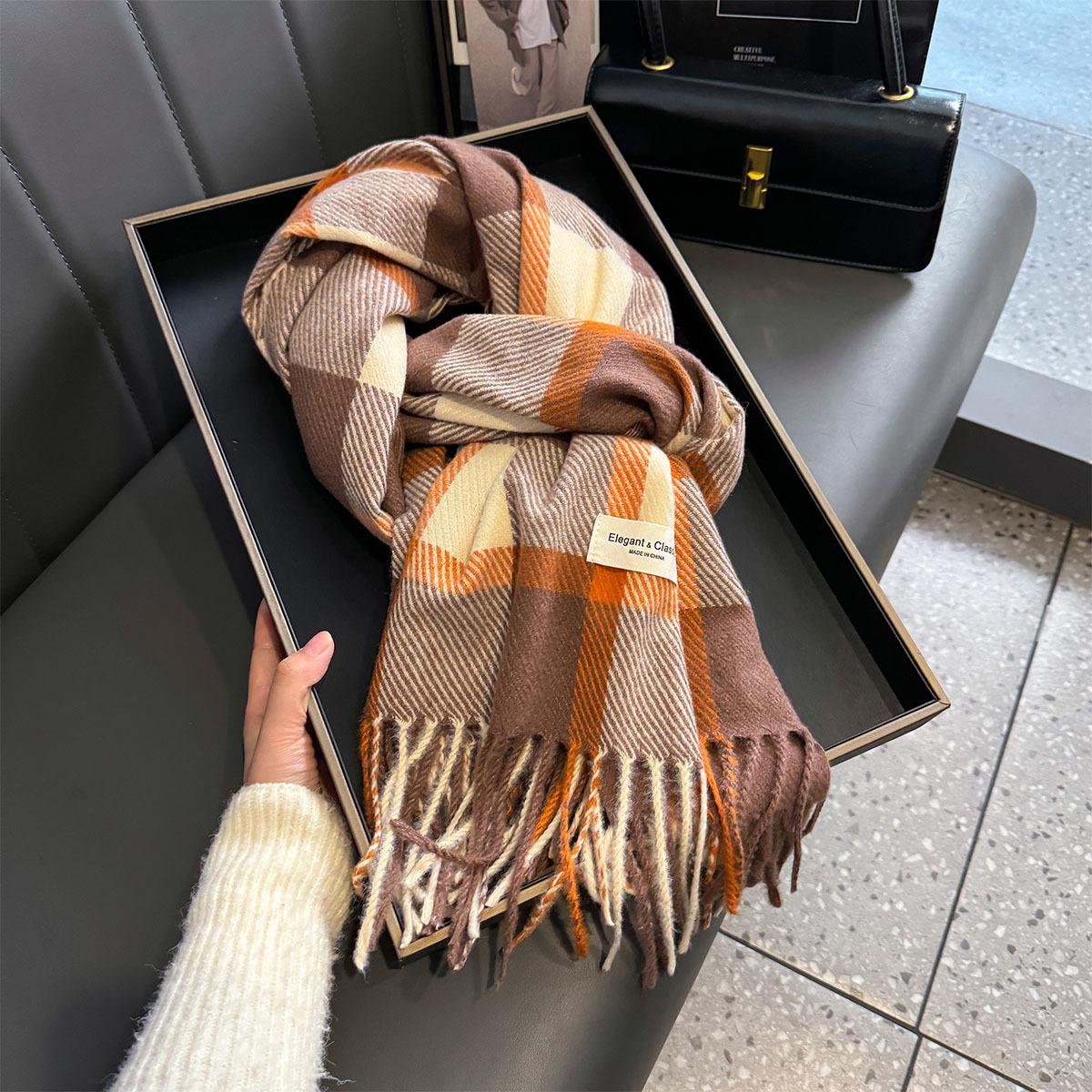 Bufanda de cuadros a juego de colores nuevos 2024 para mujer, otoño e invierno, estilo coreano, moda versátil, larga con flecos, cálida, bufanda de estudiante
