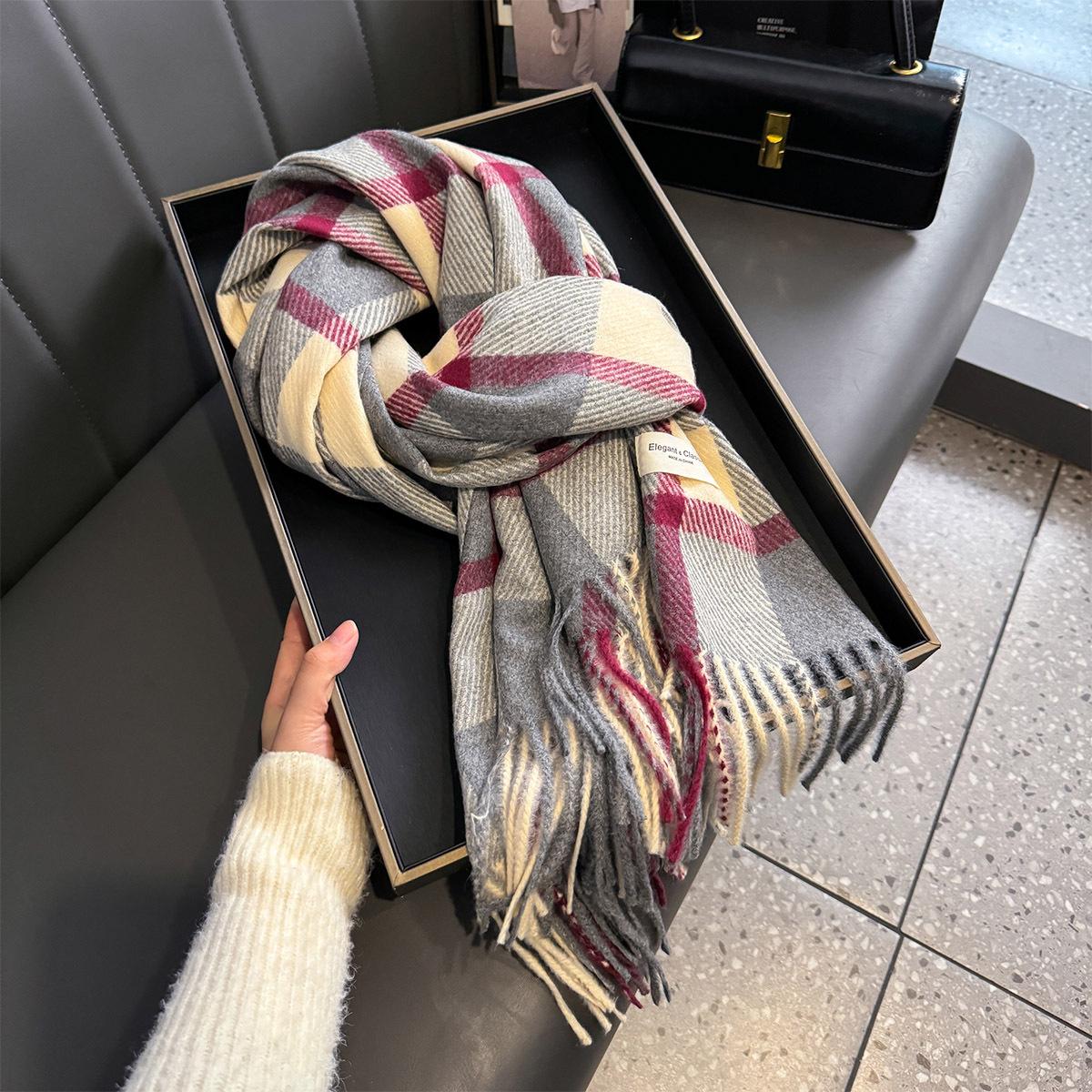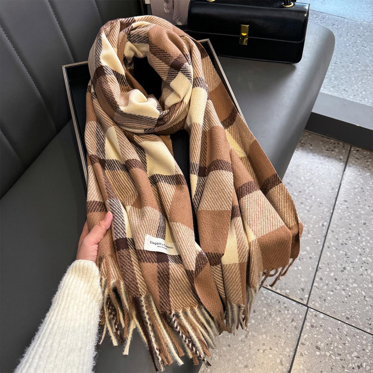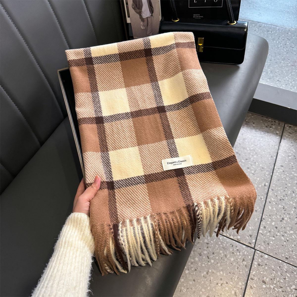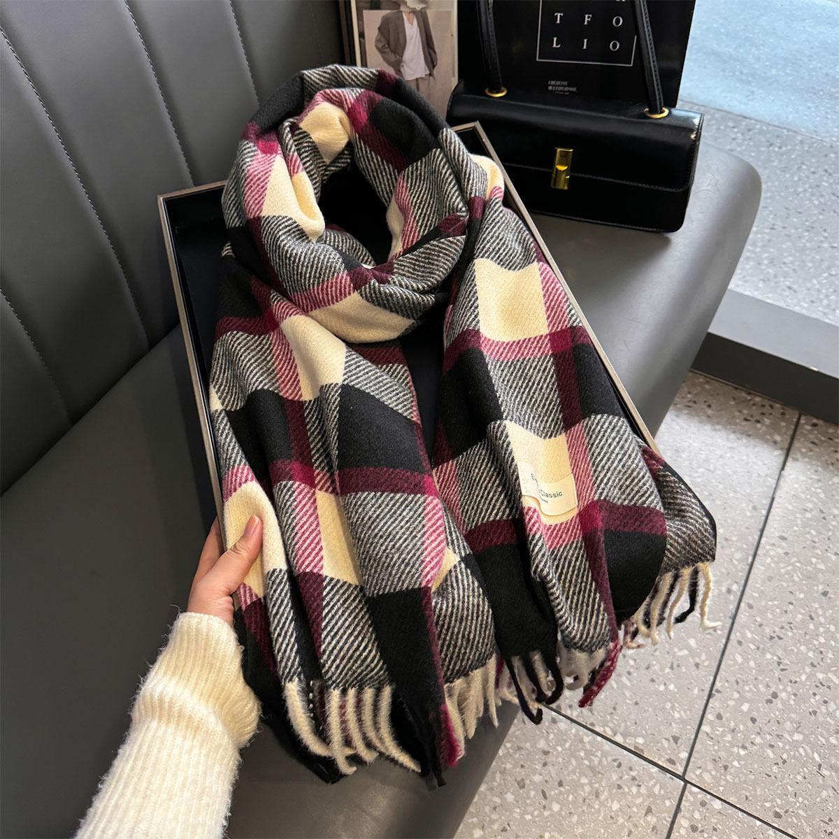 Bufanda de cuadros a juego de colores nuevos 2024 para mujer, otoño e invierno, estilo coreano, moda versátil, larga con flecos, cálida, bufanda de estudiante