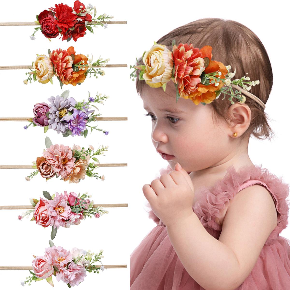 Banda para el cabello para niños, superventas en Amazon, accesorios para el cabello con foto para bebés, diadema de moda para niños, diadema de flores de simulación para bebés.