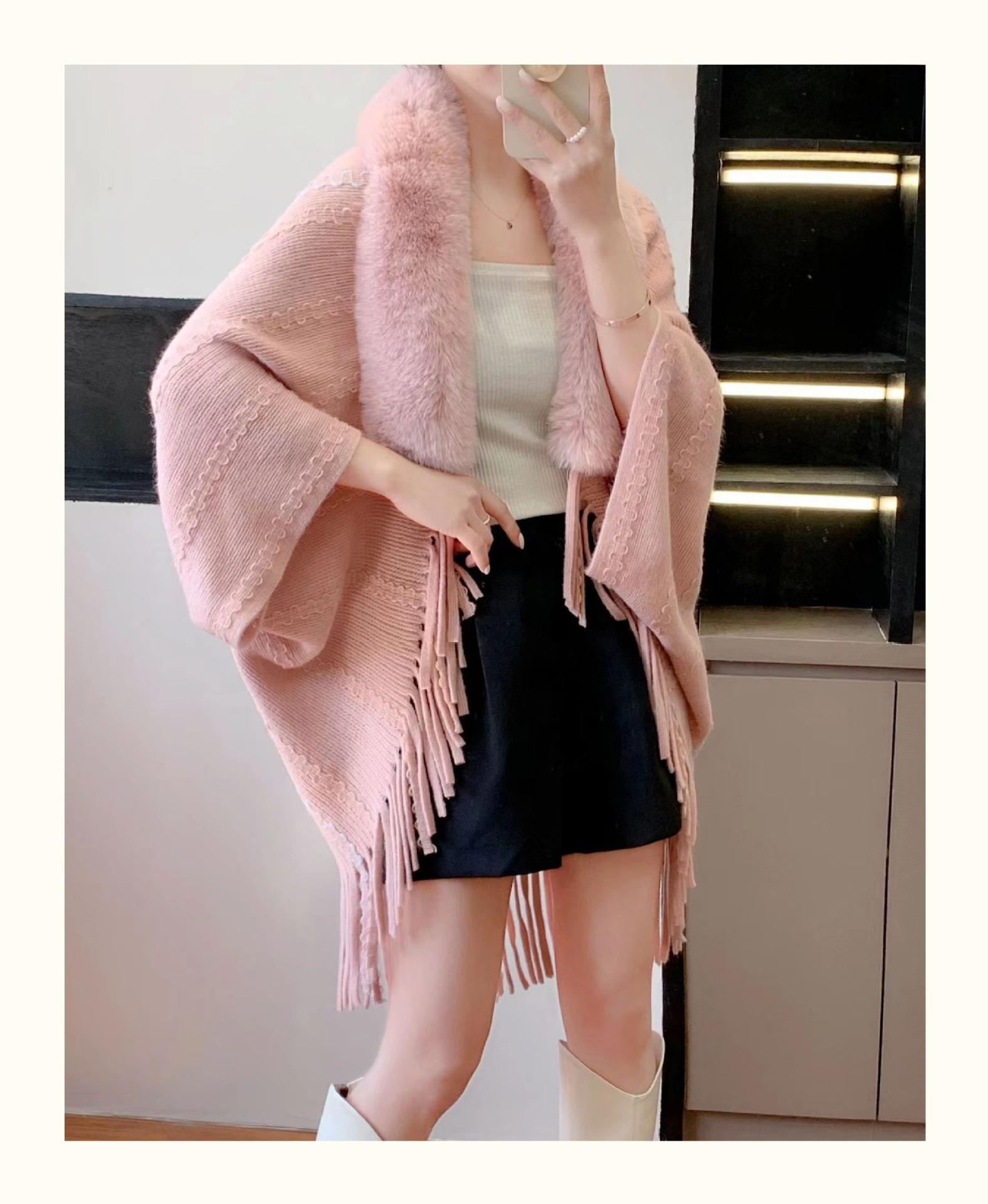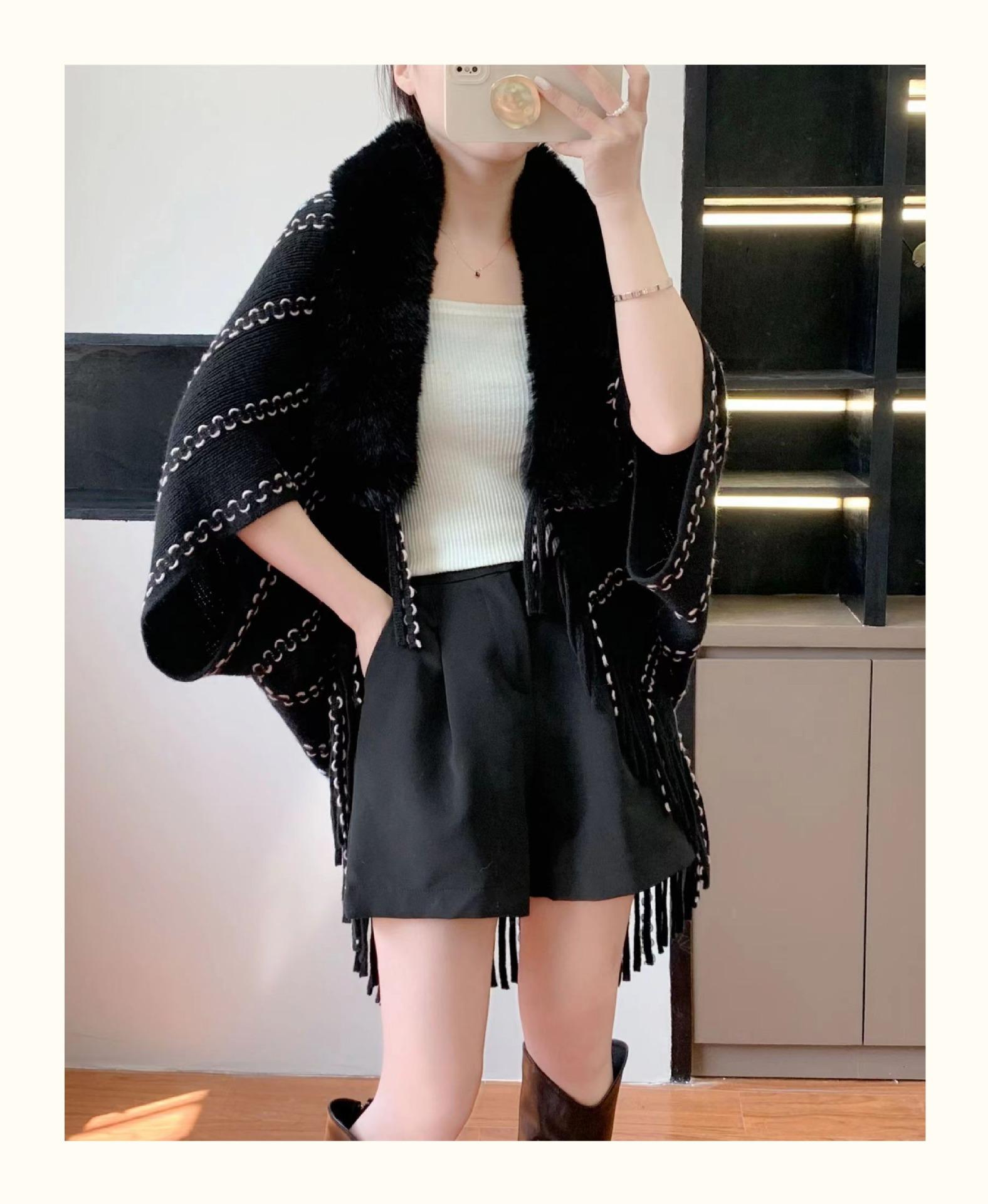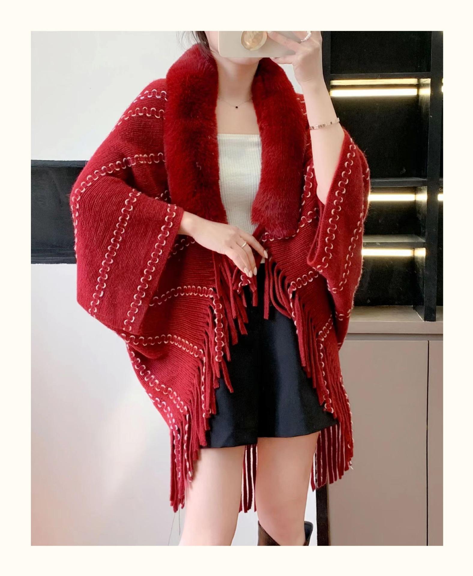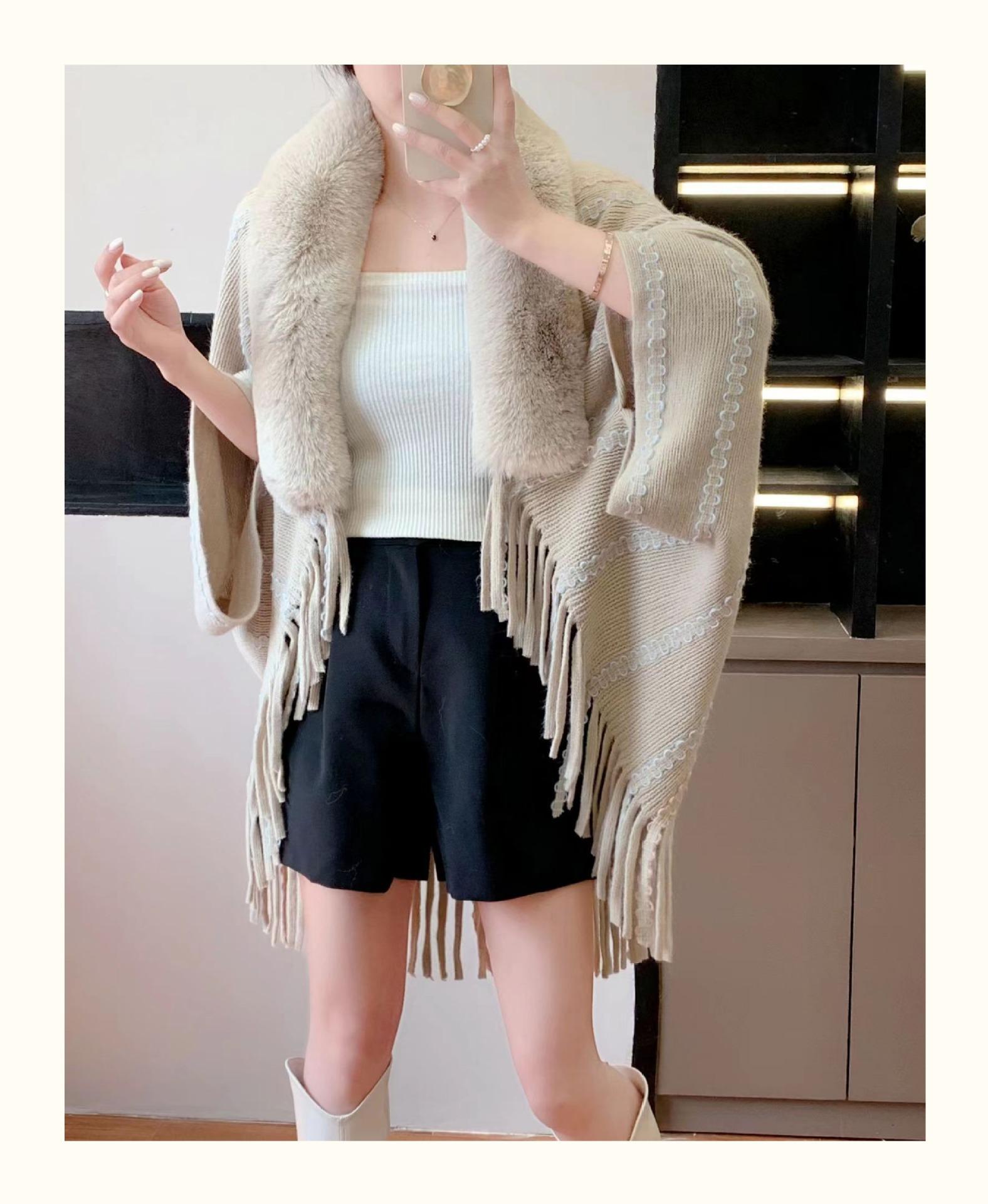 Cárdigan holgado y adelgazante con borlas y cuello de lana para otoño e invierno de 2024, elegante, combinable con todo, cálido y con hombros descubiertos.