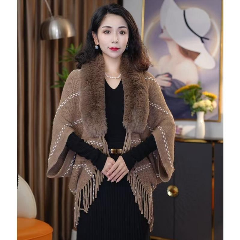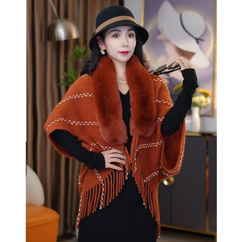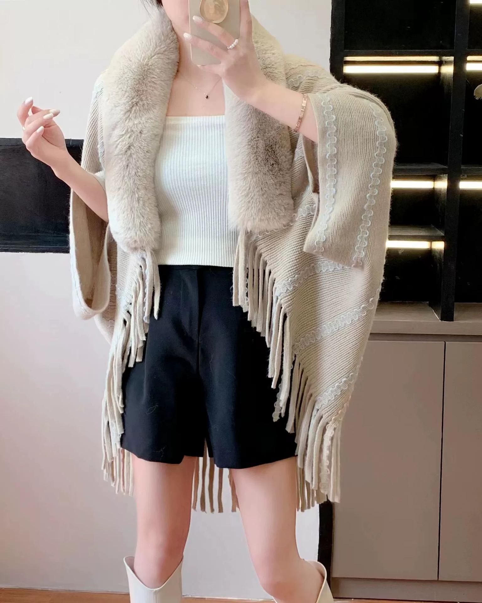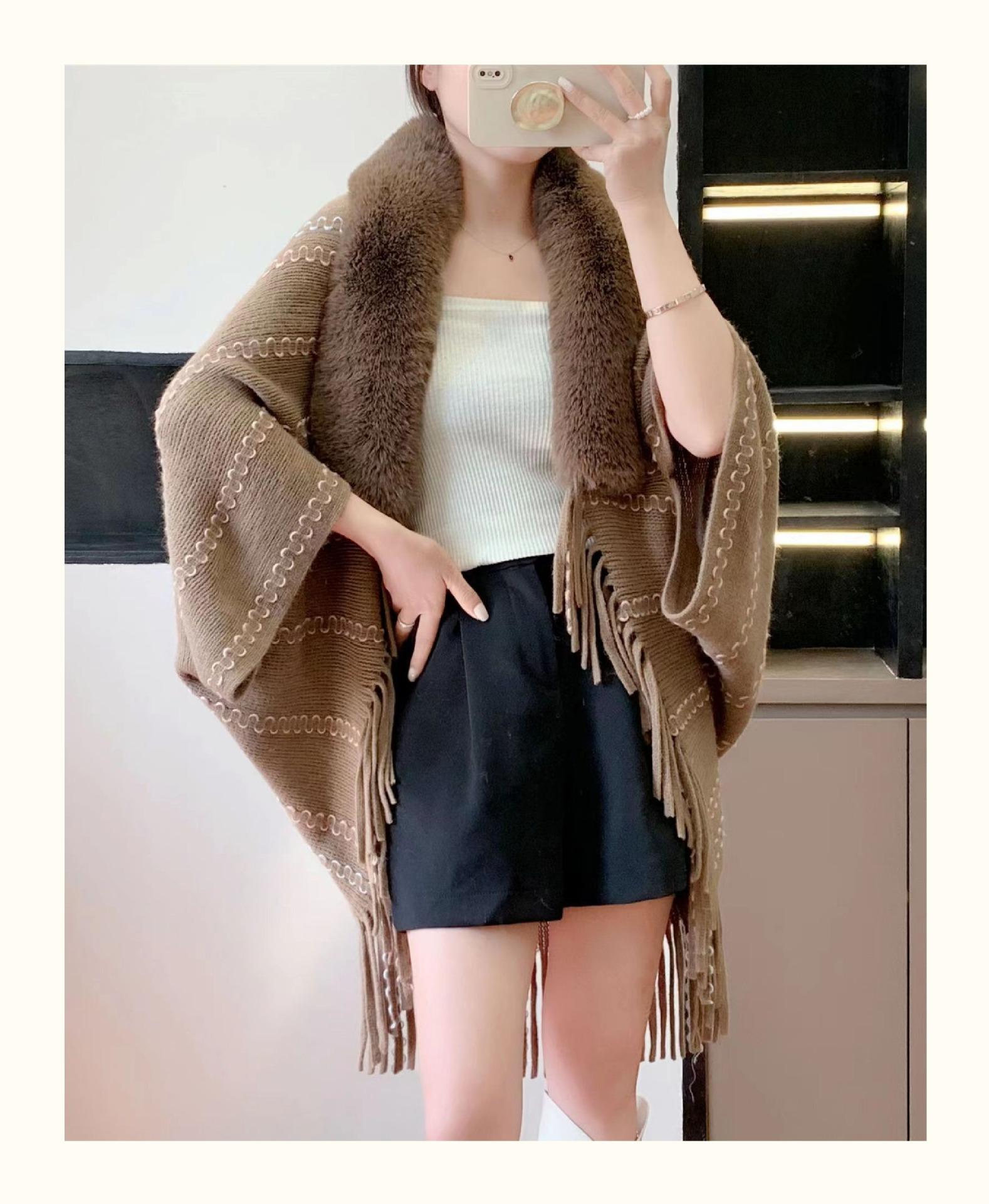 Cárdigan holgado y adelgazante con borlas y cuello de lana para otoño e invierno de 2024, elegante, combinable con todo, cálido y con hombros descubiertos.