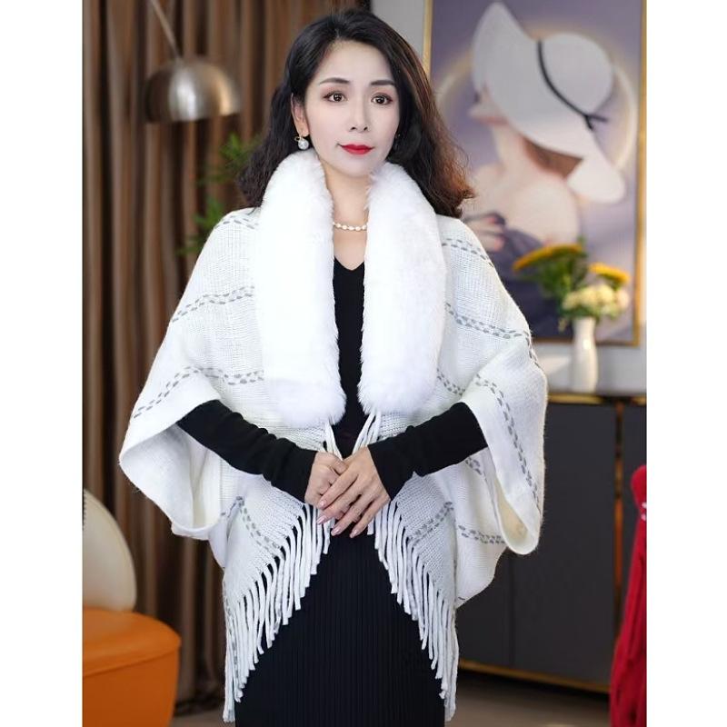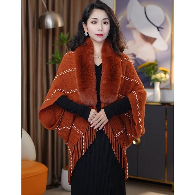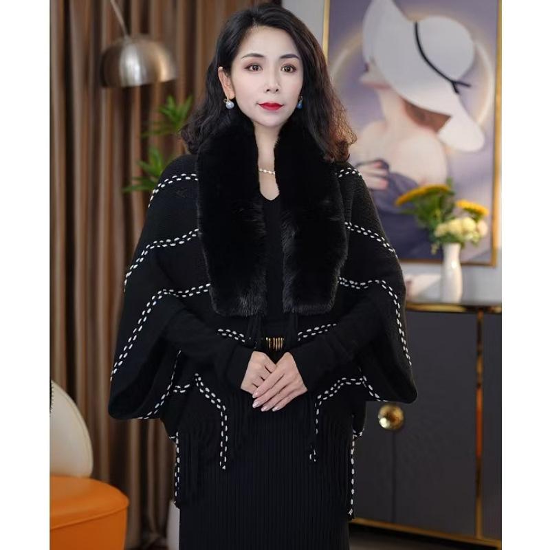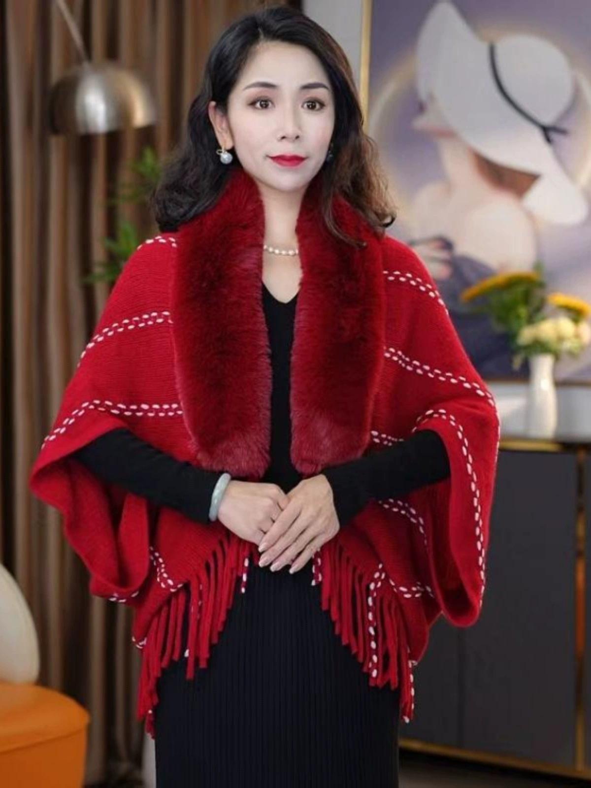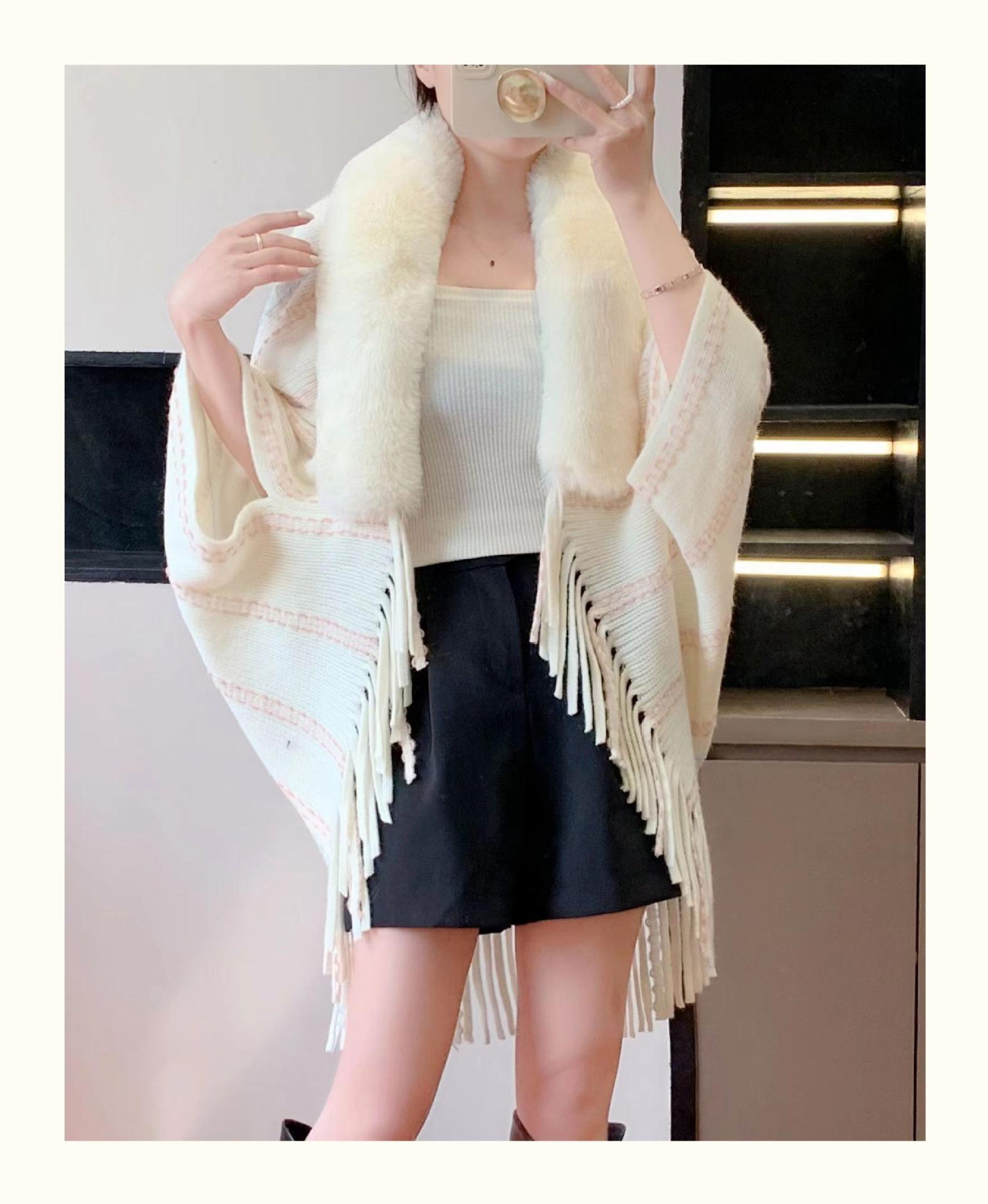 Cárdigan holgado y adelgazante con borlas y cuello de lana para otoño e invierno de 2024, elegante, combinable con todo, cálido y con hombros descubiertos.