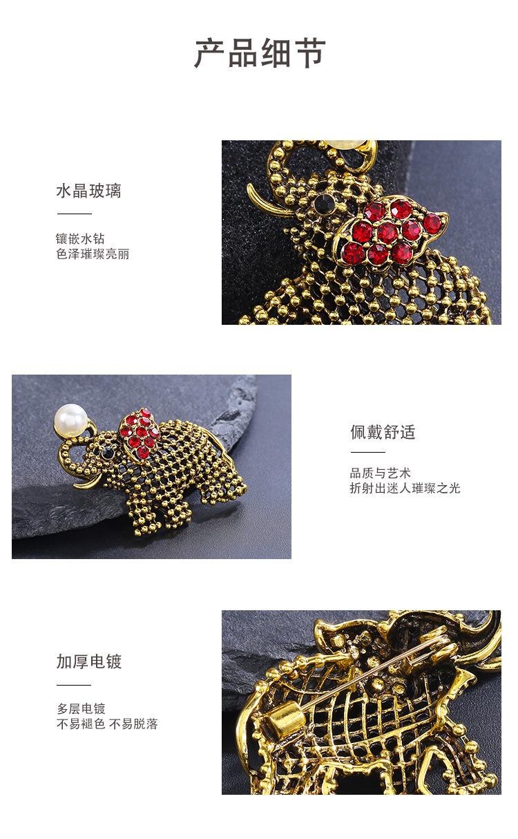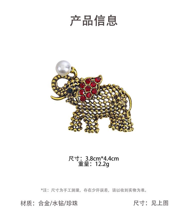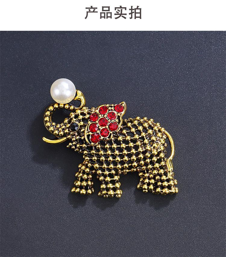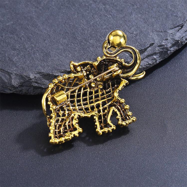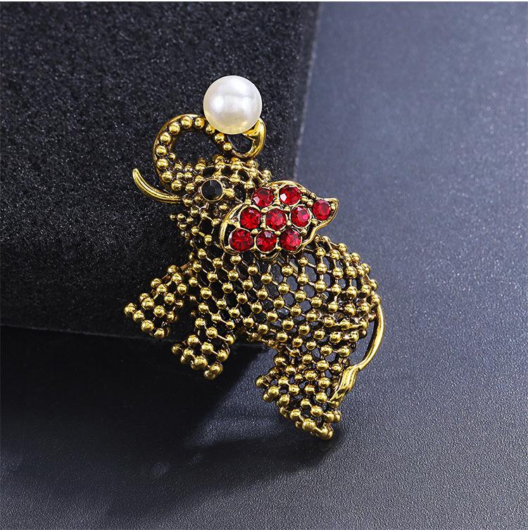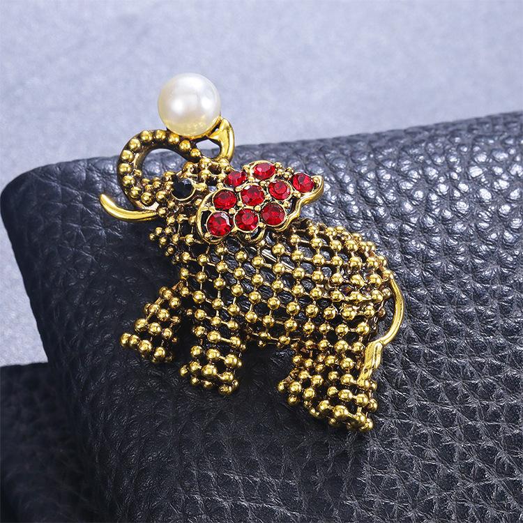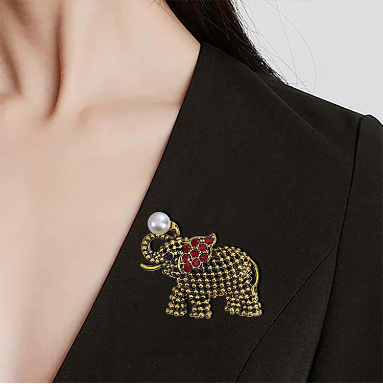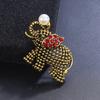 Broche de Elefante Retro Europeo y Americano Moda Lindo Aleación Diamante Perla Ropa Corsage Pin Animal Creativo Único