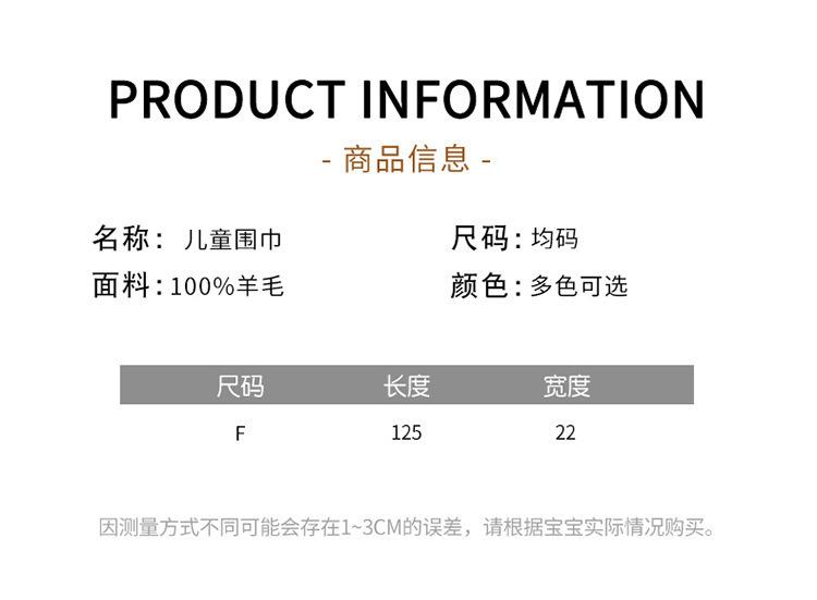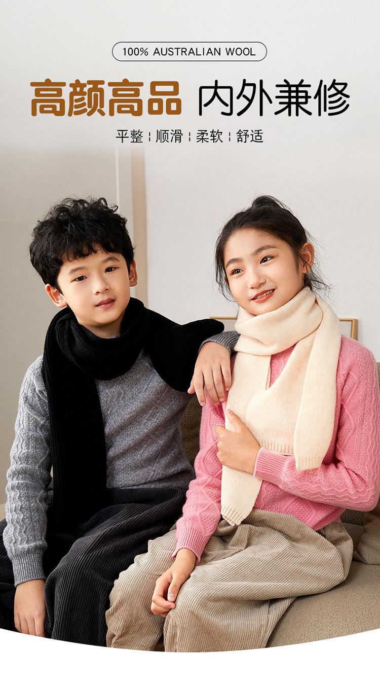 Bufanda de lana 100% de color liso para otoño e invierno, bufanda de lana cálida y sencilla para niños, combinable con todo.