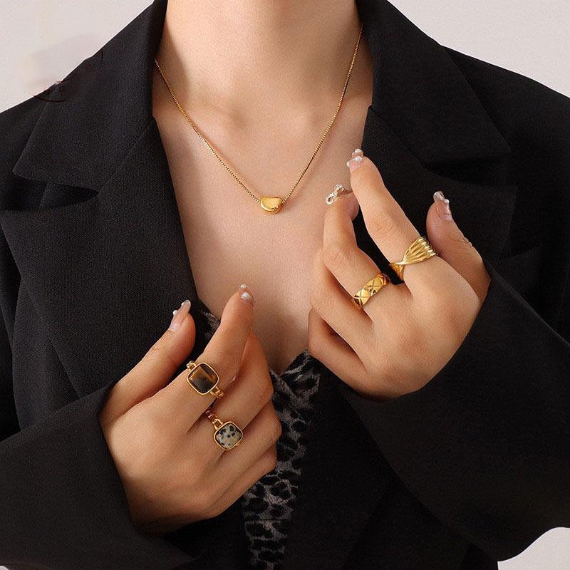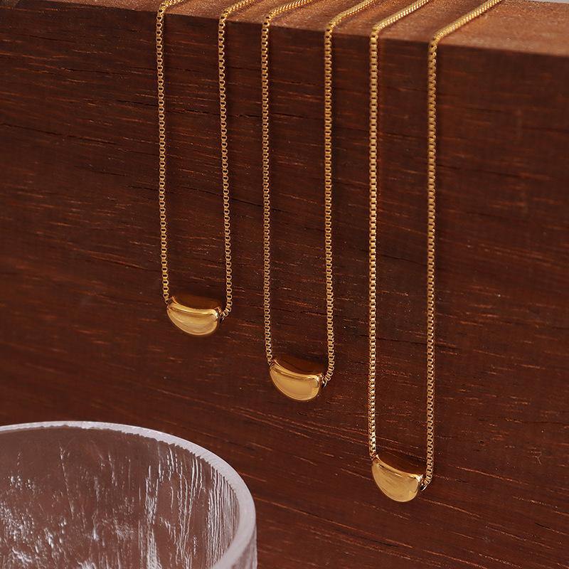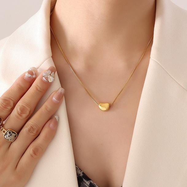 Collar de acero de titanio para mujer, colgante de haba de acacia, collar corto de cadena de clavícula con diseño de nicho de lujo, accesible y femenino.